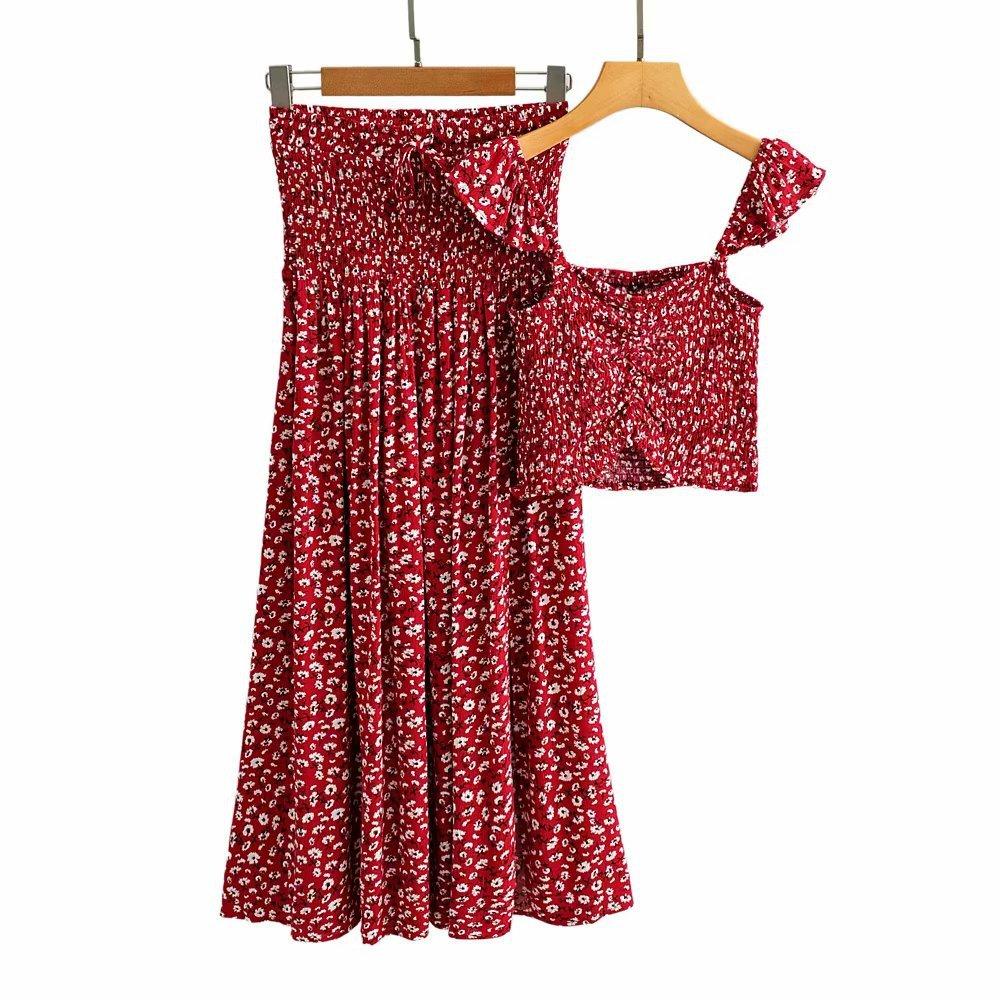 Conjunto de Top Corto sin Mangas con Estampado Fu Master para Mujer Europeo y Americano 2023 Verano Nuevo + Falda de Cintura Alta