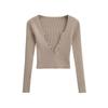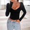 Camiseta de manga larga ajustada con escote en V cruzado sexy para mujer, de primavera y otoño, con cintura ajustada y ombligo expuesto, estilo europeo y americano.