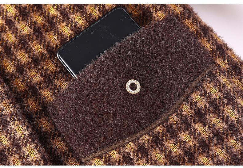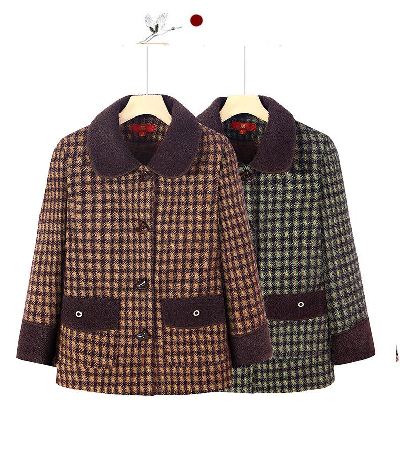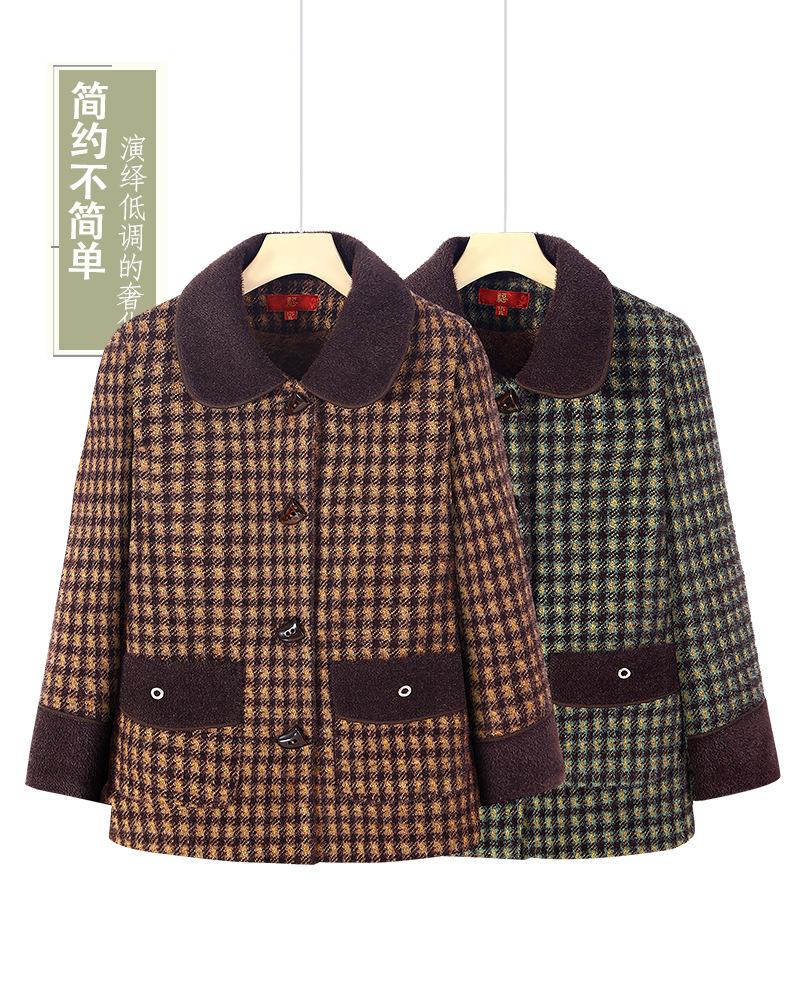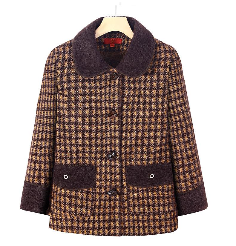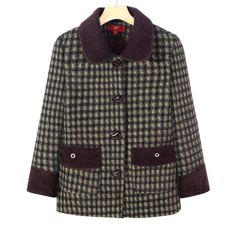 Abrigo de visón sintético grueso con forro polar para abuela al por mayor para ropa de mujer mayor otoño e invierno Nuevo abrigo de cuadros grueso para mujer