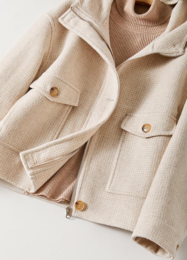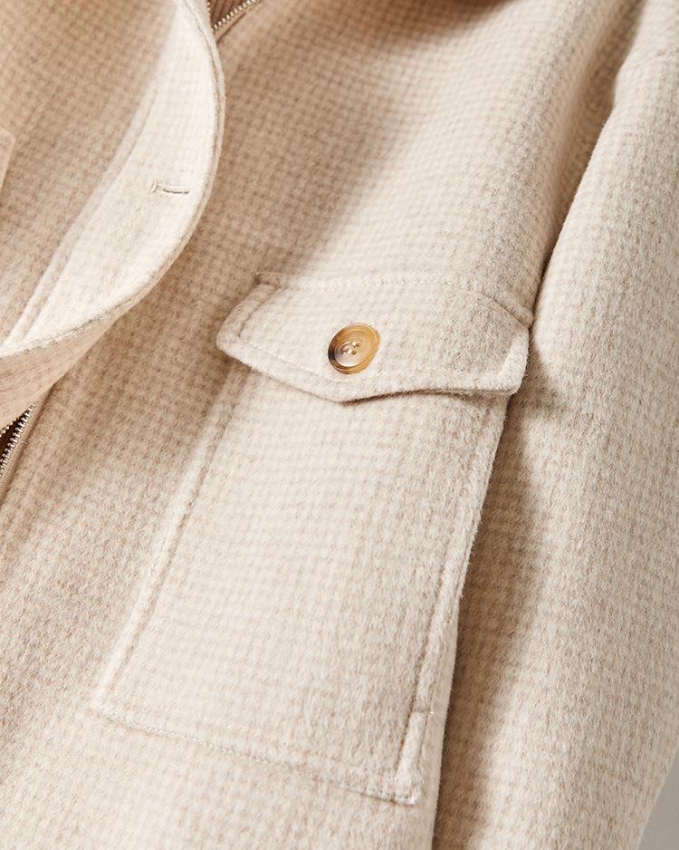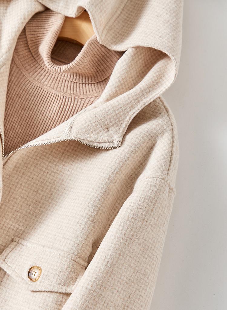¡Un abrigo de lana doble faz que es tanto cálido como ligero!