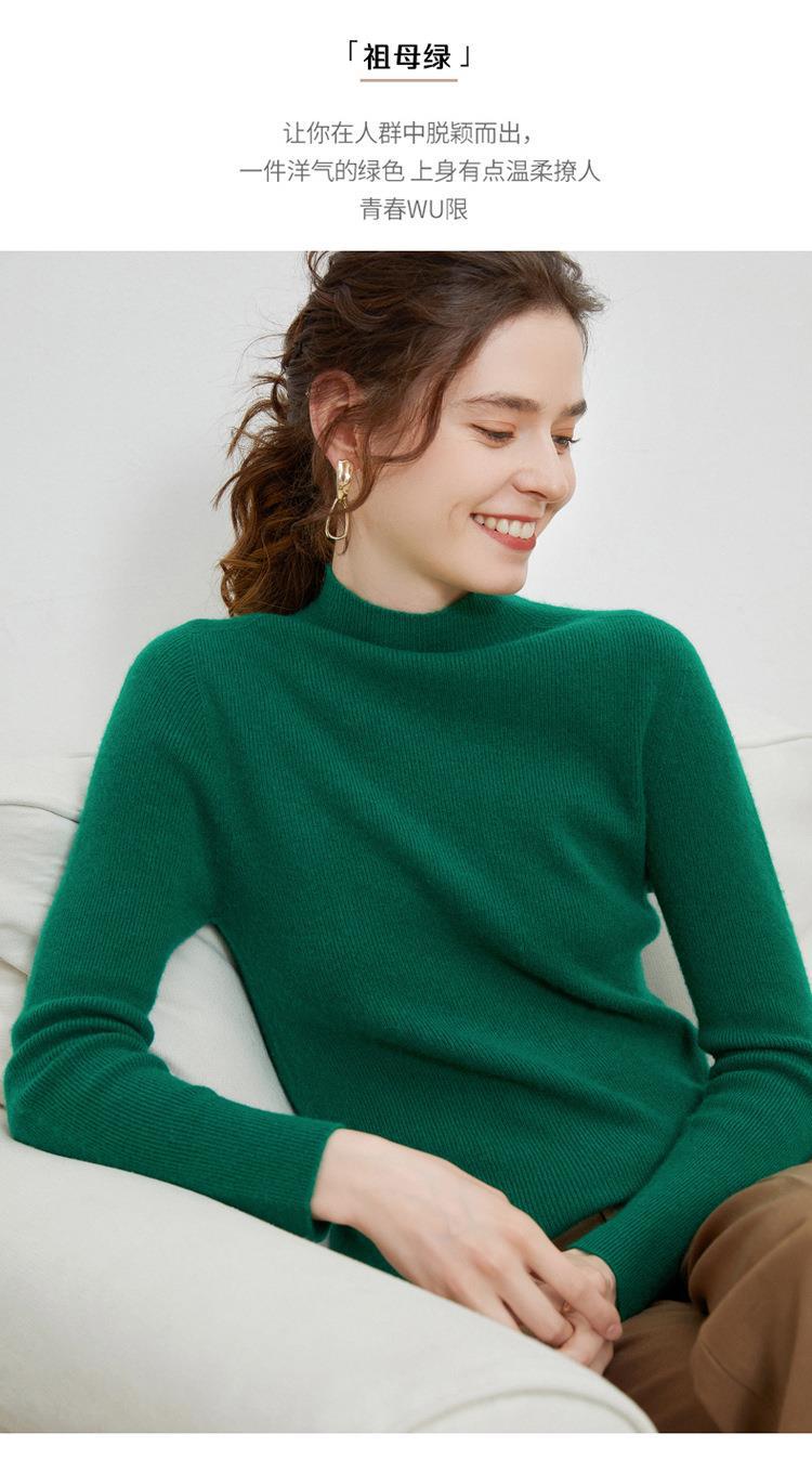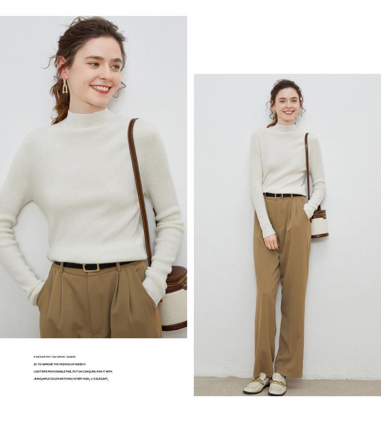 Suéter de cuello alto medio confeccionado sin costuras con aguja de lana para mujer de otoño e invierno, camisa de base tejida para mujer, suéter ajustado de manga larga