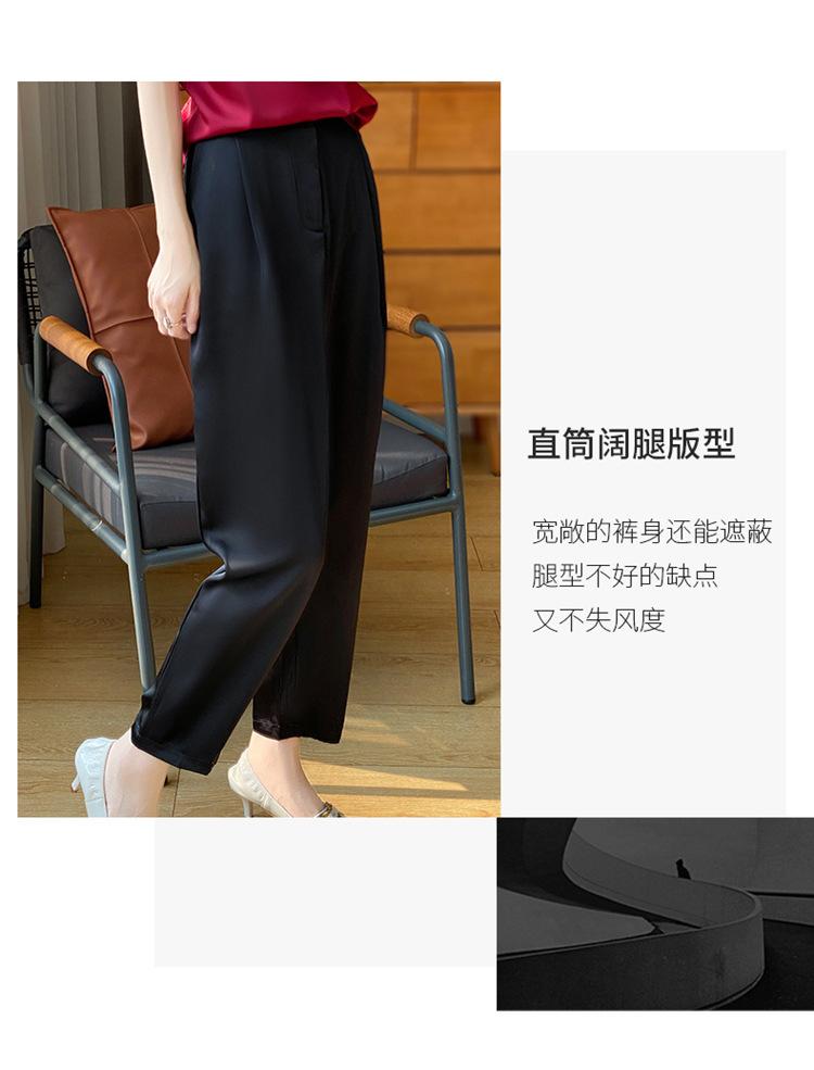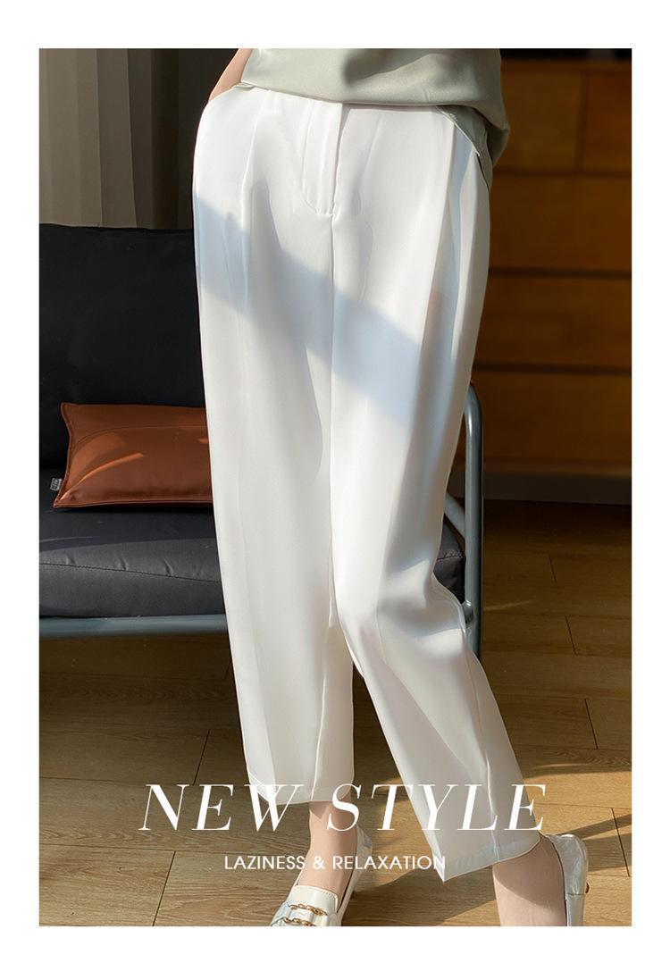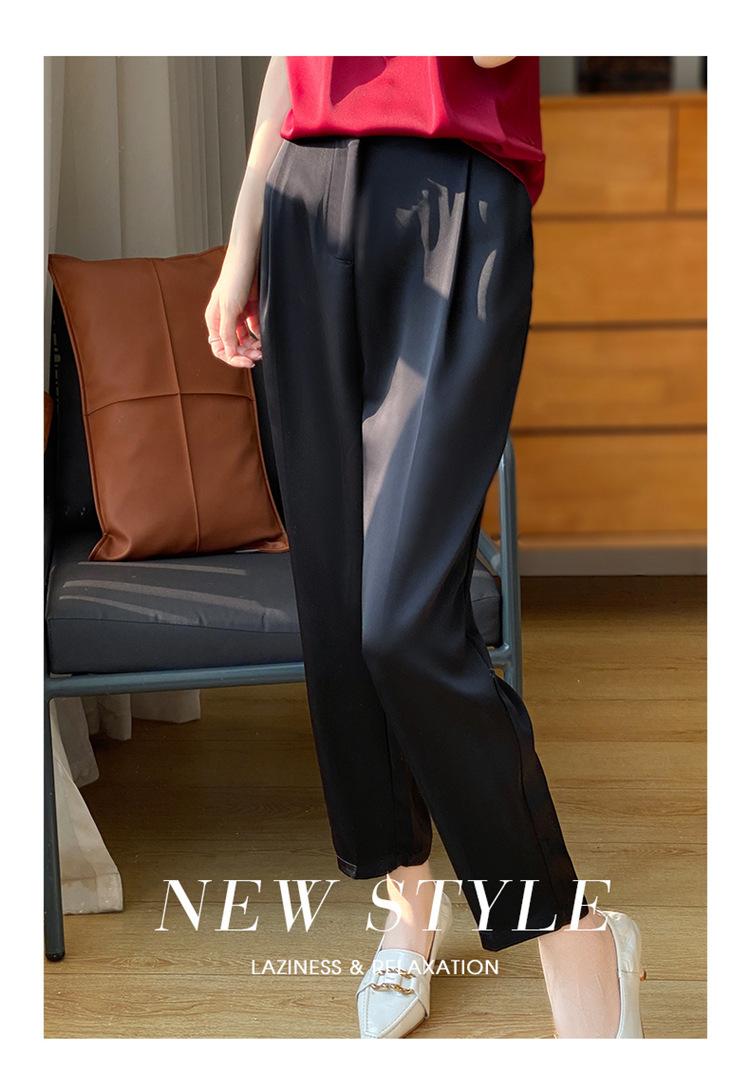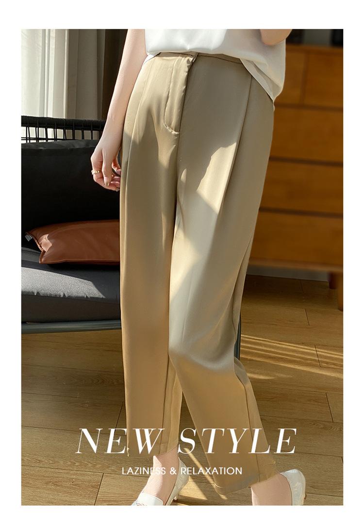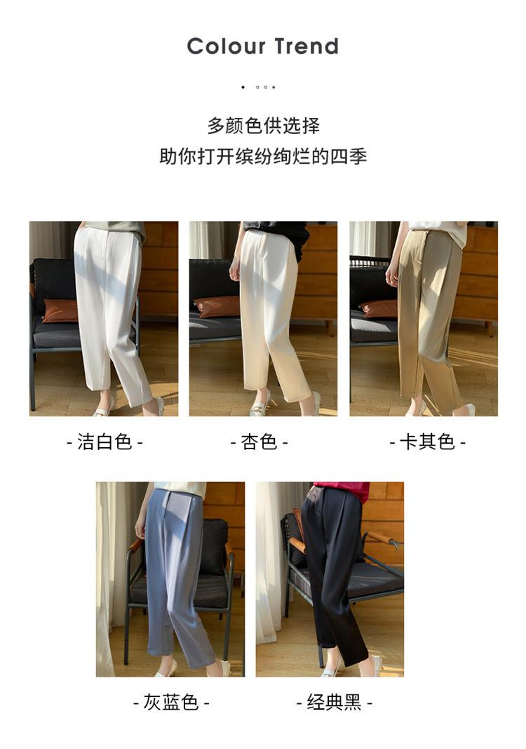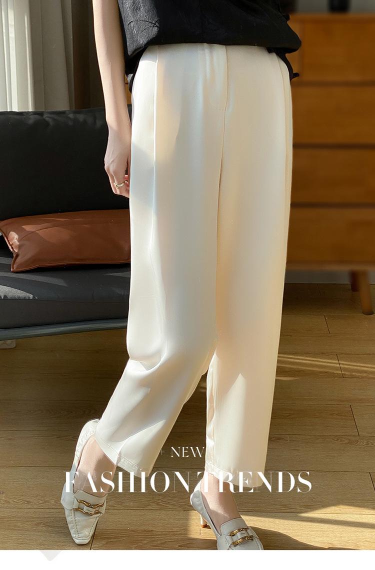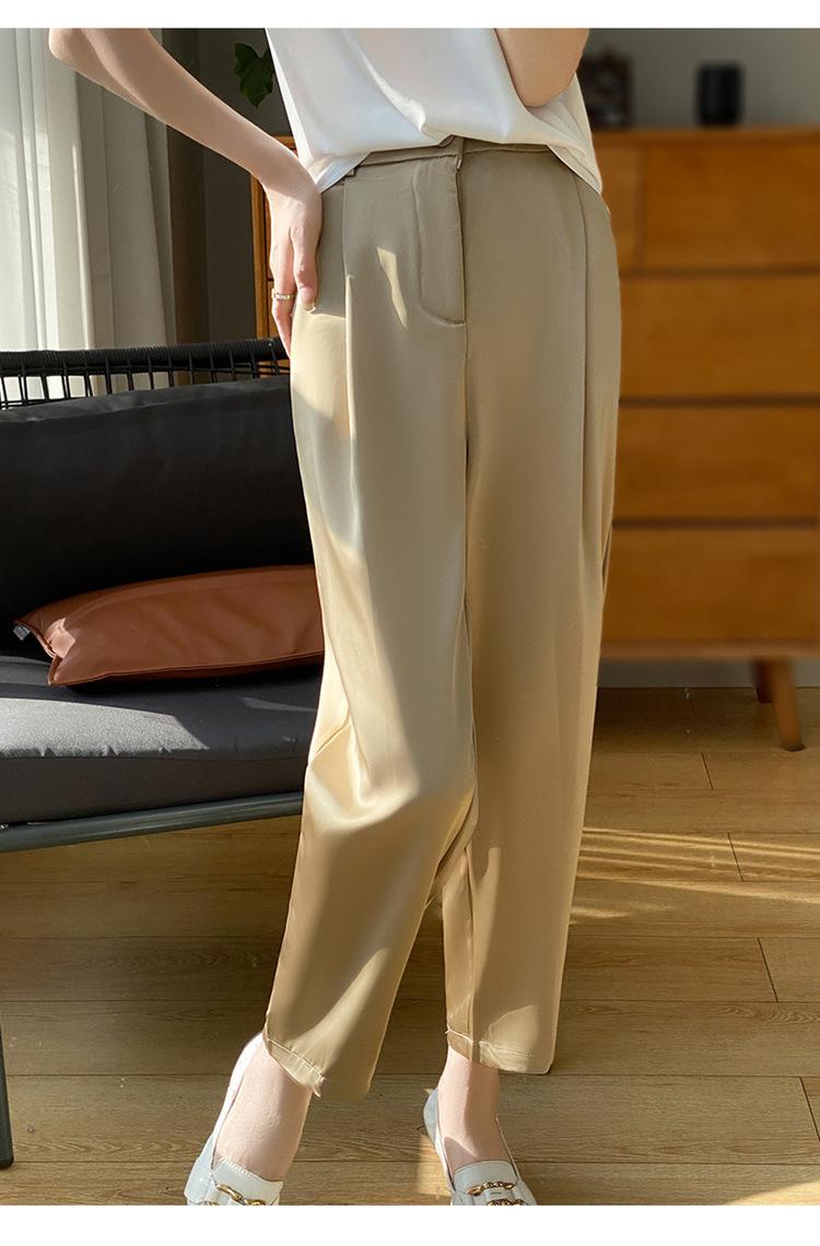 Seda seda pura 2024 primavera y verano nuevo pantalón de nueve puntos para mujer temperamento simple versátil pantalón pitillo satén delgado casual