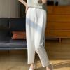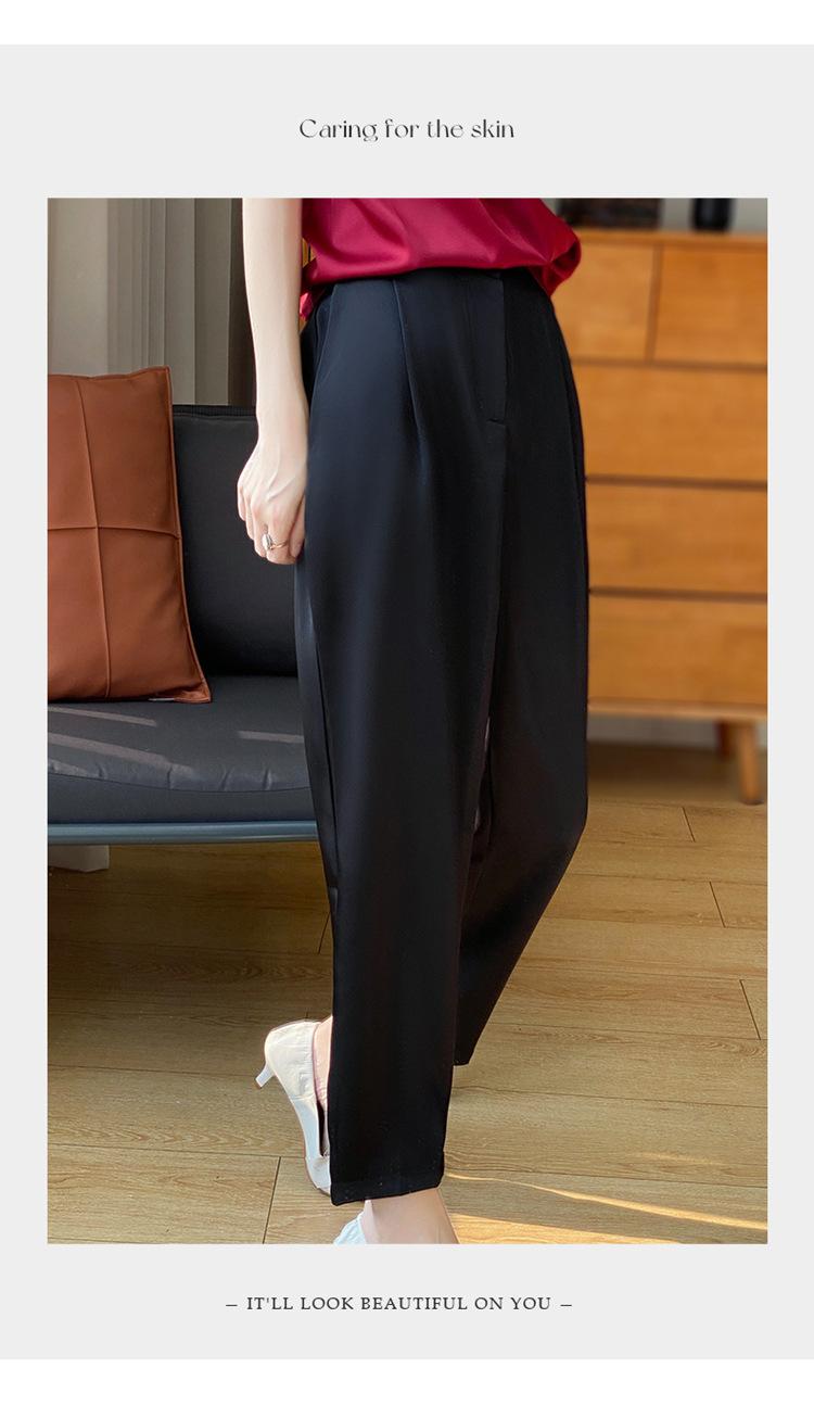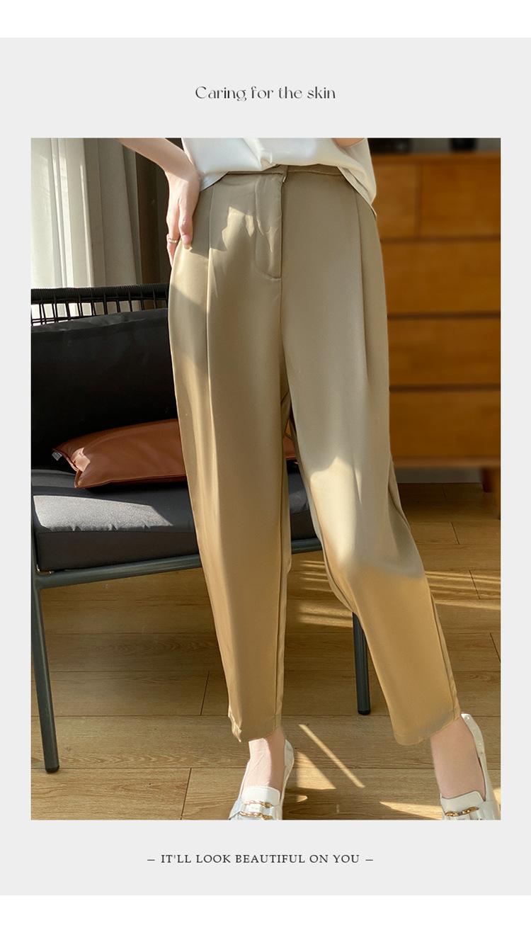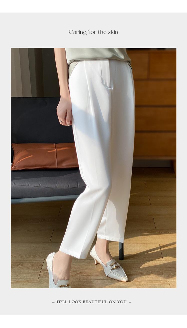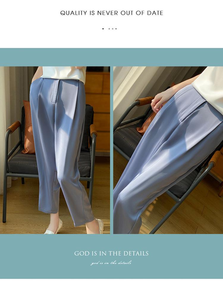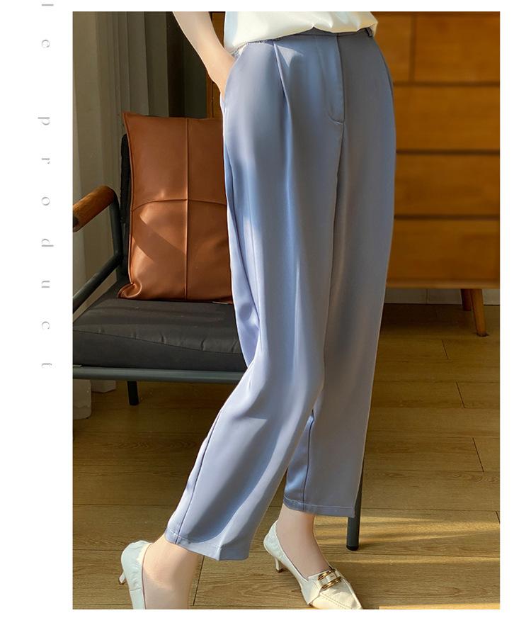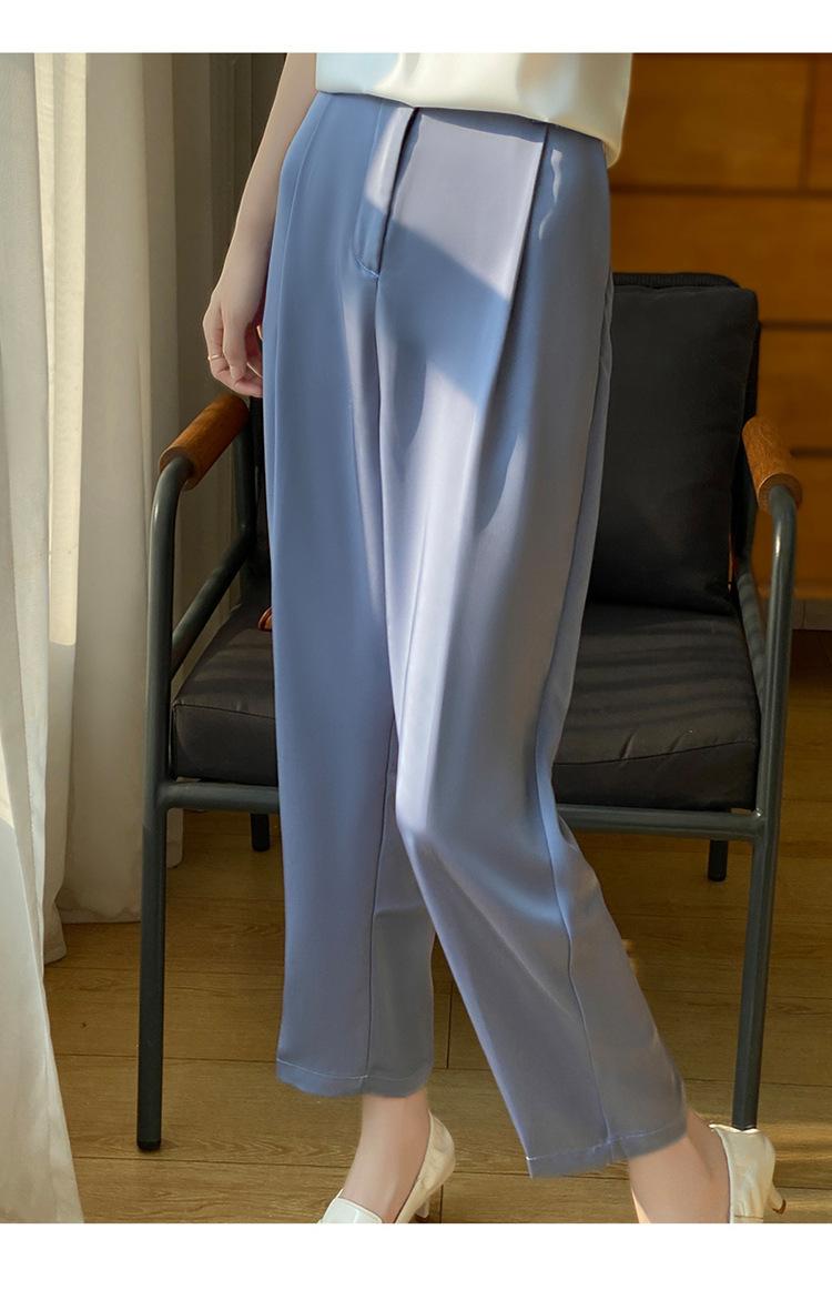 Seda seda pura 2024 primavera y verano nuevo pantalón de nueve puntos para mujer temperamento simple versátil pantalón pitillo satén delgado casual