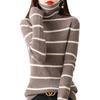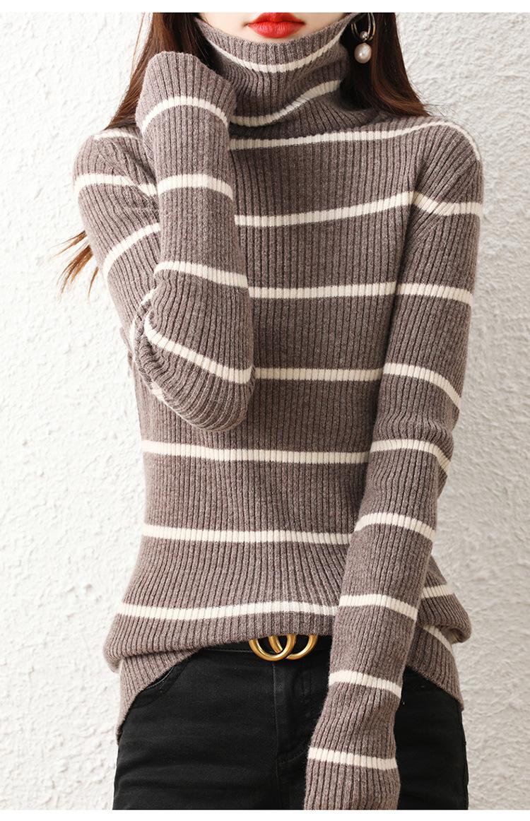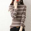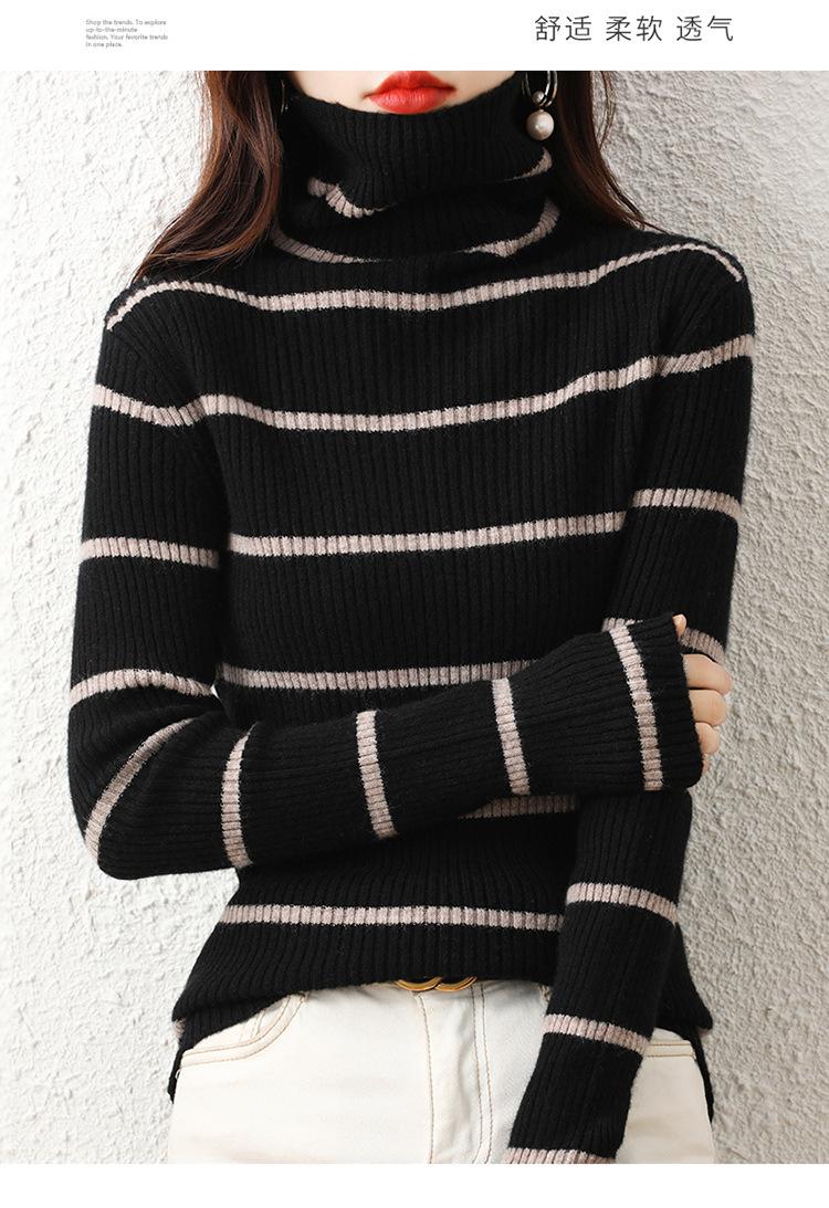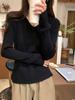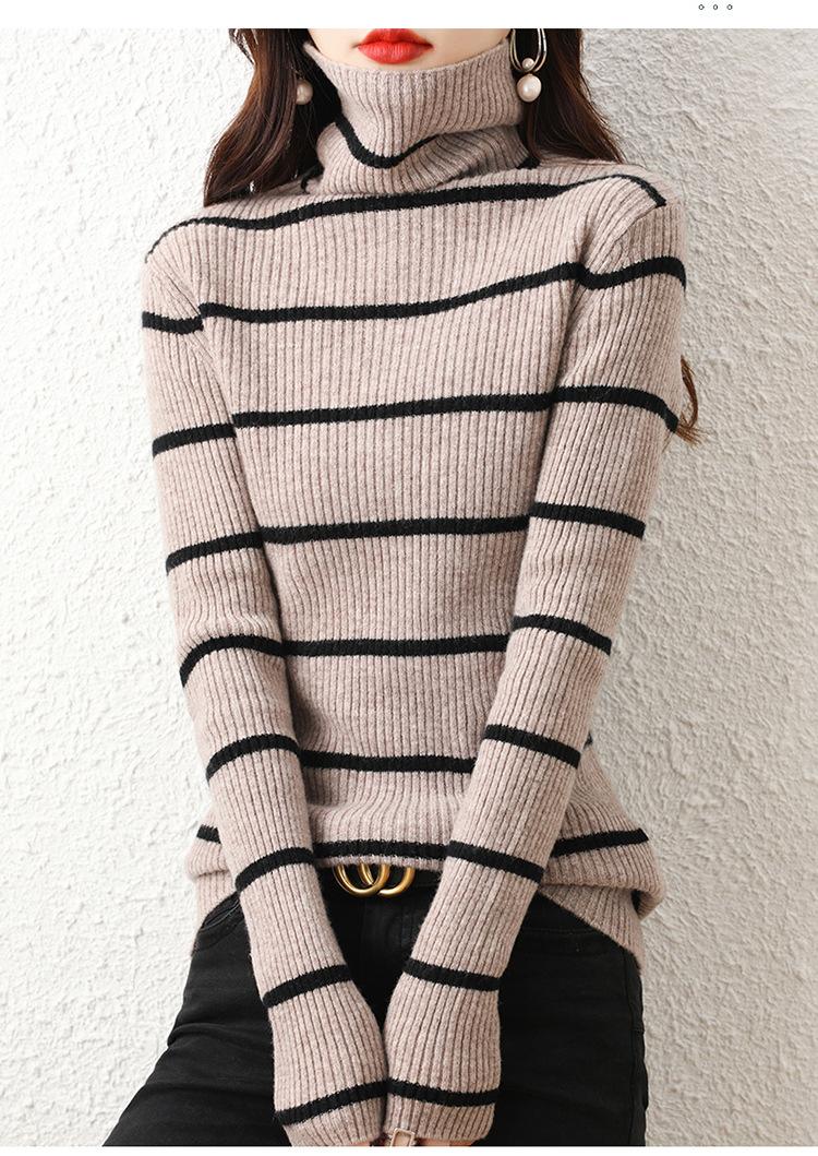 Suéter ajustado de otoño con bloques de color para mujer con cuello alto, camiseta básica ajustada de punto acanalado, estilo elegante de socialité