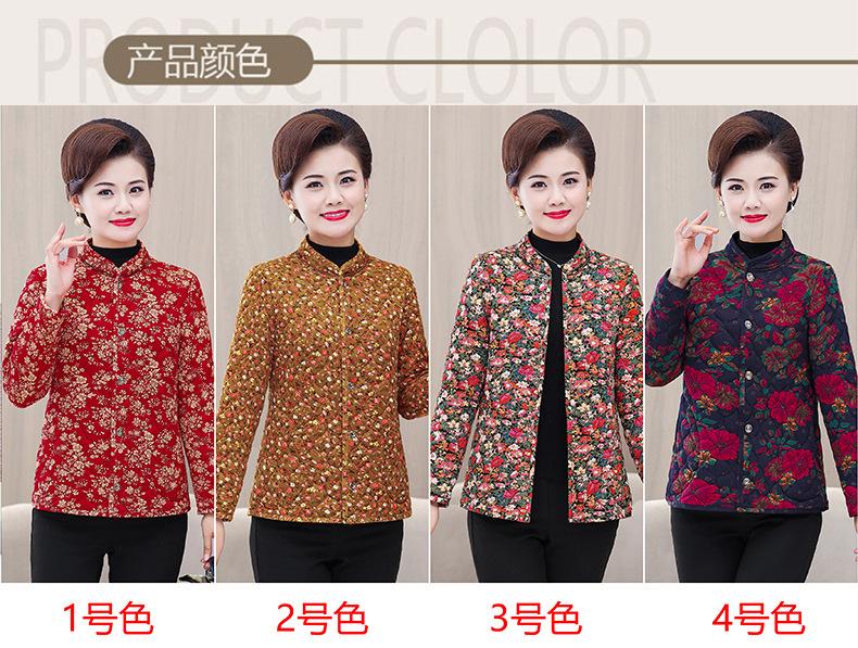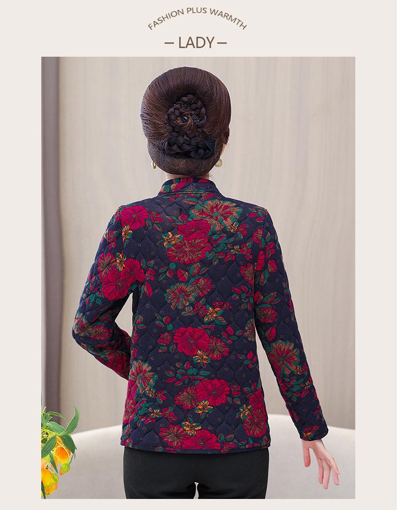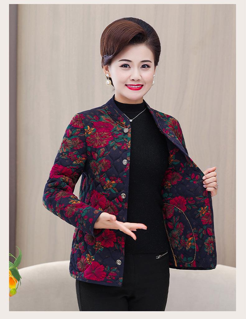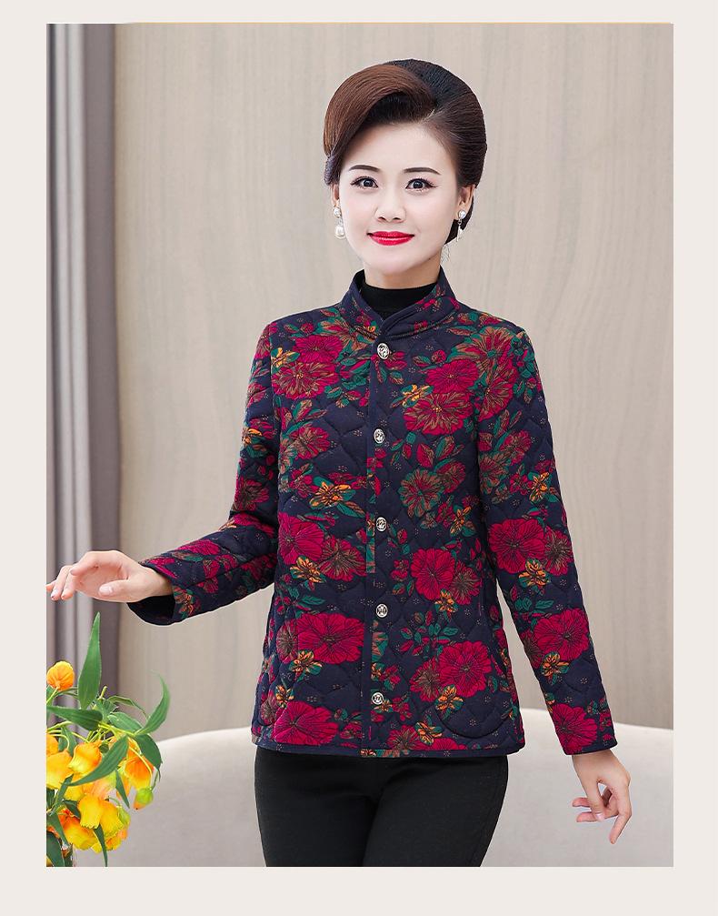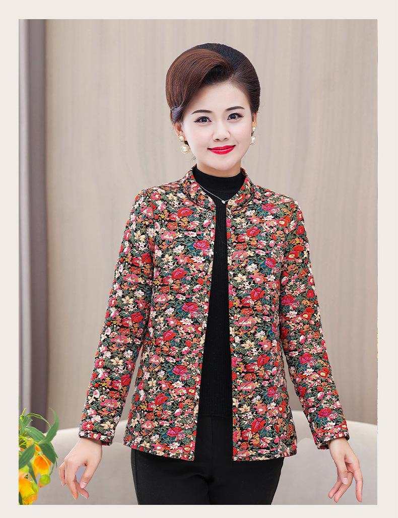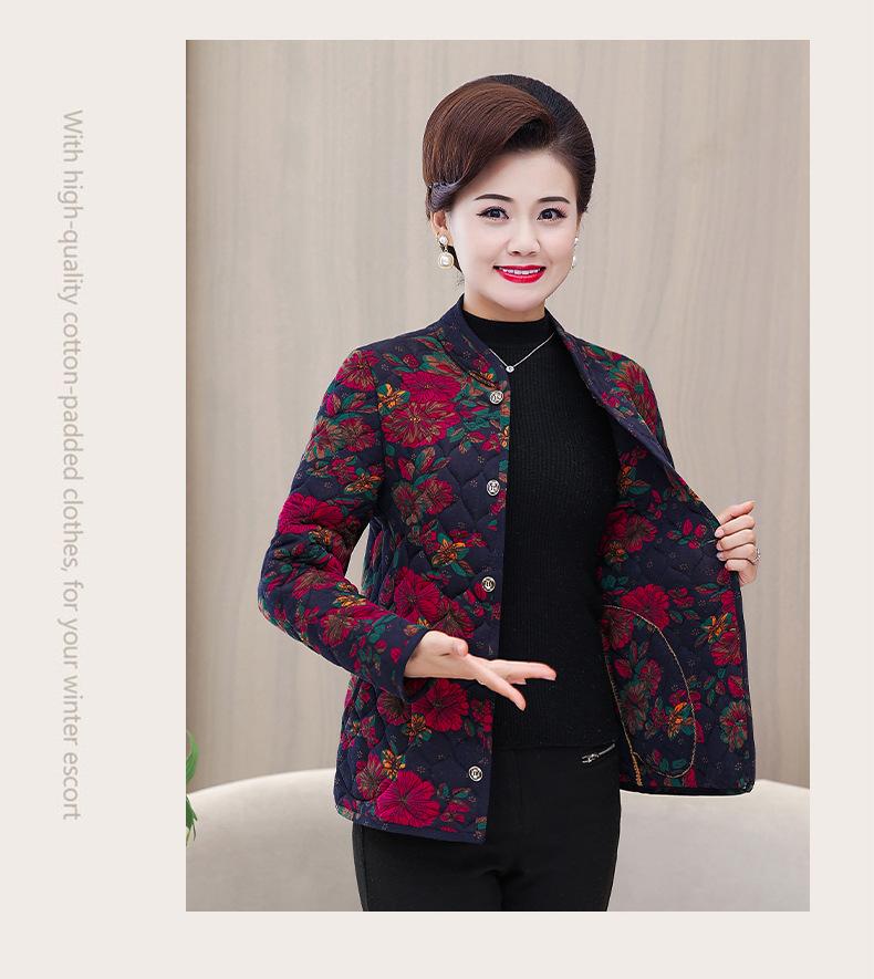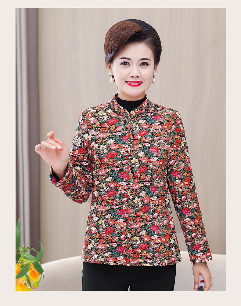 Ropa de invierno para personas mayores, ligera, cálida, con forro de algodón acolchado con flores, ropa de abrigo para madres y abuelas de 60 años, chaqueta acolchada de algodón con elástico