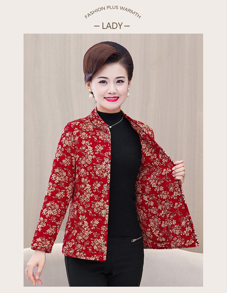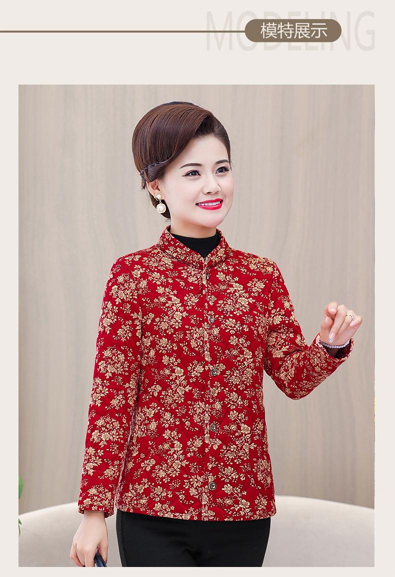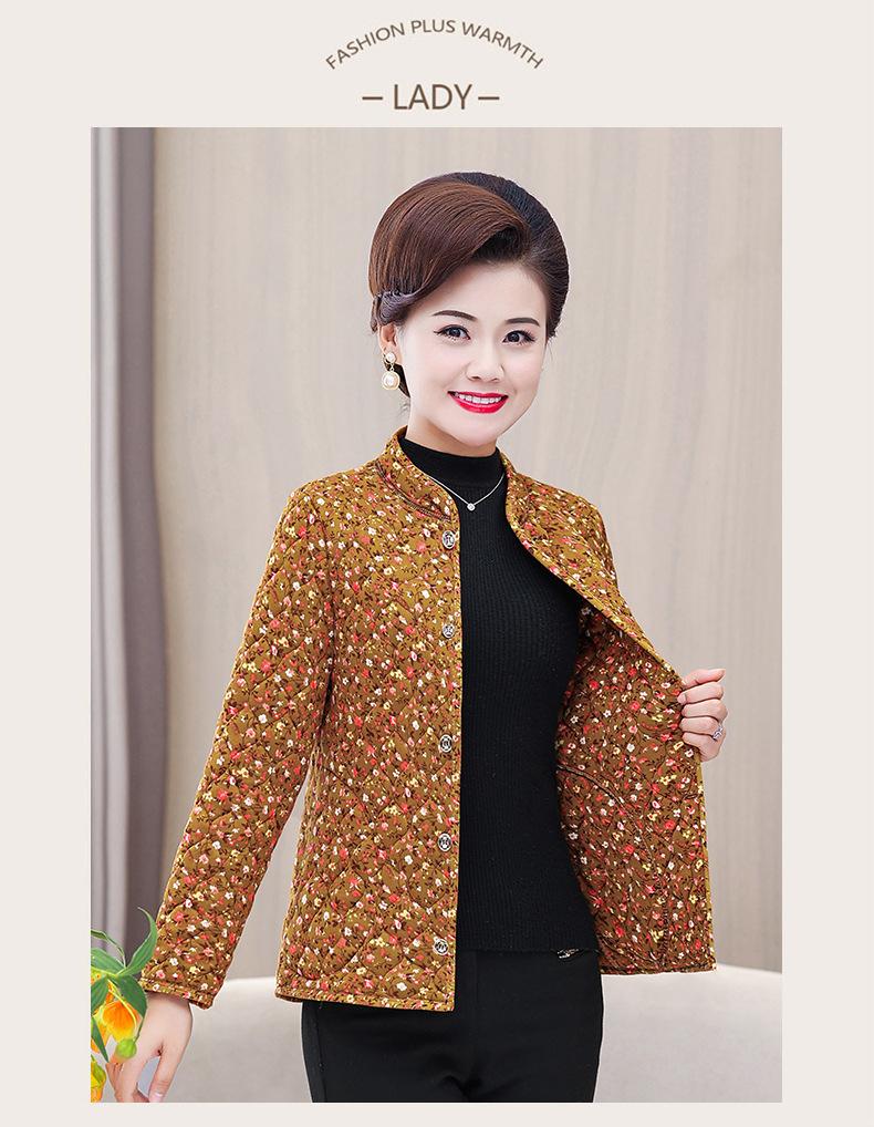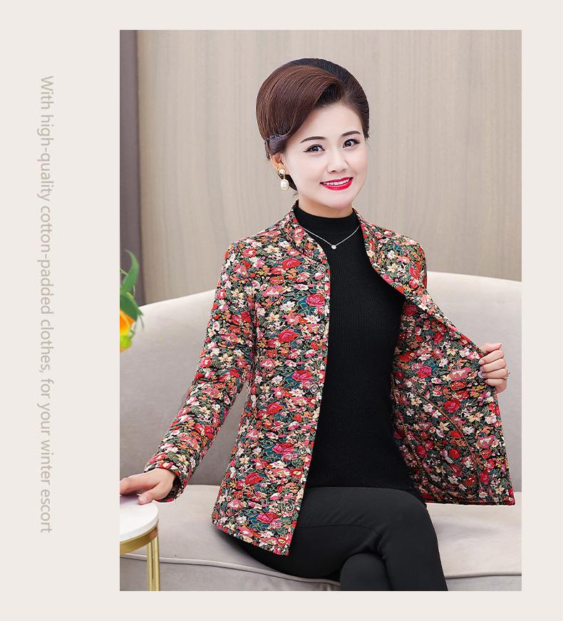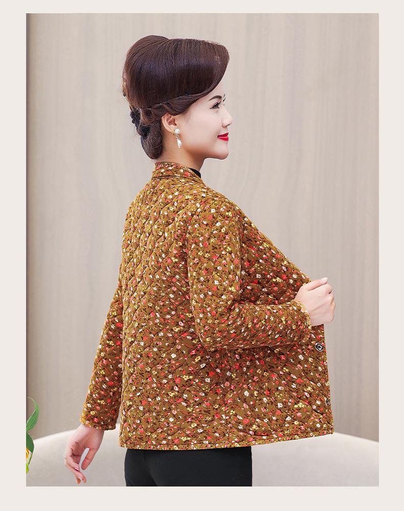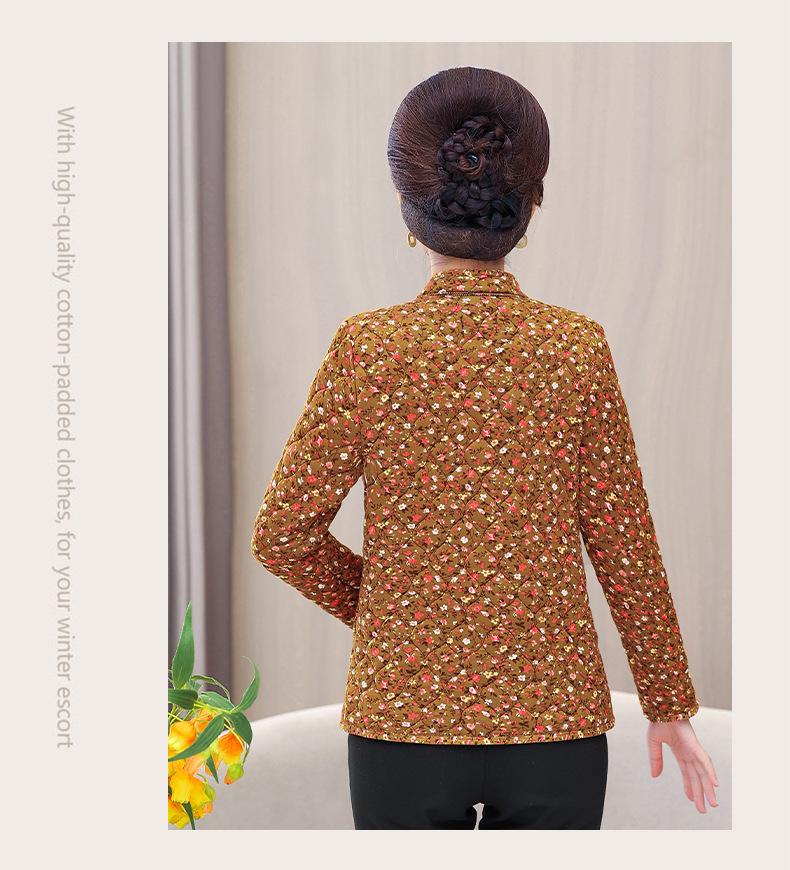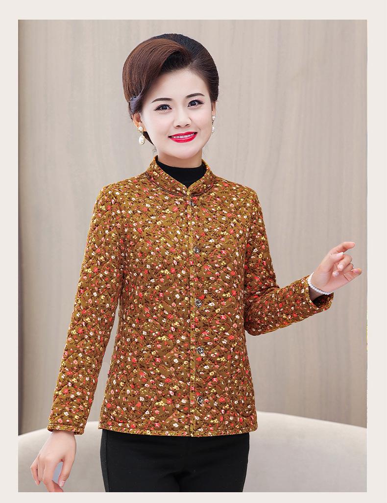 Ropa de invierno para personas mayores, ligera, cálida, con forro de algodón acolchado con flores, ropa de abrigo para madres y abuelas de 60 años, chaqueta acolchada de algodón con elástico