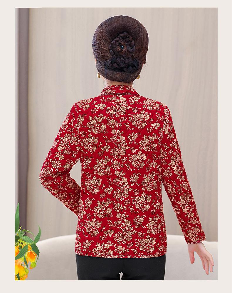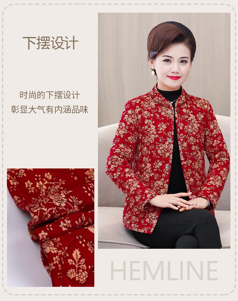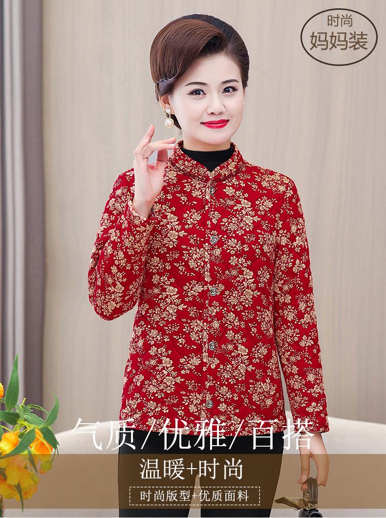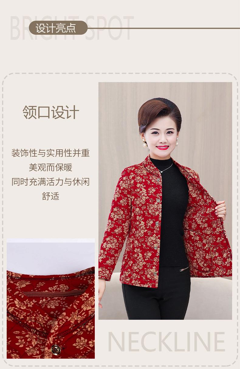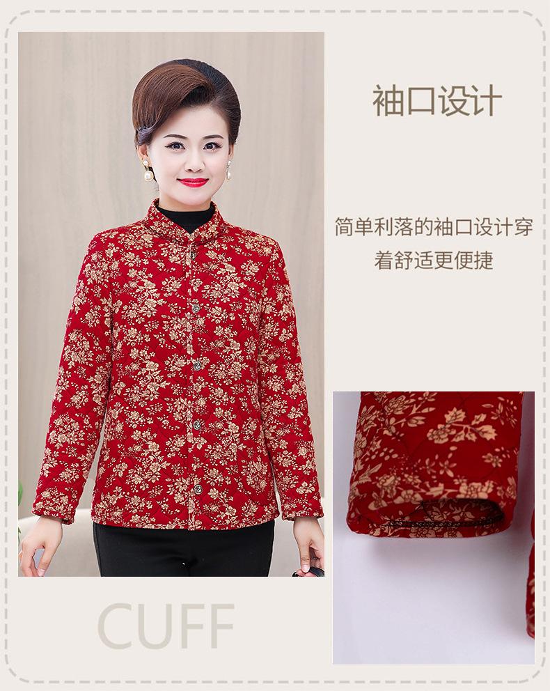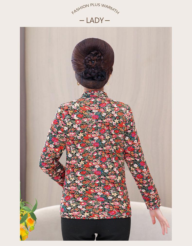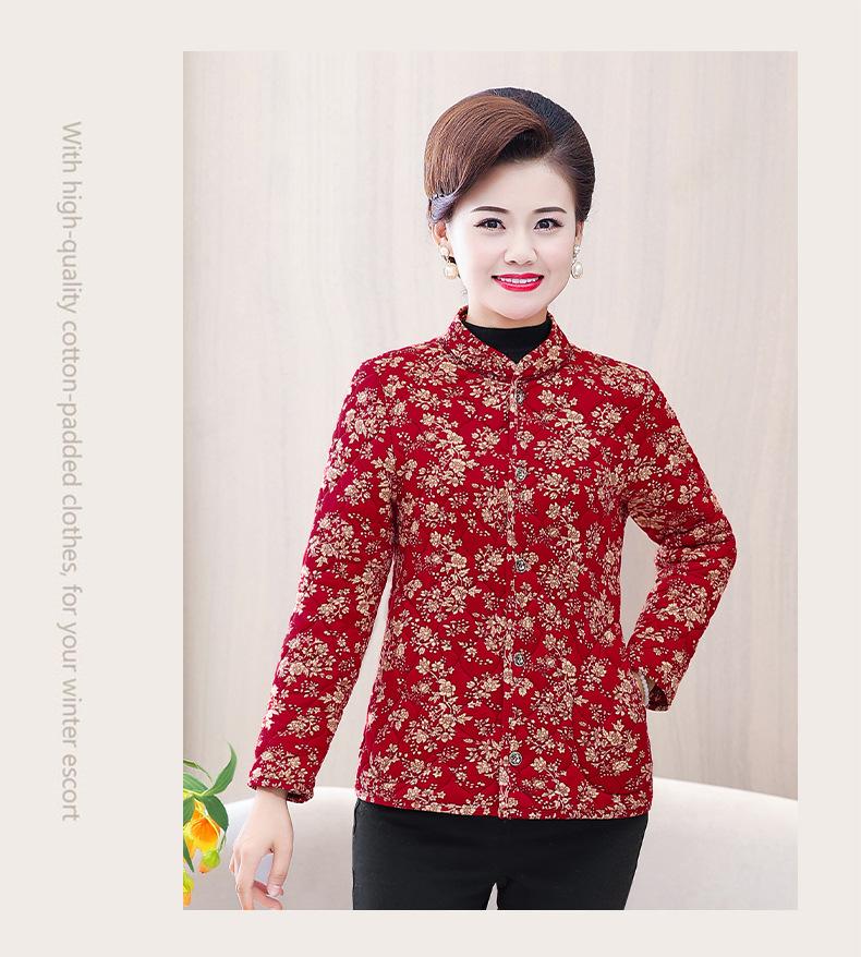 Ropa de invierno para personas mayores, ligera, cálida, con forro de algodón acolchado con flores, ropa de abrigo para madres y abuelas de 60 años, chaqueta acolchada de algodón con elástico