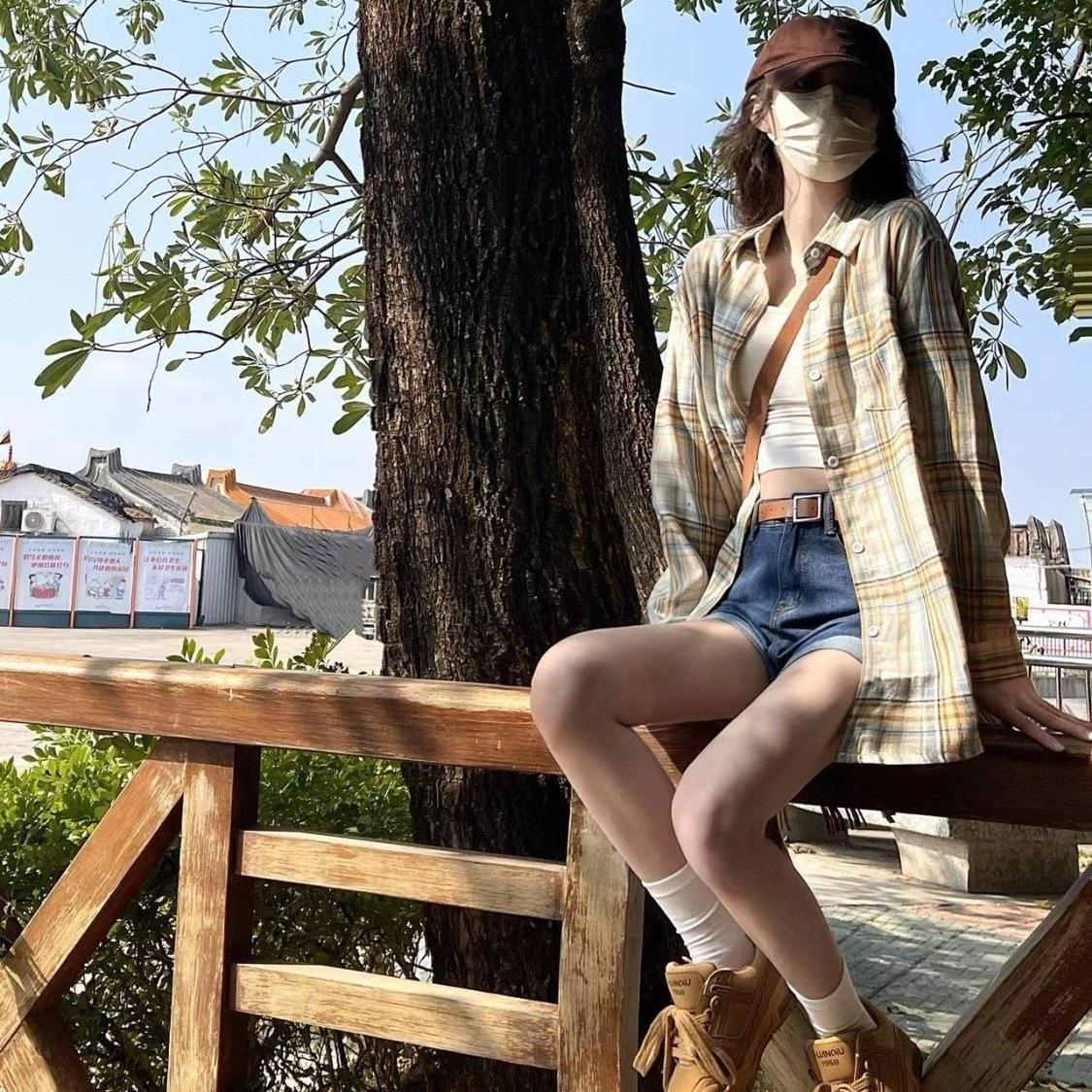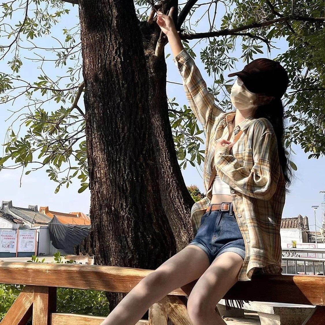 Camisa Delgada de Verano con Protección Solar Camisa de Cuadros Retro Diseño de Nicho para Mujer Abrigo Delgado Suelto y Delgado