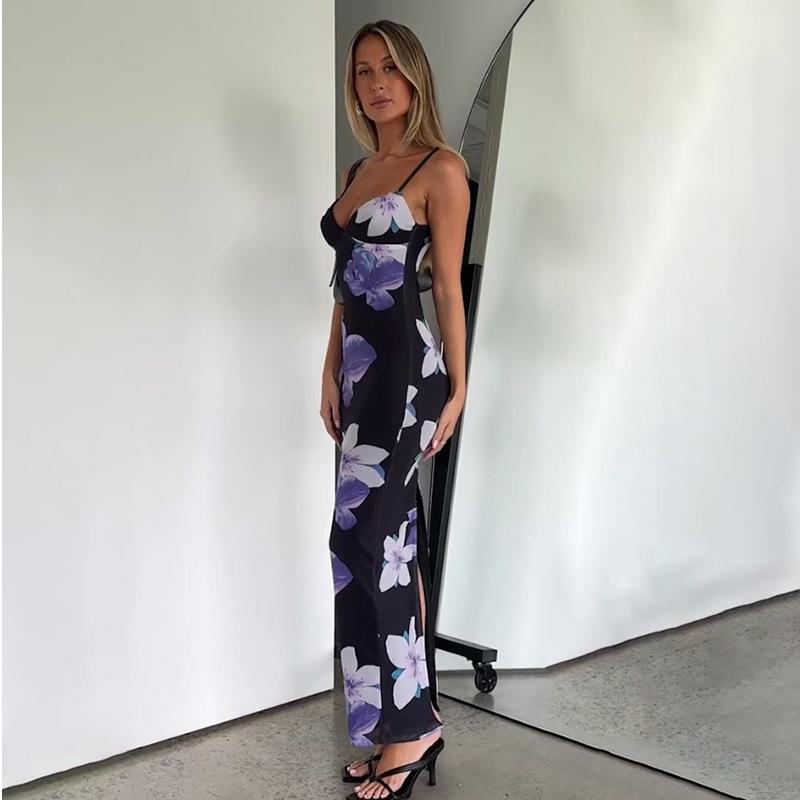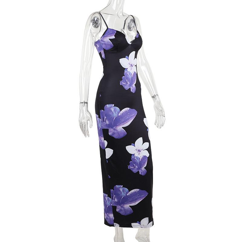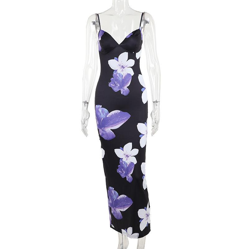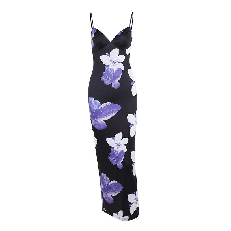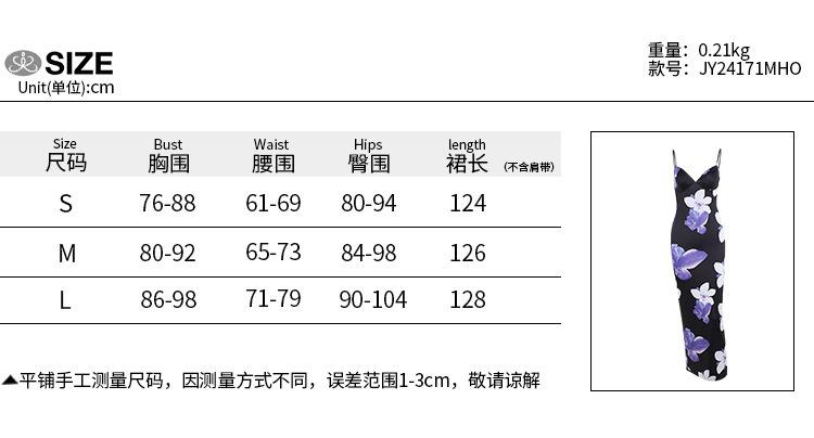 JY23103 - Falda larga con tirantes y estampado floral en el pecho, 2023, vestido de mujer con cintura ajustada y nuevo temperamento