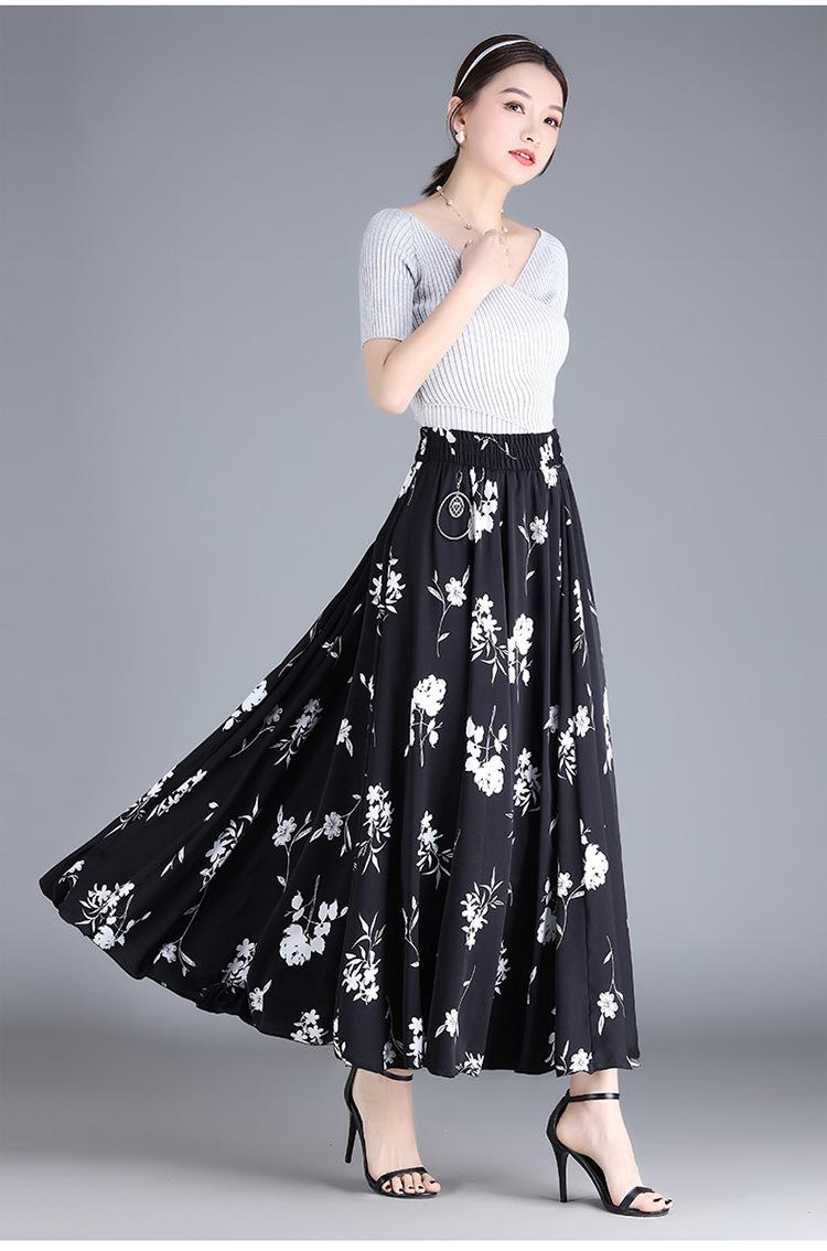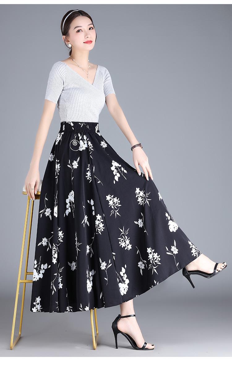 Falda Estilo Coreano Estampada de Cintura Alta Corte A Bajo Amplio Largo Medio para Mujer Verano 2025 Nueva Falda Plisada Estilo Coreano que Cubre la Cadera