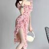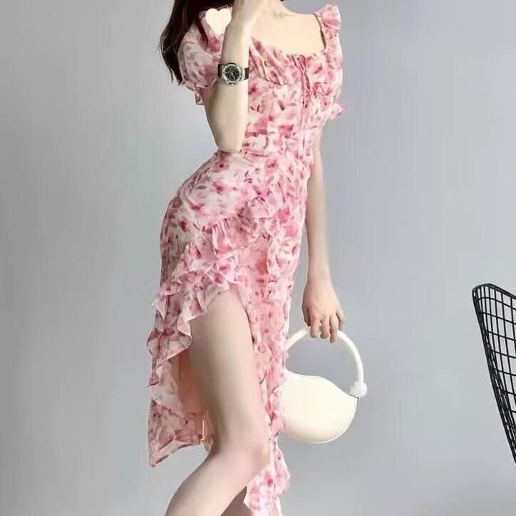 Vestido floral de verano para mujer 2025, nuevo, de alta gama, ligero, maduro, de moda, elegante, falda de cintura irregular para mujer