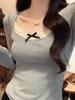Camiseta de manga larga con cuello de encaje para mujer, corta, de primavera y otoño, nueva, ajustada, de color liso, ropa interior fina para mujer