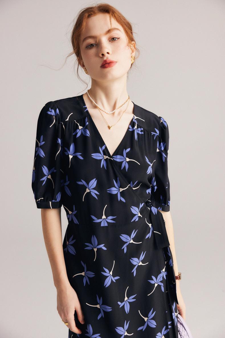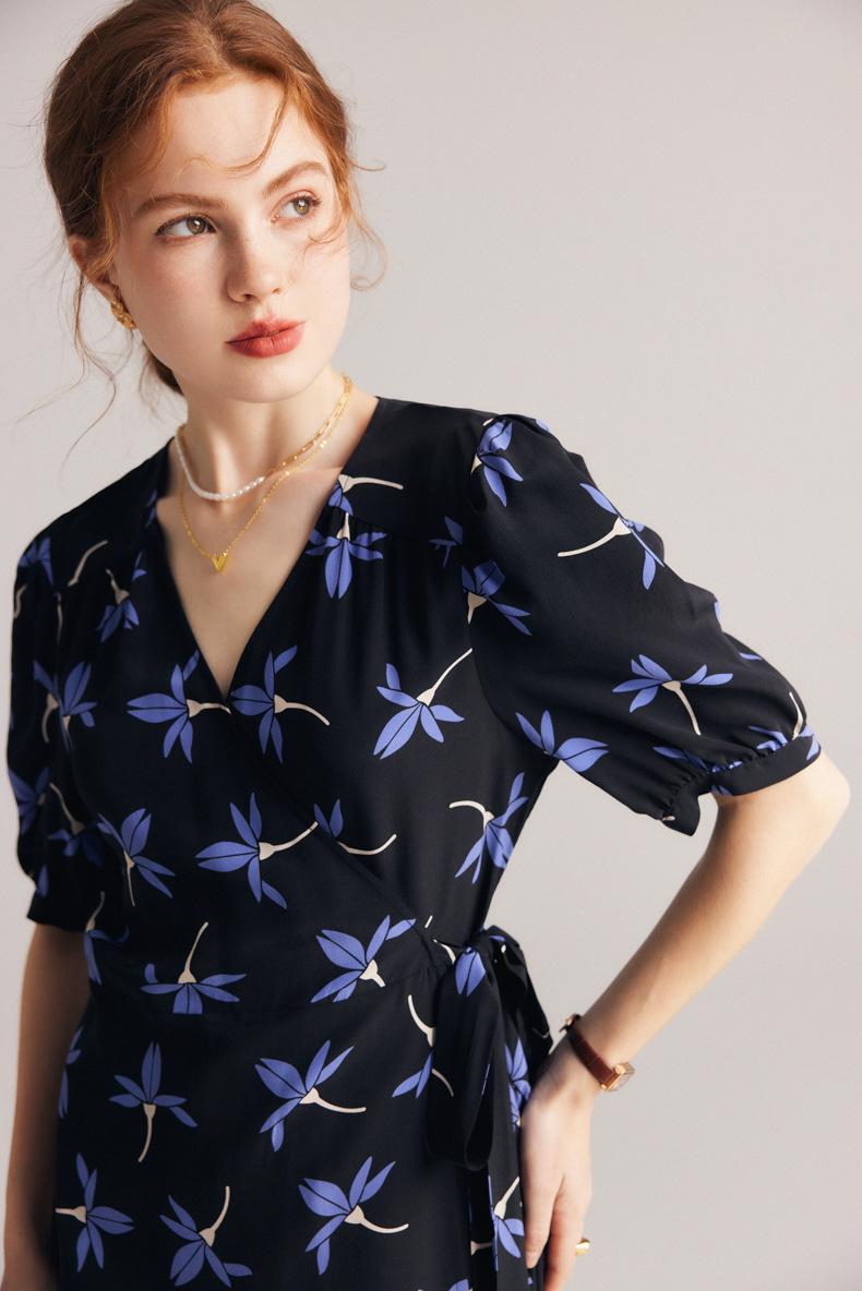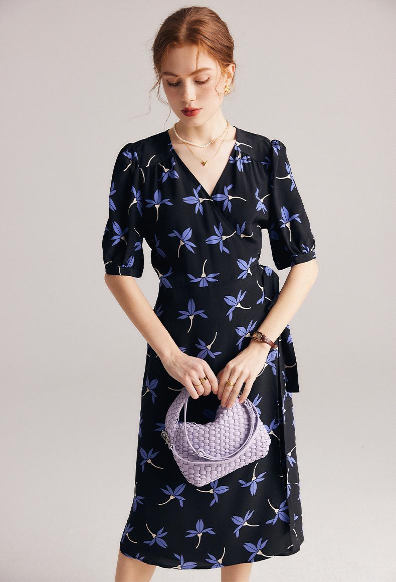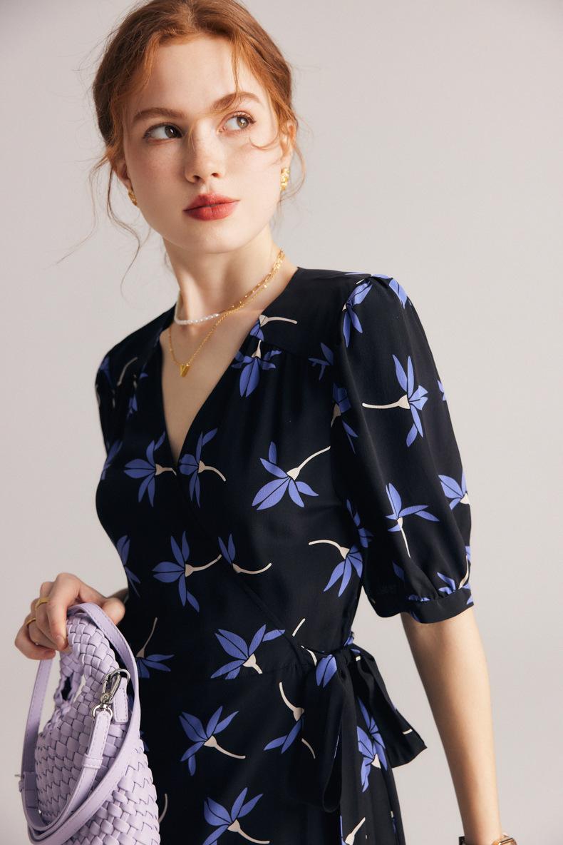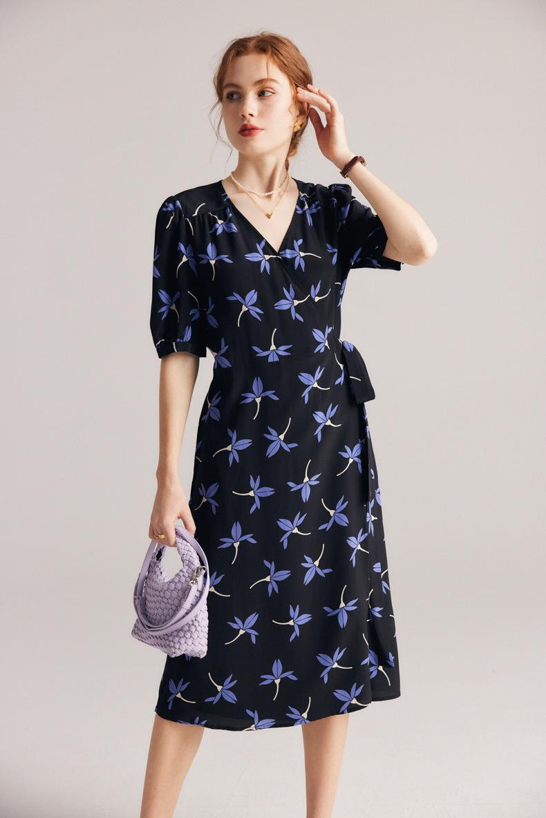 Vestido de Seda para Mujer Primavera y Verano 2025 Nuevo Estilo Envolvente Floral Francés Nanyou Elegante Falda de Seda de Morera 100%