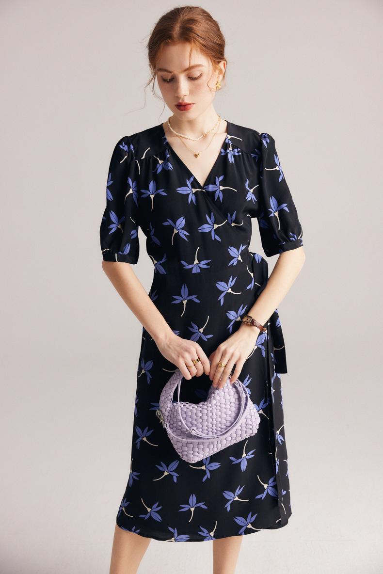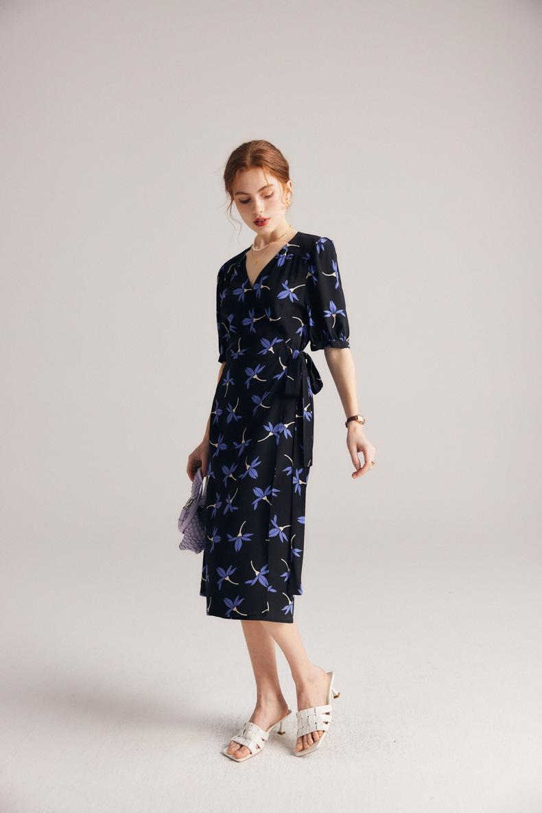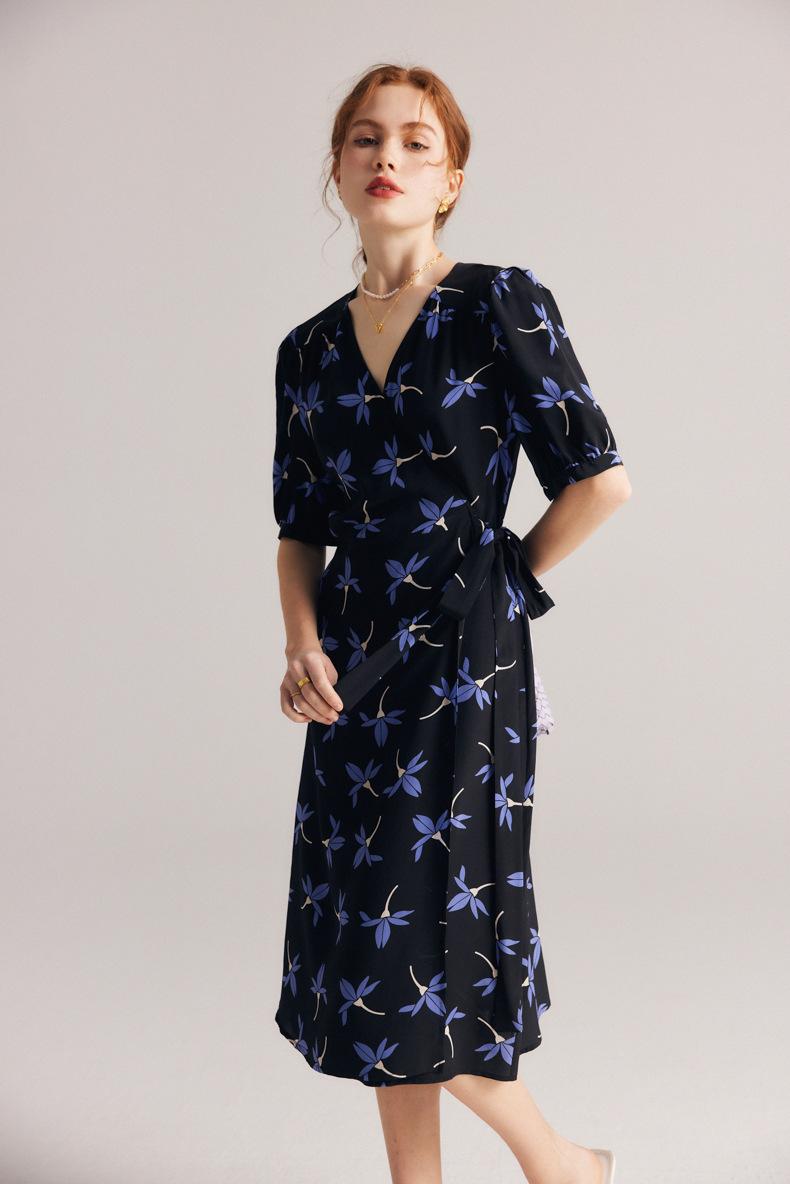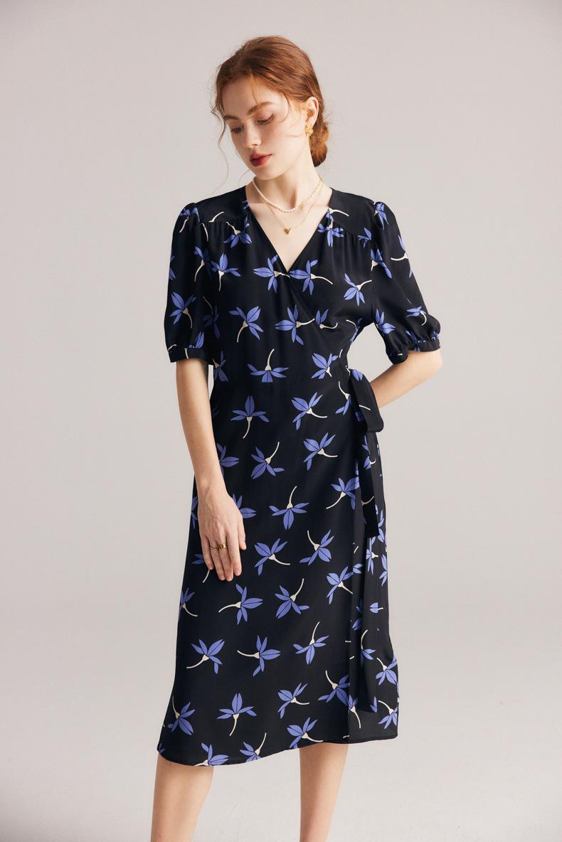 Vestido de Seda para Mujer Primavera y Verano 2025 Nuevo Estilo Envolvente Floral Francés Nanyou Elegante Falda de Seda de Morera 100%