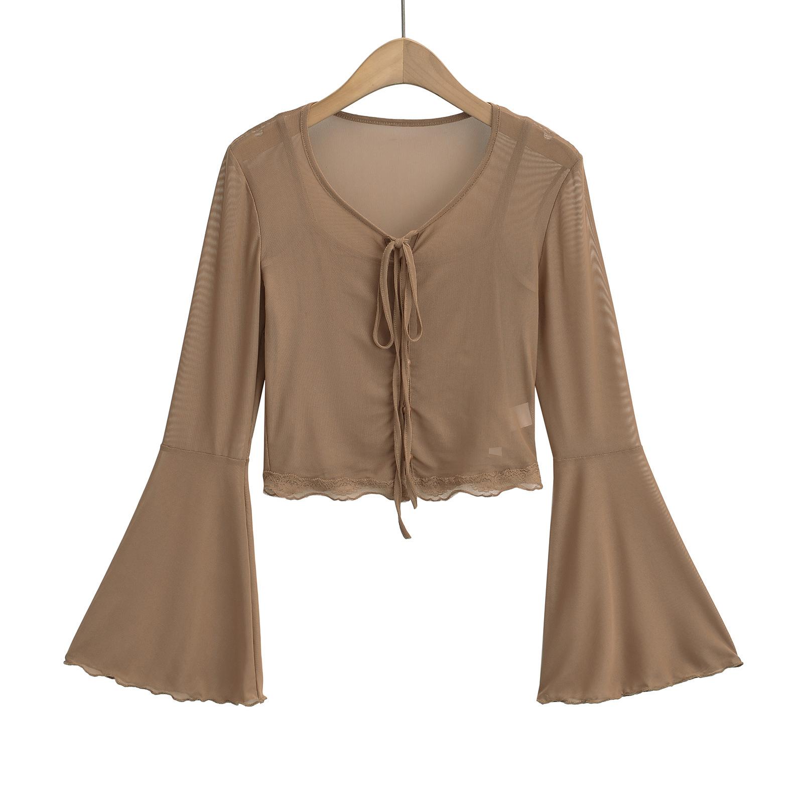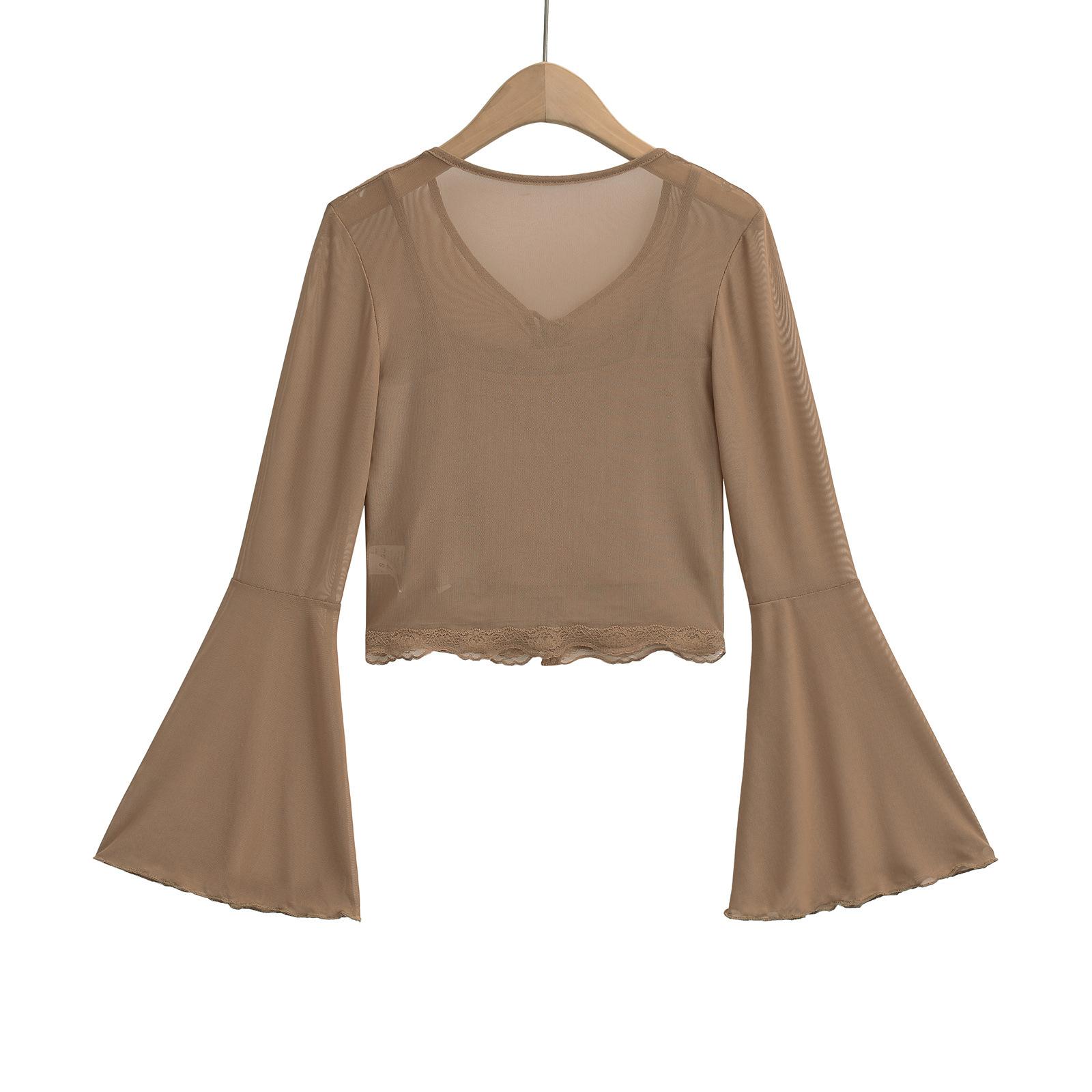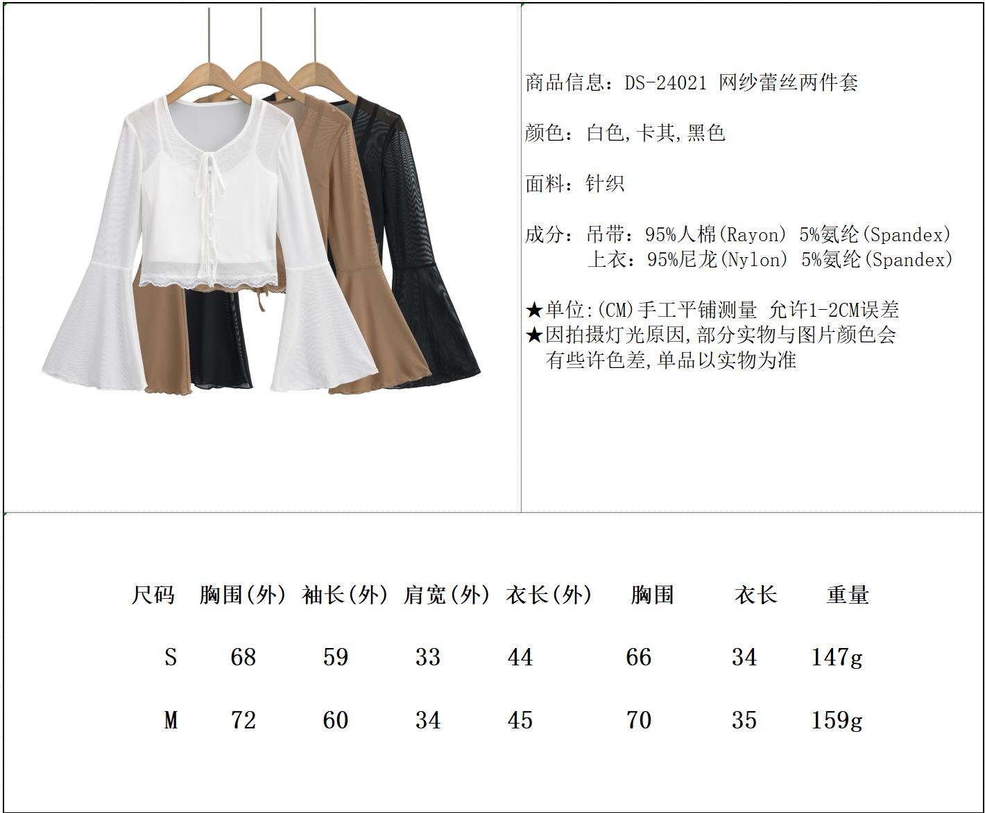 DS24021-24 Primavera Temprana Nuevo Estilo Europeo y Americano Encaje de Malla Pura Fina Sexy Cuello en V Camiseta de Dos Piezas