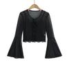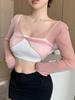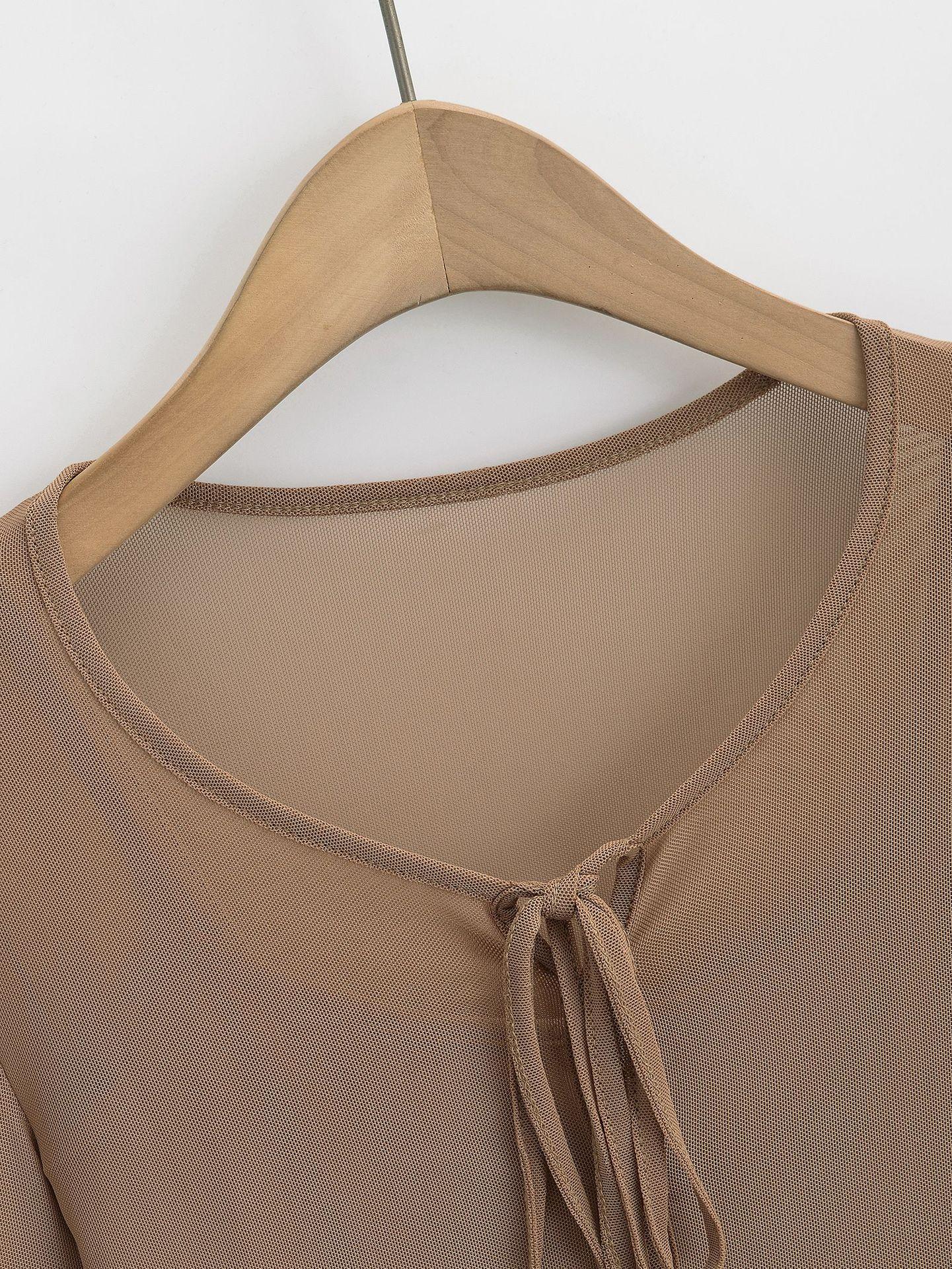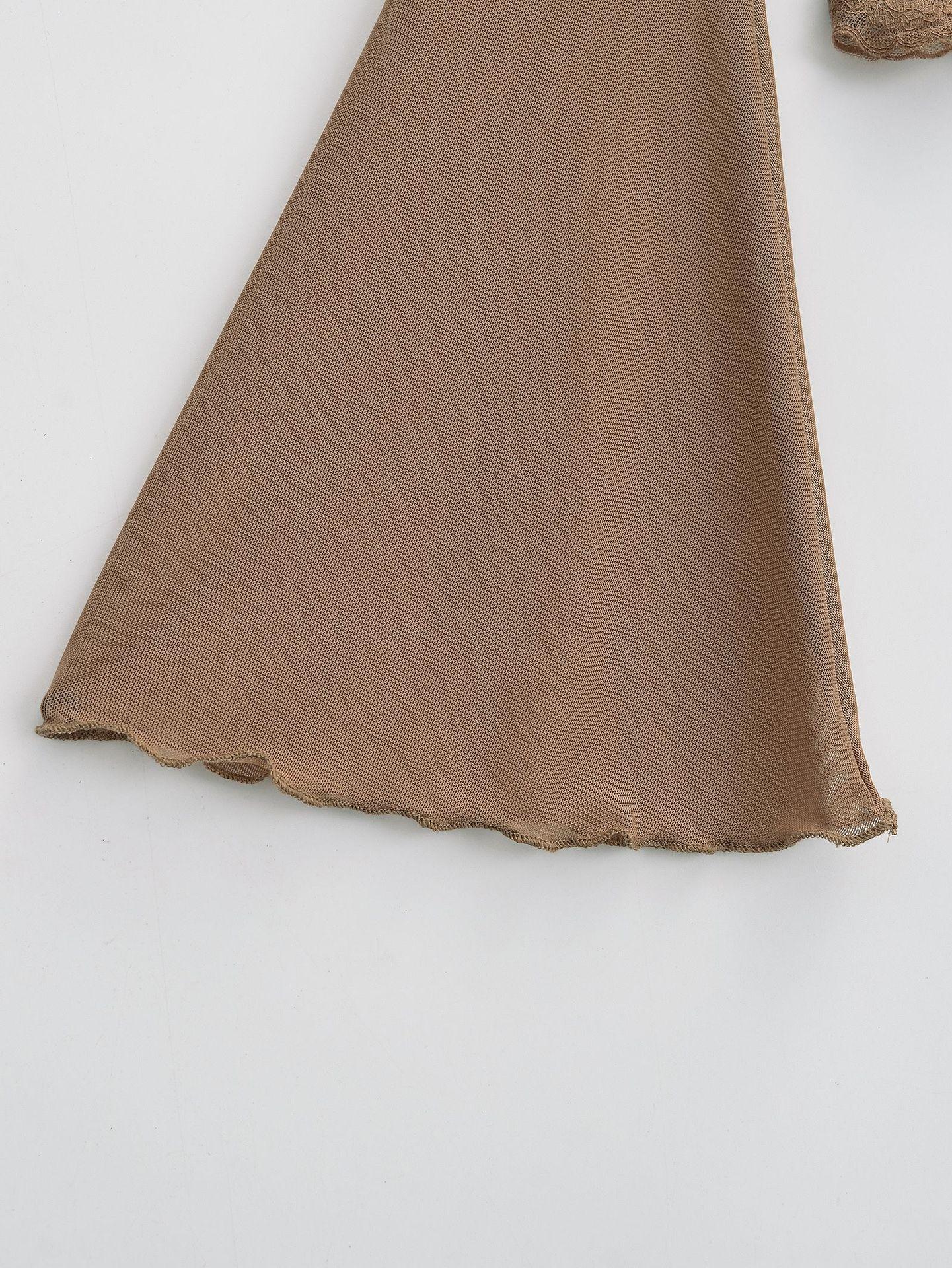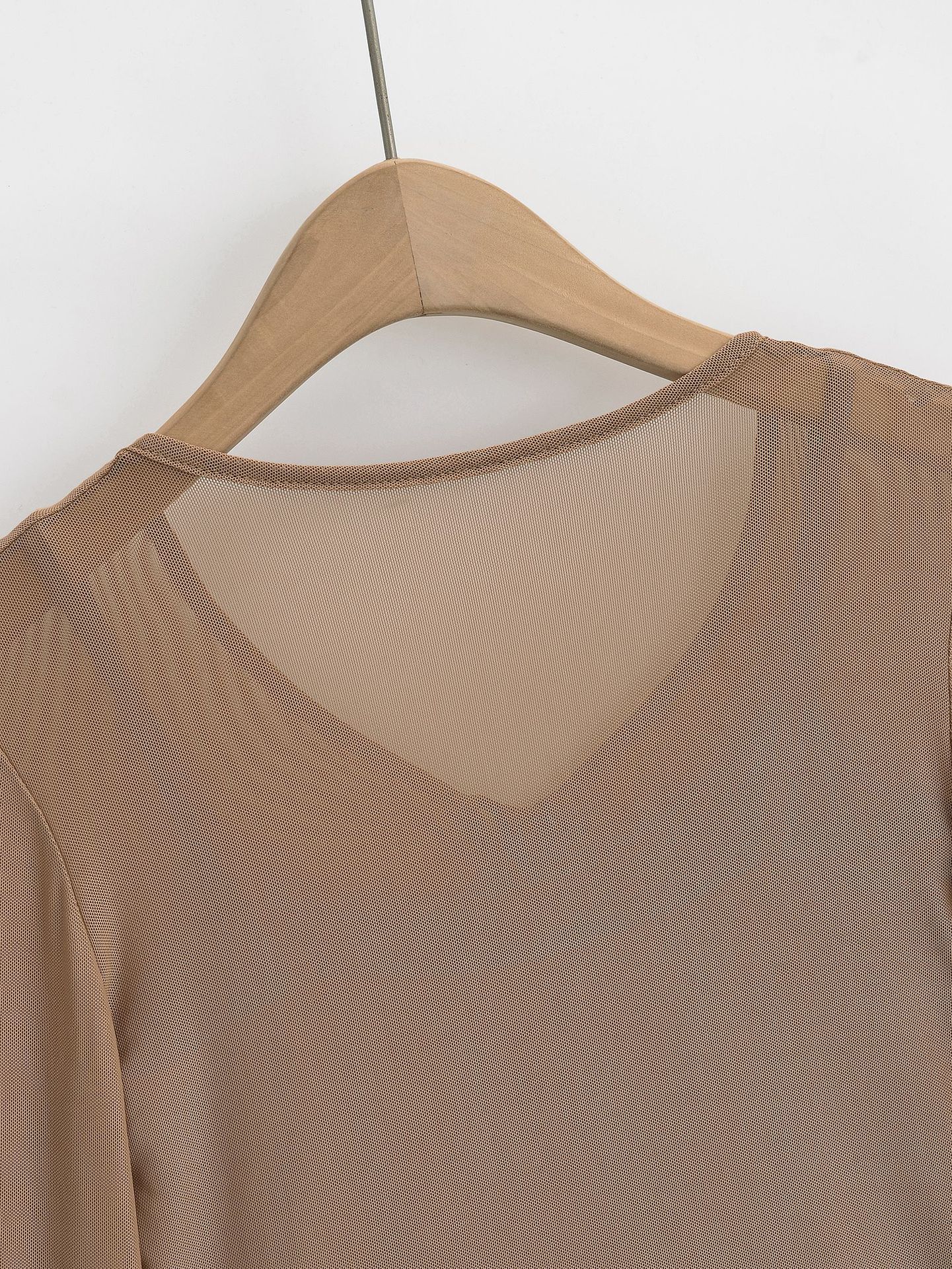 DS24021-24 Primavera Temprana Nuevo Estilo Europeo y Americano Encaje de Malla Pura Fina Sexy Cuello en V Camiseta de Dos Piezas