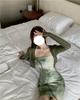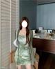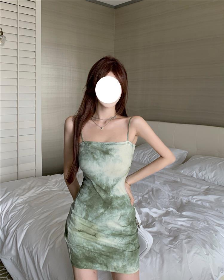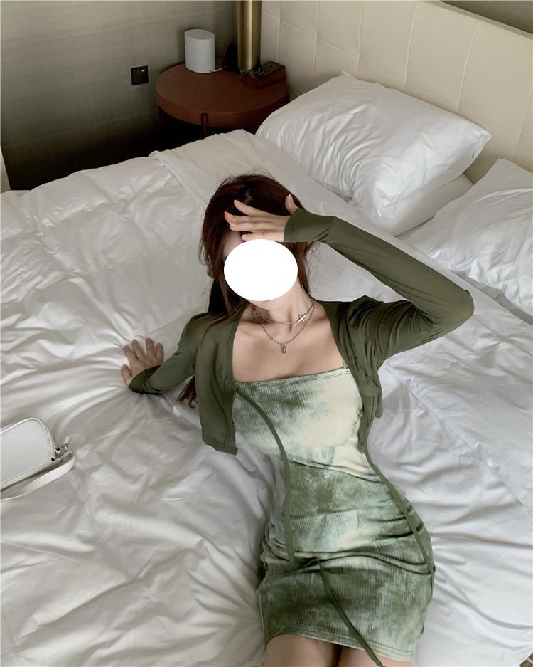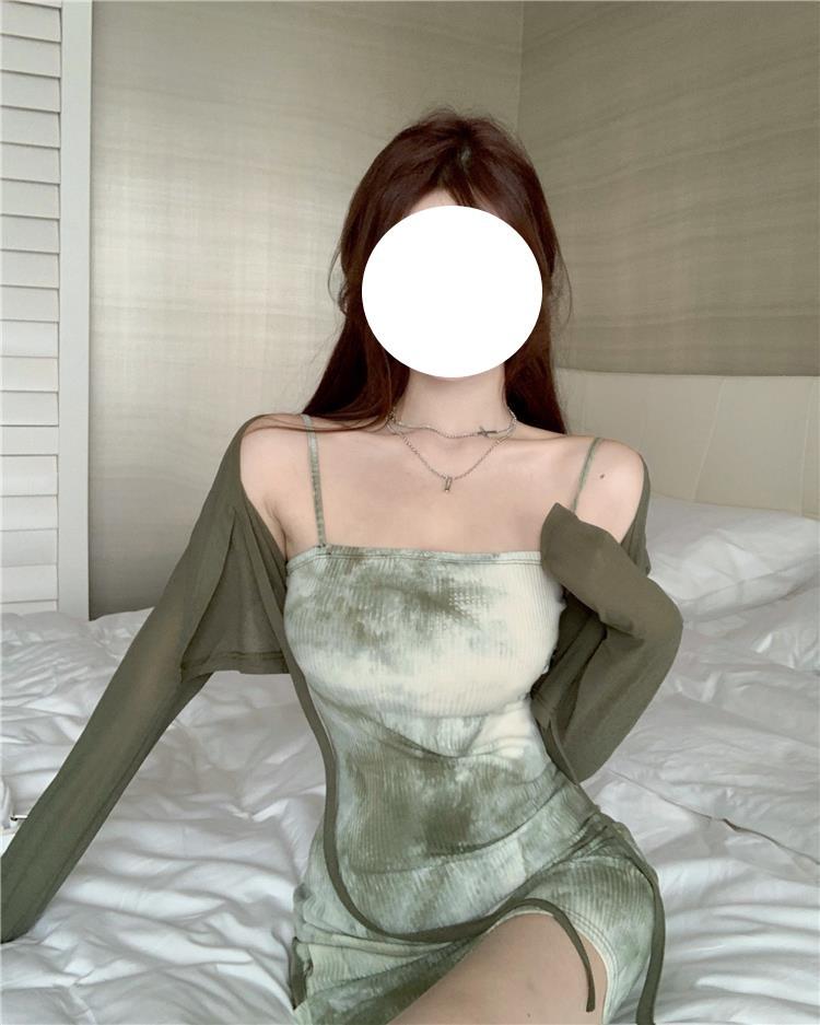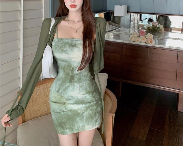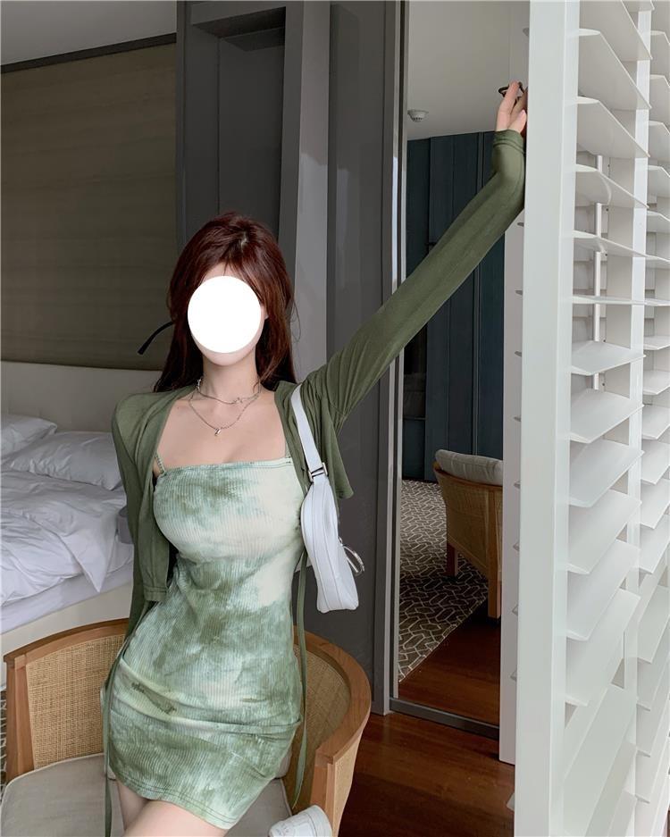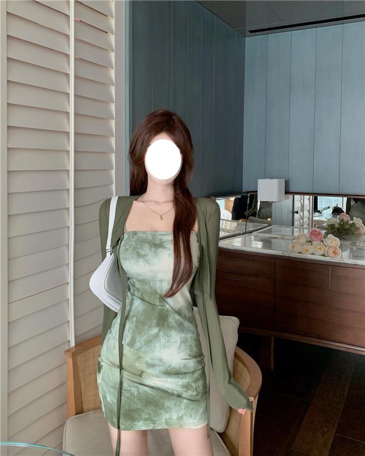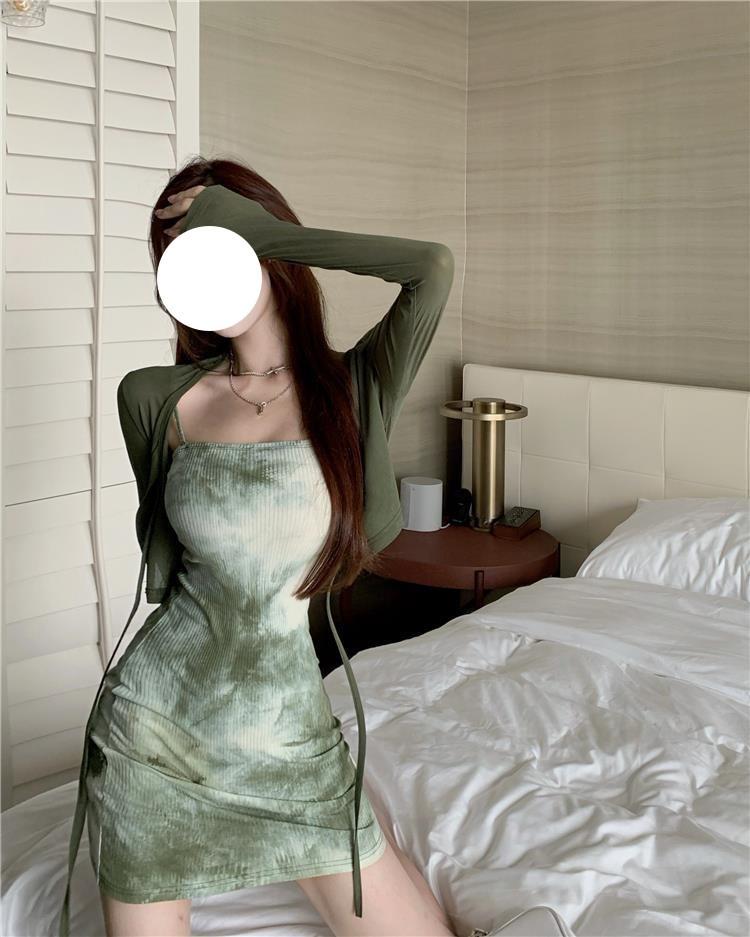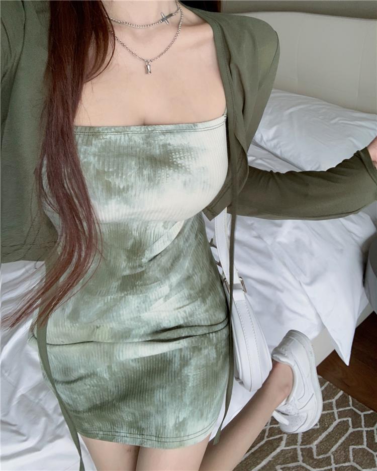 Vestido de Tirantes para Mujer en Primavera y Otoño, Falda Corta Ajustada a la Cintura, Cárdigan de Diseño, Falda Slim Tie-Dye, Set de Dos Piezas a la Moda