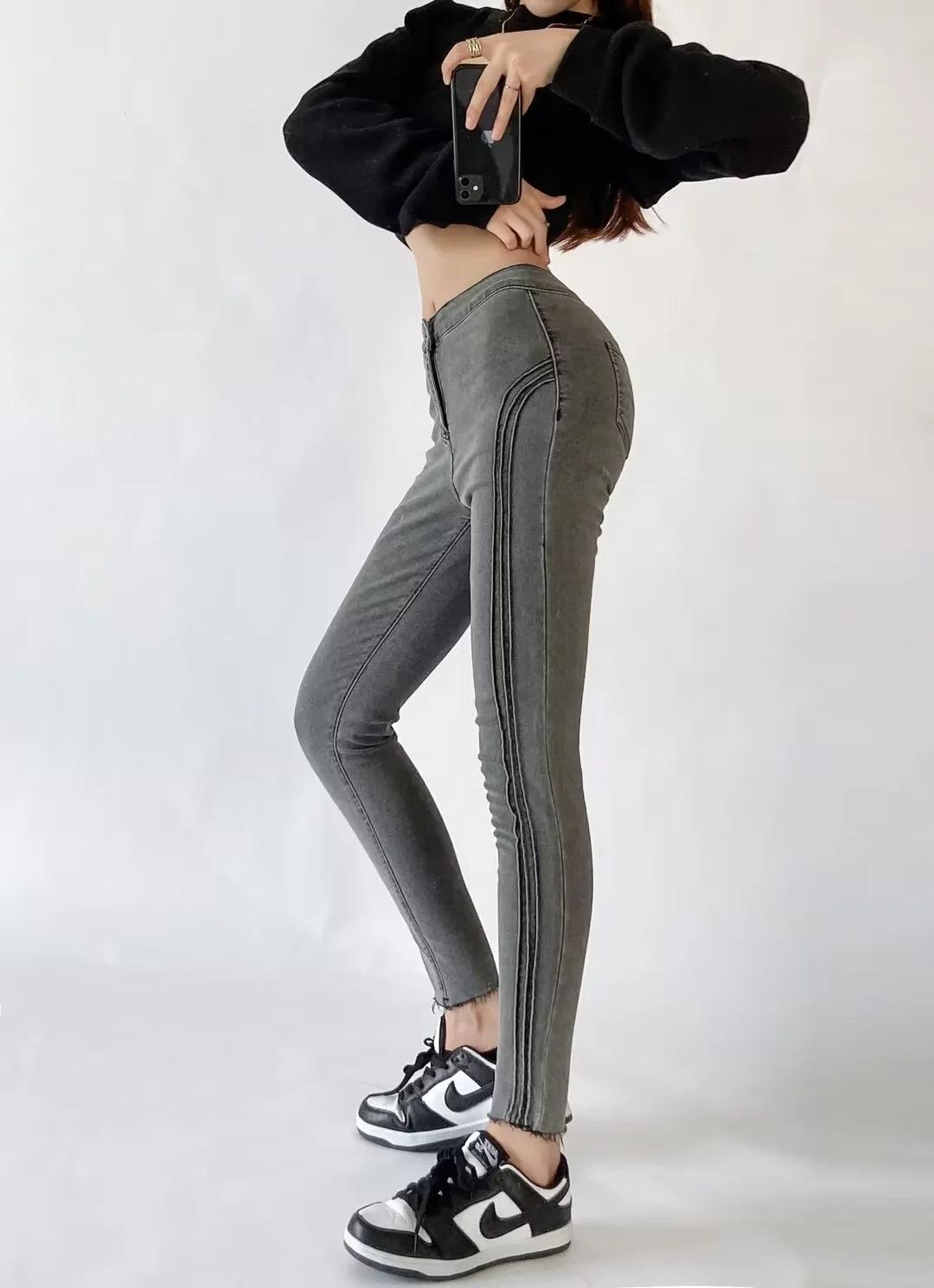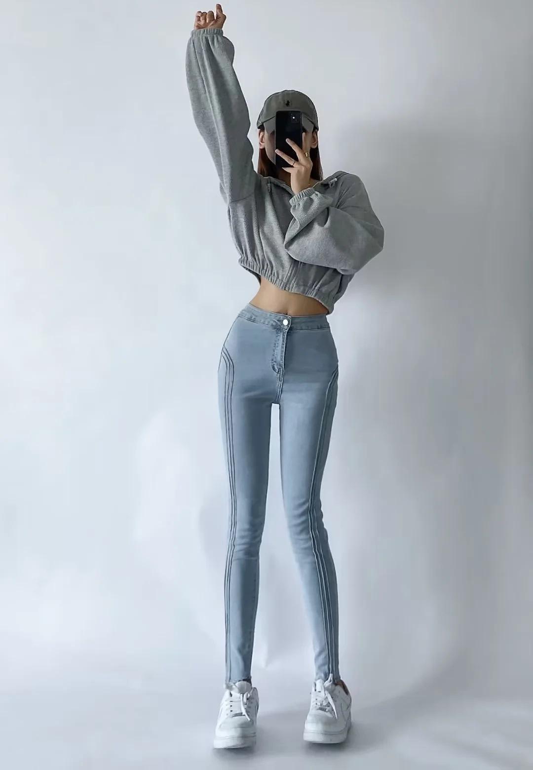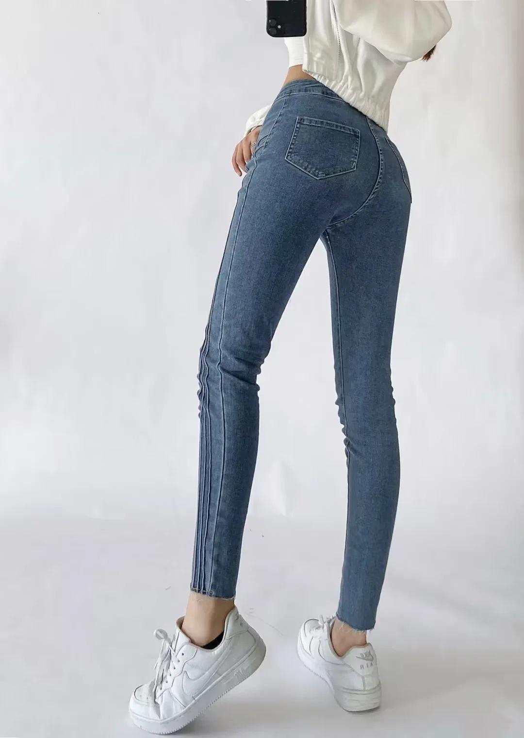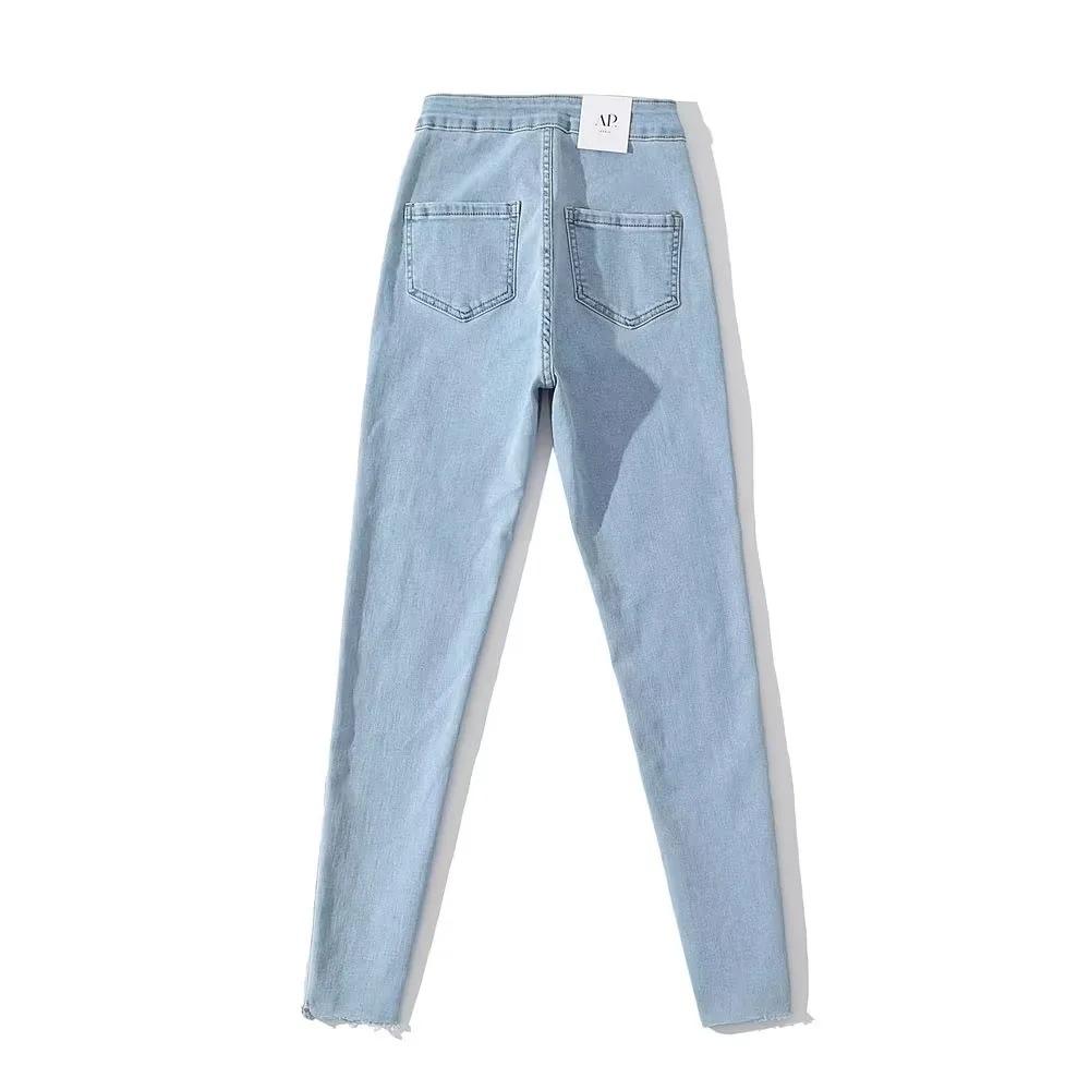 Jeans de otoño e invierno de cintura alta para mujer 2023 otoño nuevos pantalones estilo europeo y americano elásticos adelgazantes corte ajustado deshilachados pantalones lápiz