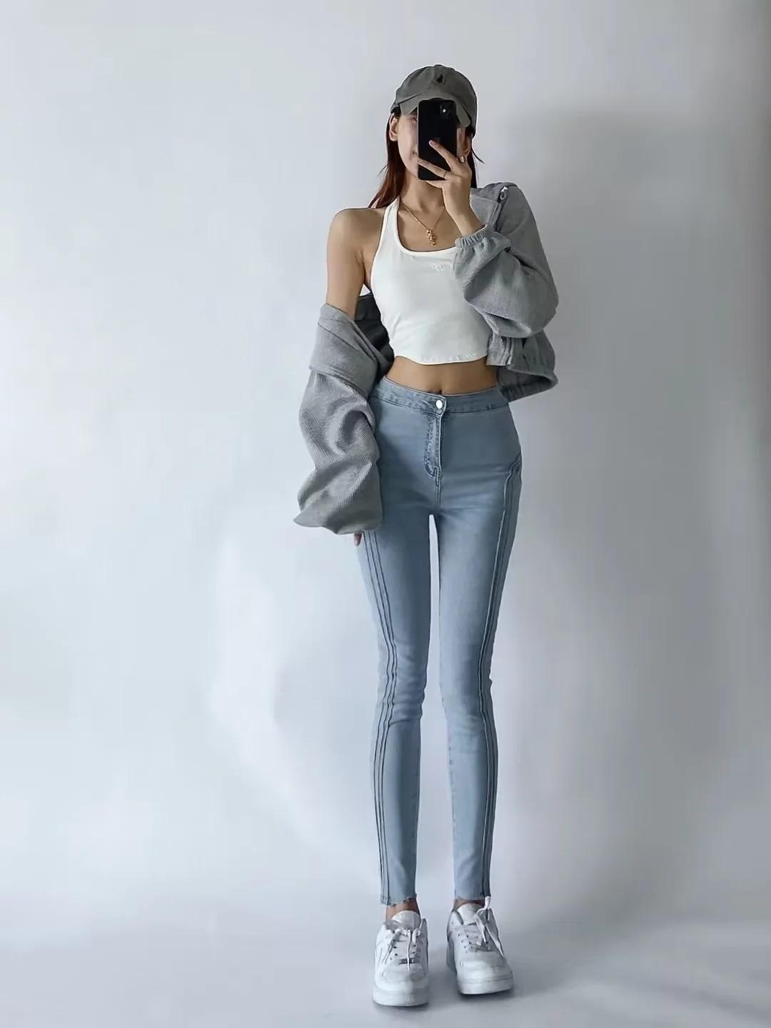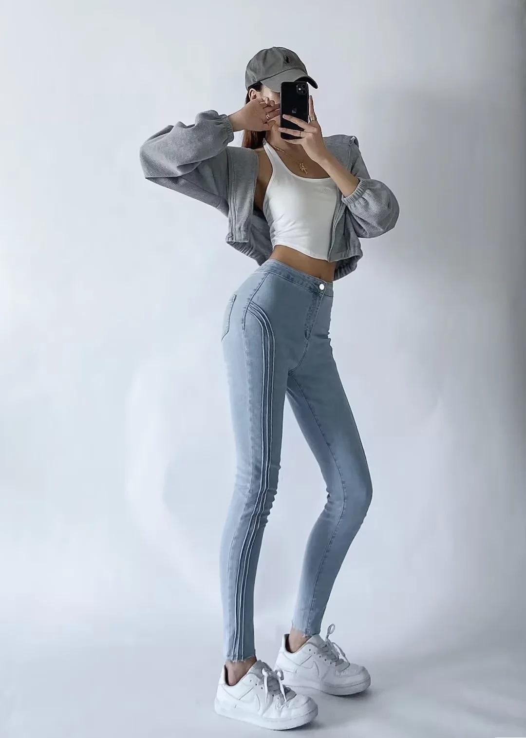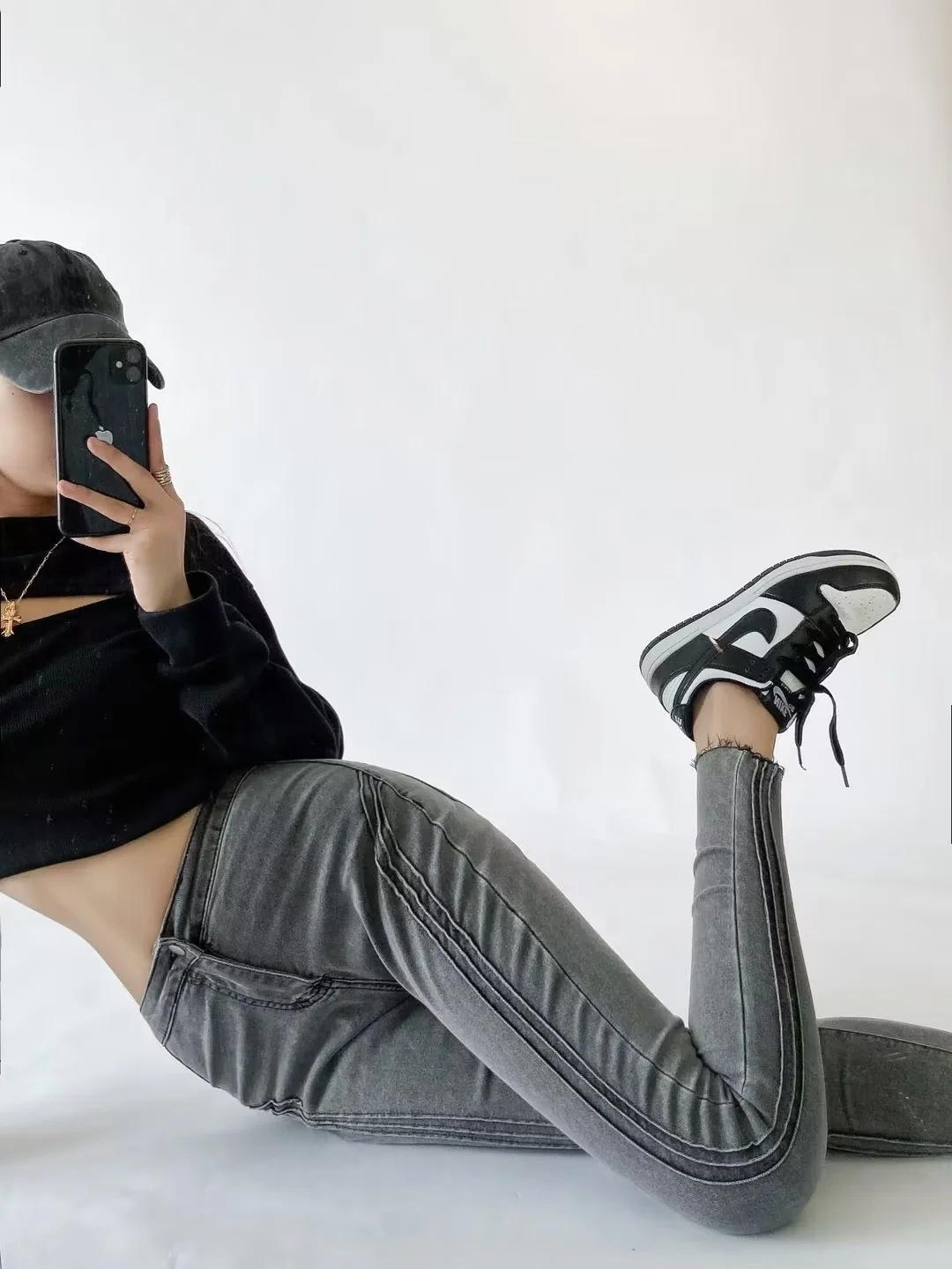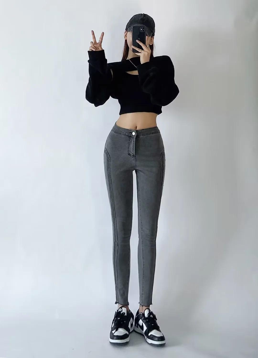 Jeans de otoño e invierno de cintura alta para mujer 2023 otoño nuevos pantalones estilo europeo y americano elásticos adelgazantes corte ajustado deshilachados pantalones lápiz