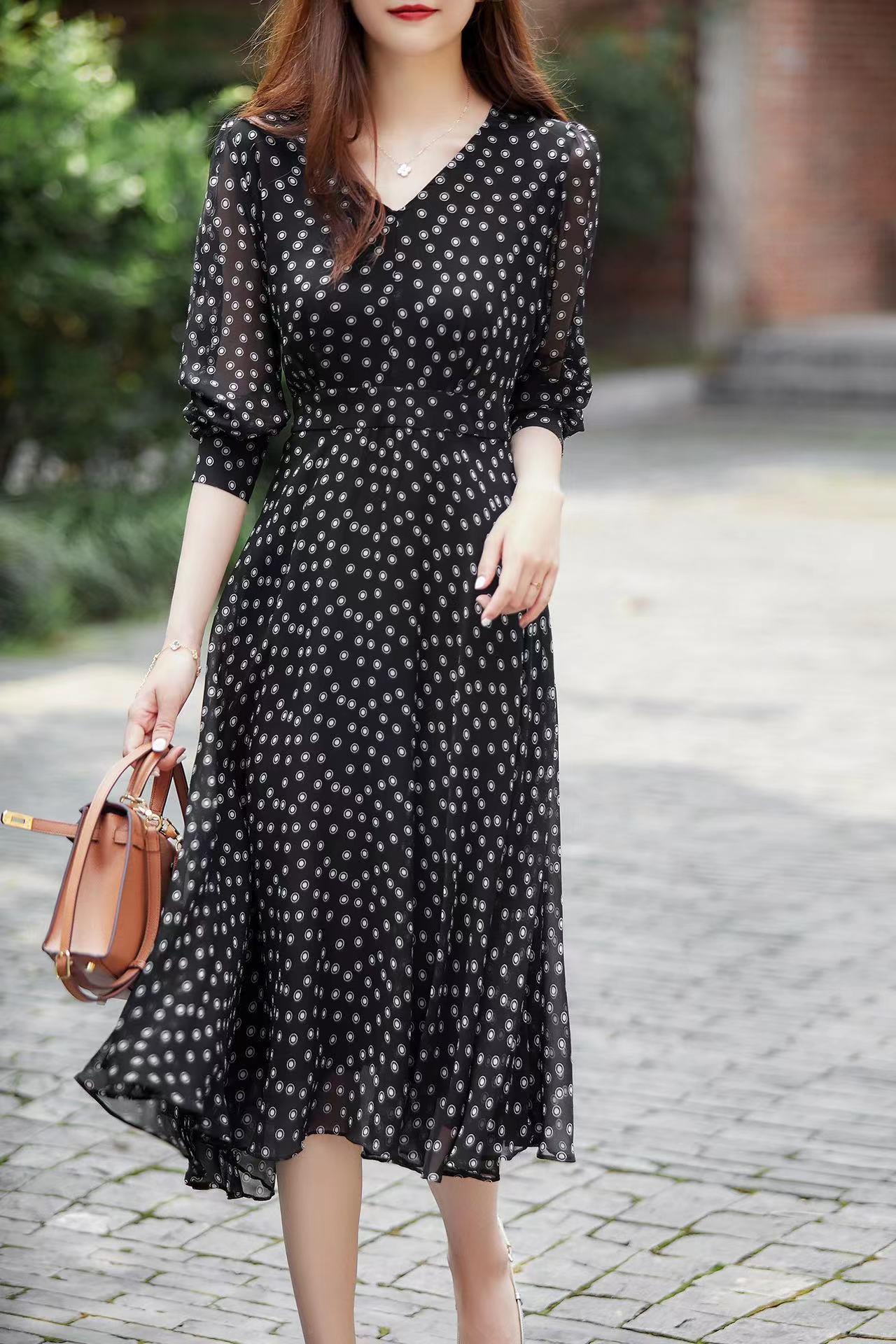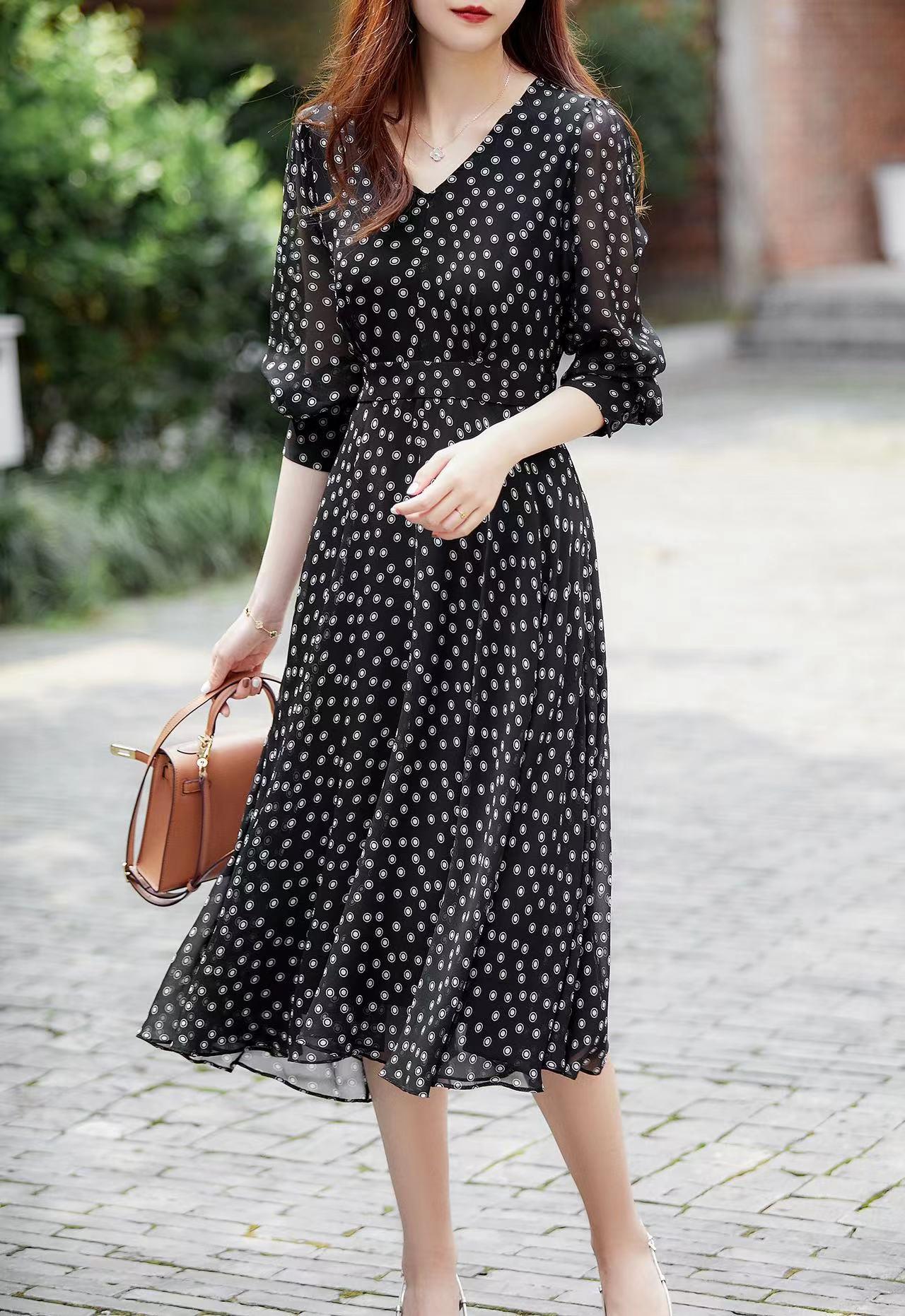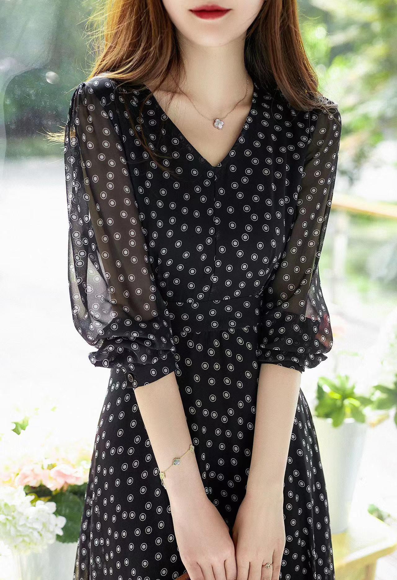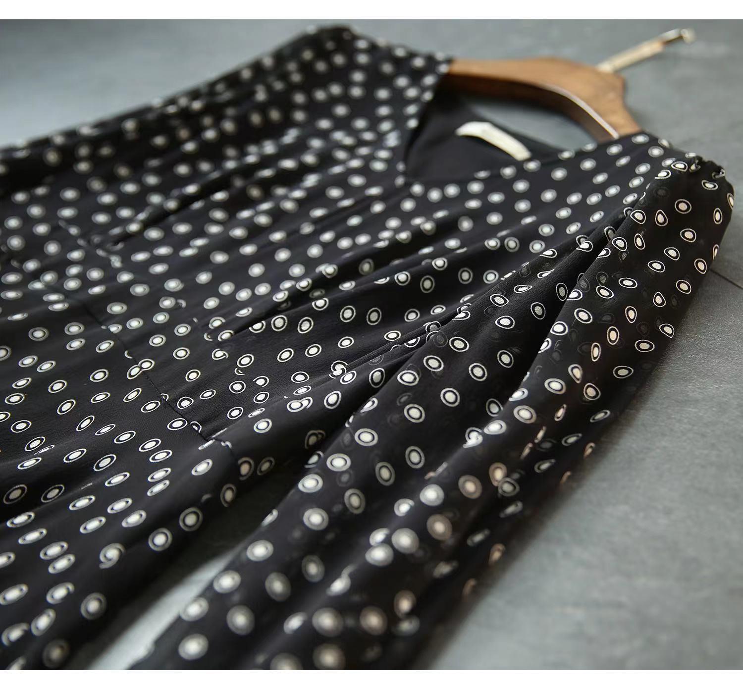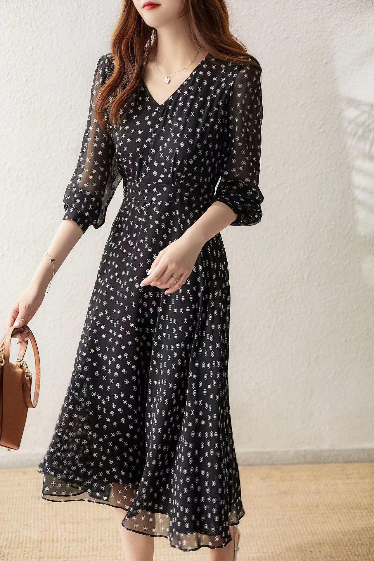 Elegante hasta los huesos Elegante vestido de seda morera con escote en V y círculo pequeño