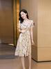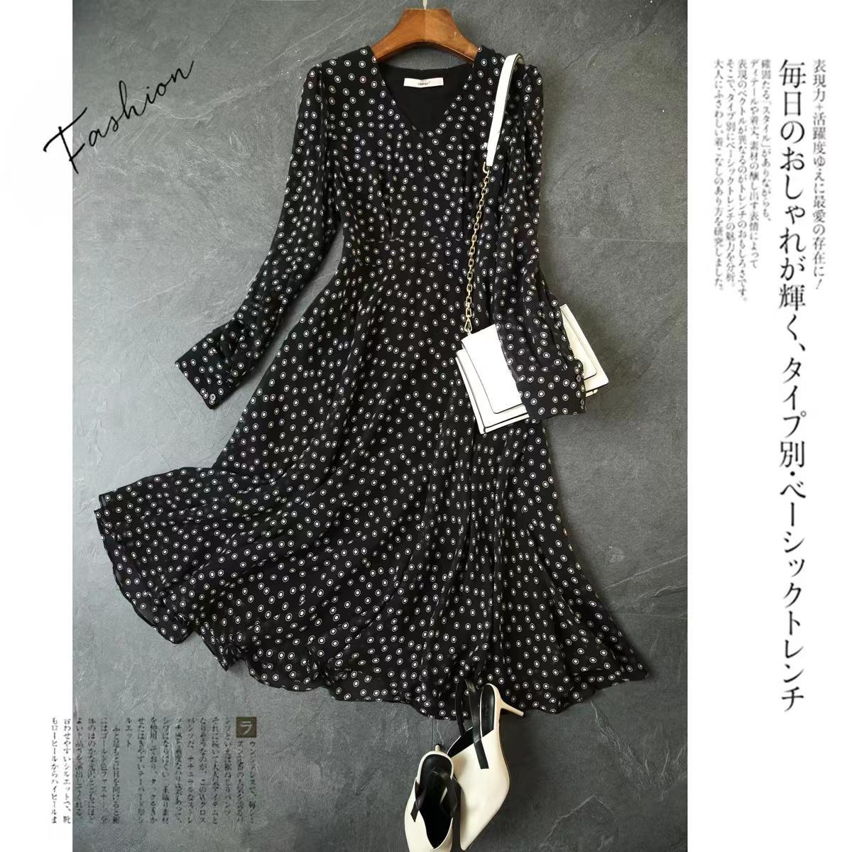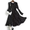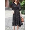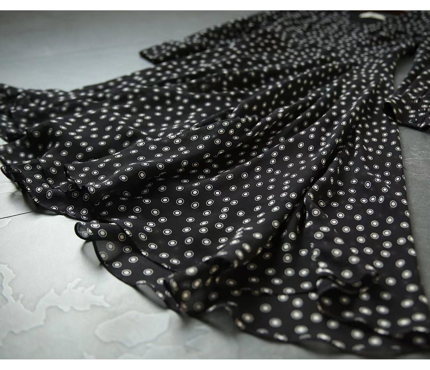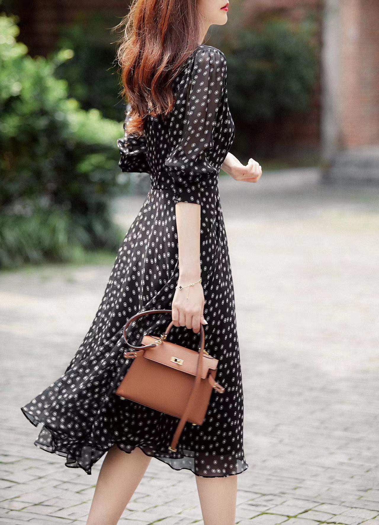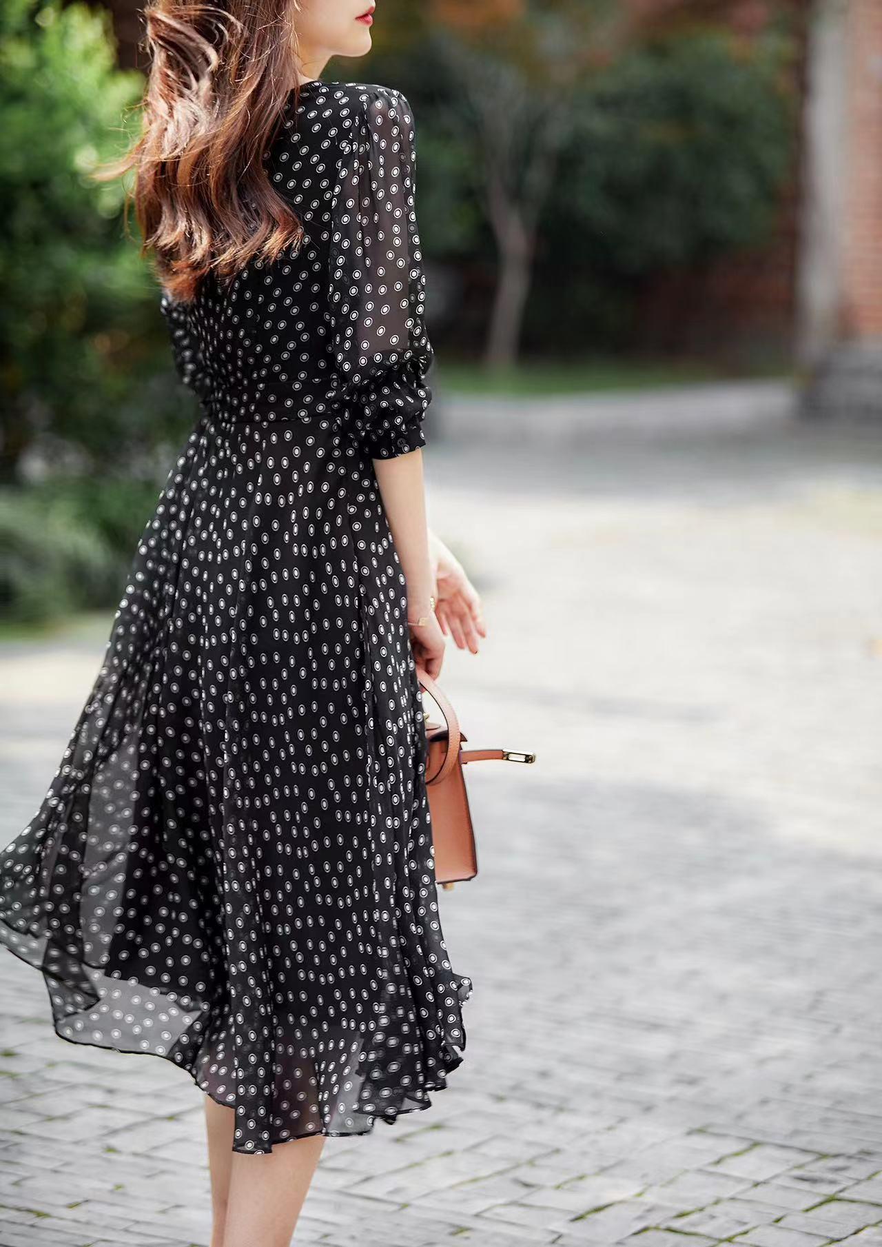 Elegante hasta los huesos Elegante vestido de seda morera con escote en V y círculo pequeño