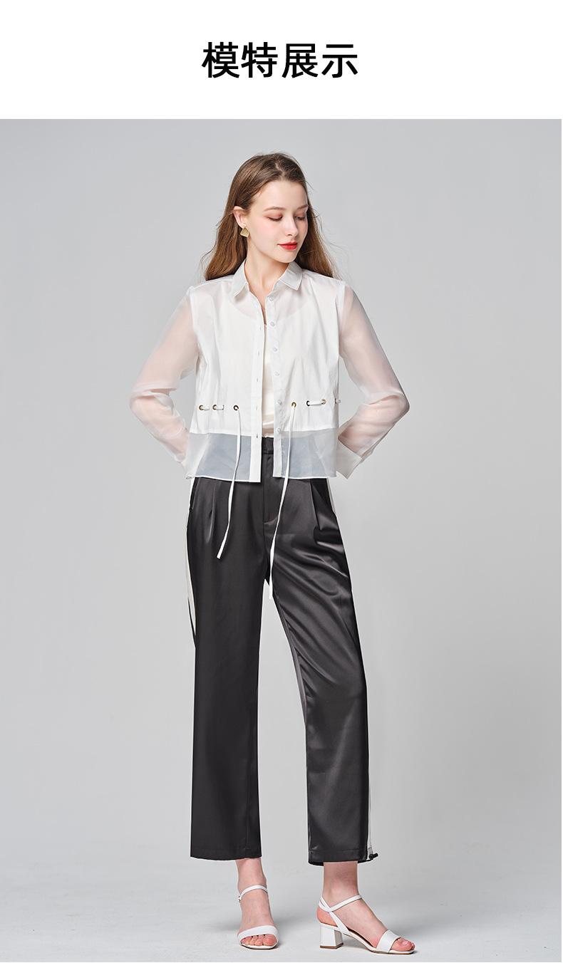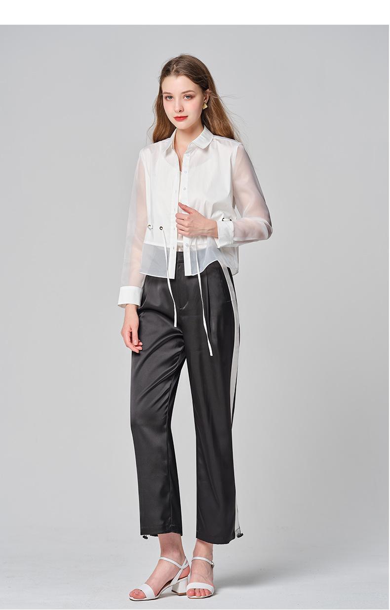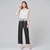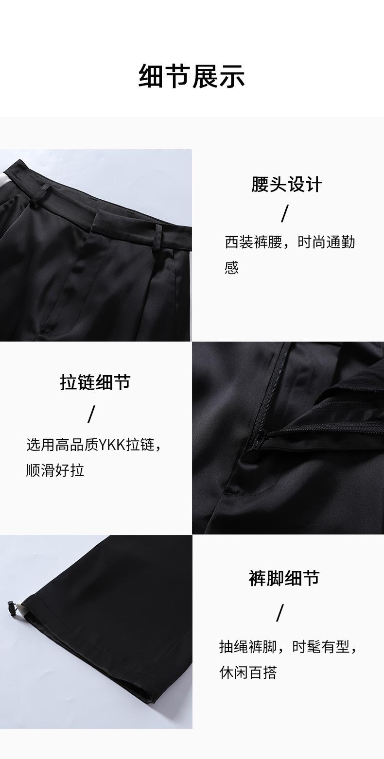 Pantalones de Pierna Ancha Blanco y Negro de Primavera 2025 para Mujer Pantalones de Traje de Cintura Alta Pantalones Casuales de Acetato Sueltos para Mujer