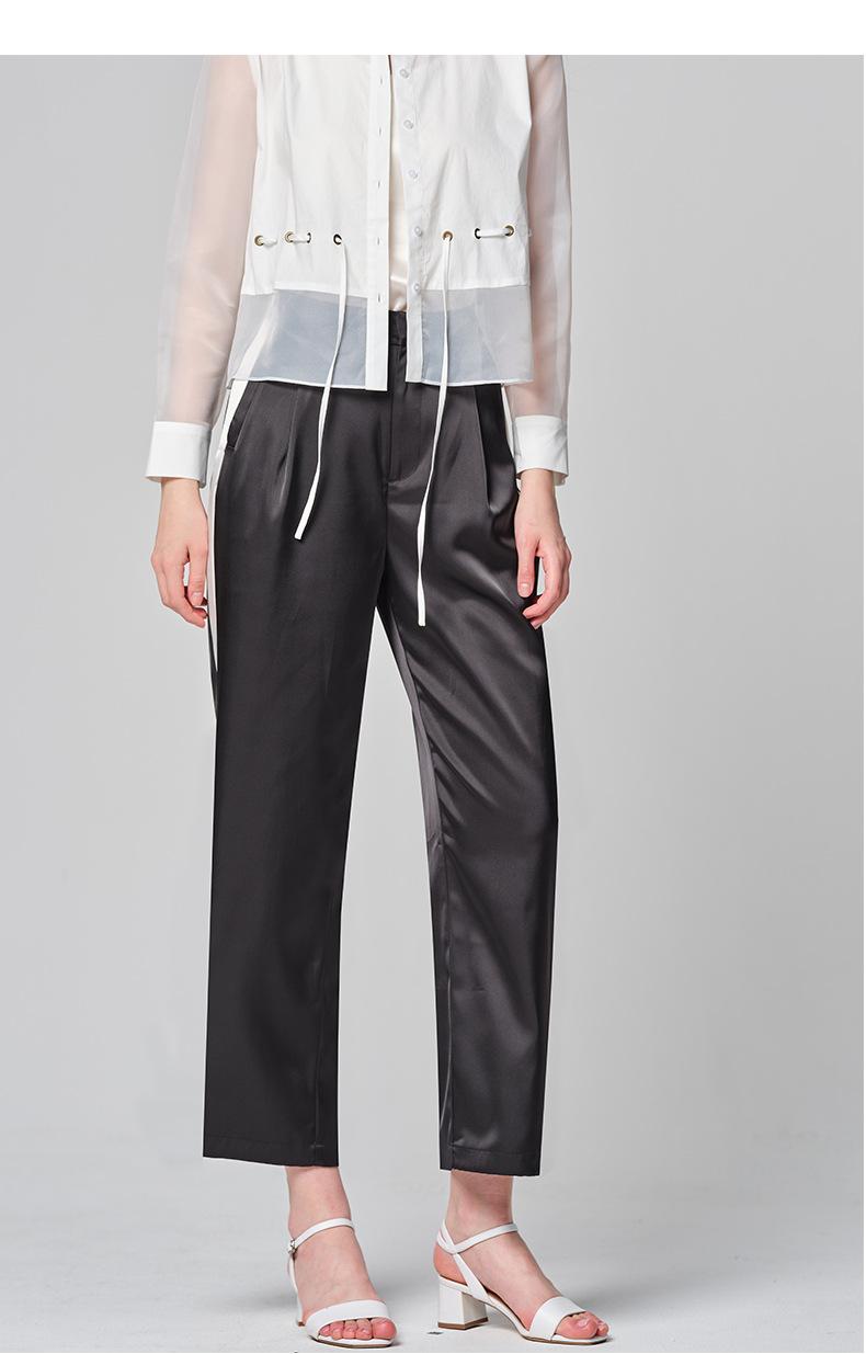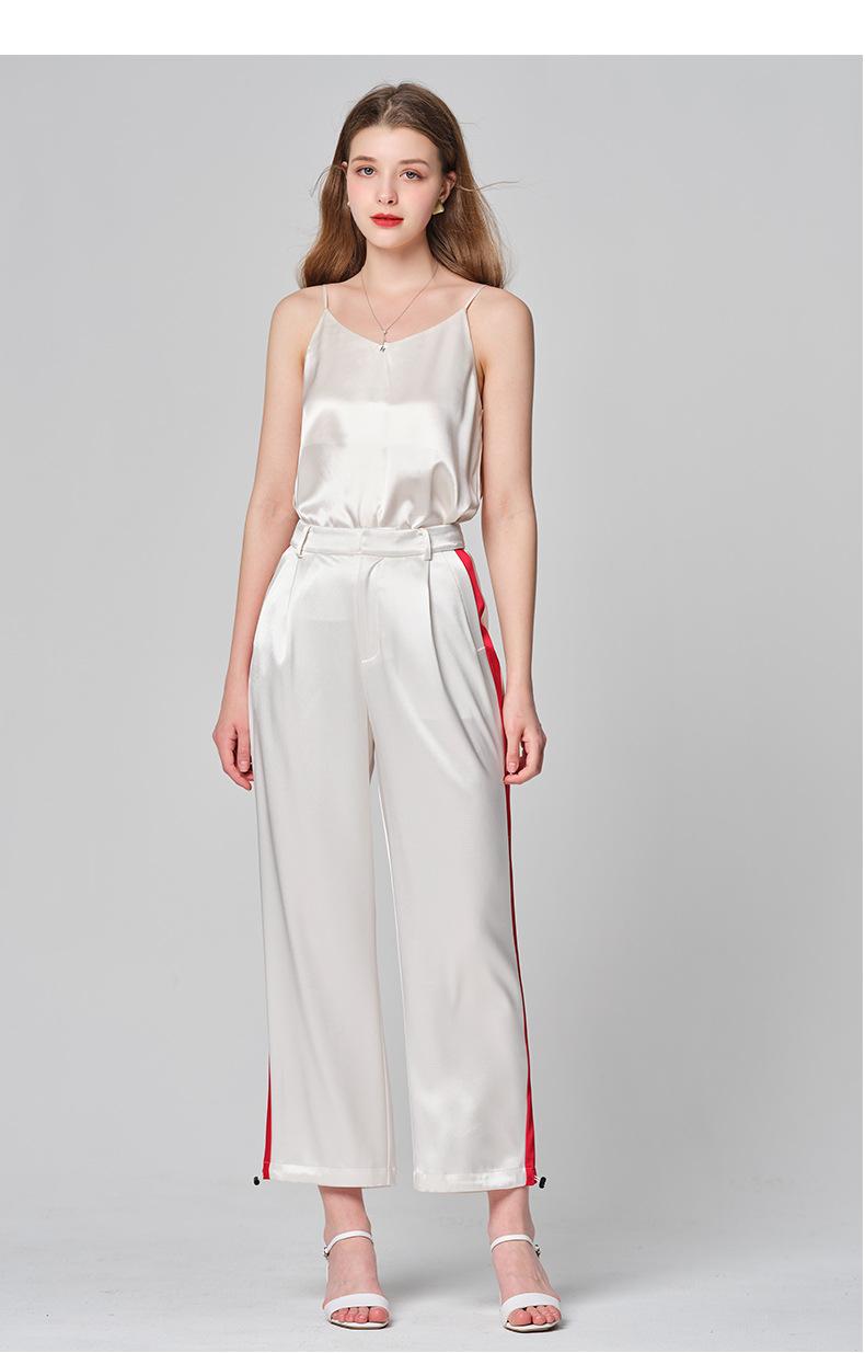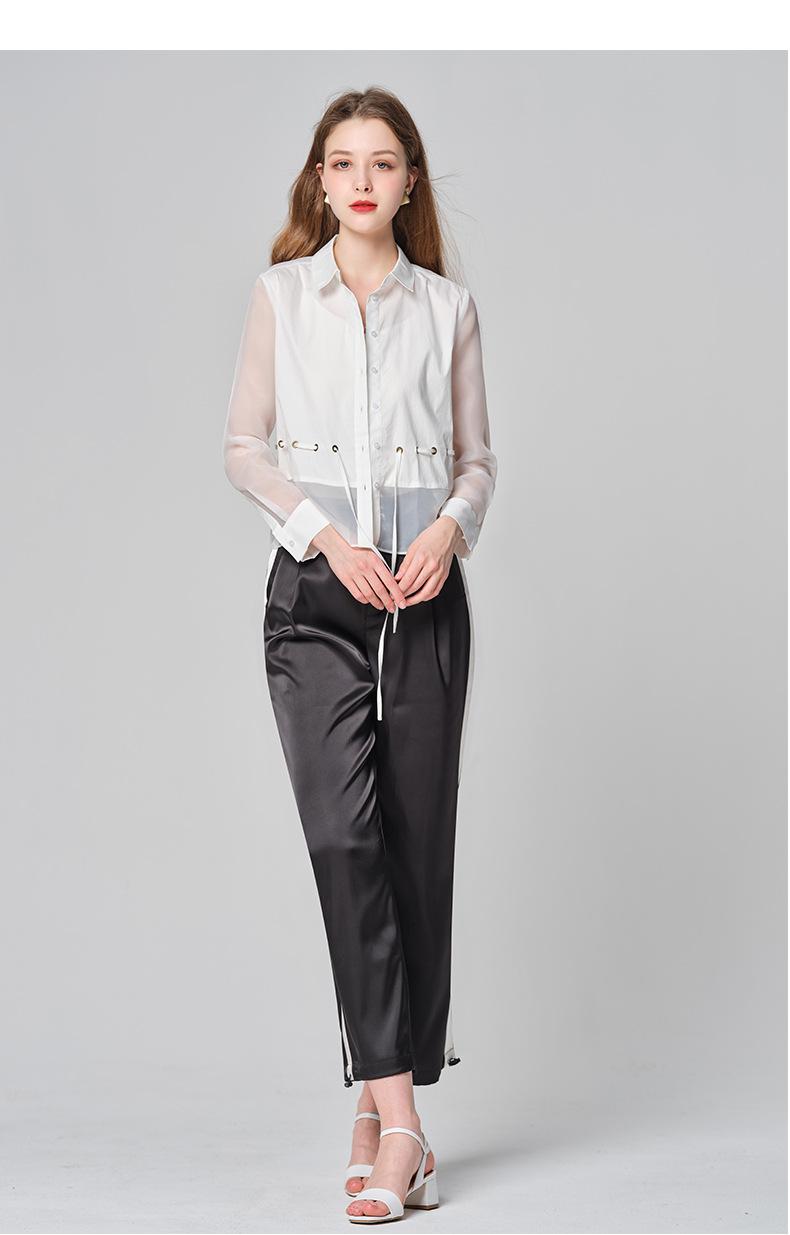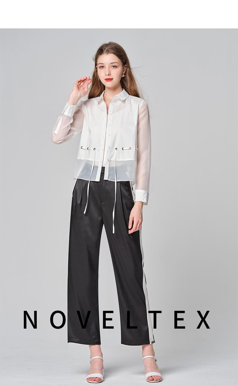 Pantalones de Pierna Ancha Blanco y Negro de Primavera 2025 para Mujer Pantalones de Traje de Cintura Alta Pantalones Casuales de Acetato Sueltos para Mujer