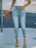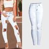 Jeans de mendigo con rotos, elásticos, ajustados, de cintura media alta y estilo europeo y americano de AliExpress.