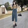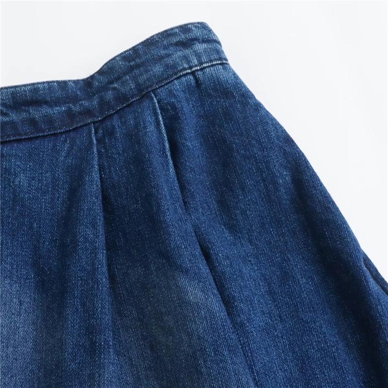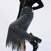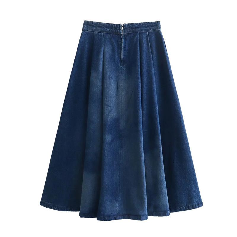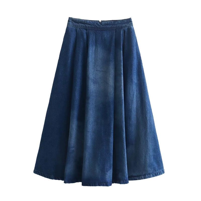 Estilo Europeo y Americano 2024 Primavera Nueva Moda Versátil Cintura Alta Slim A-Line Falda Larga Falda Midi de Mezclilla Falda para Mujer