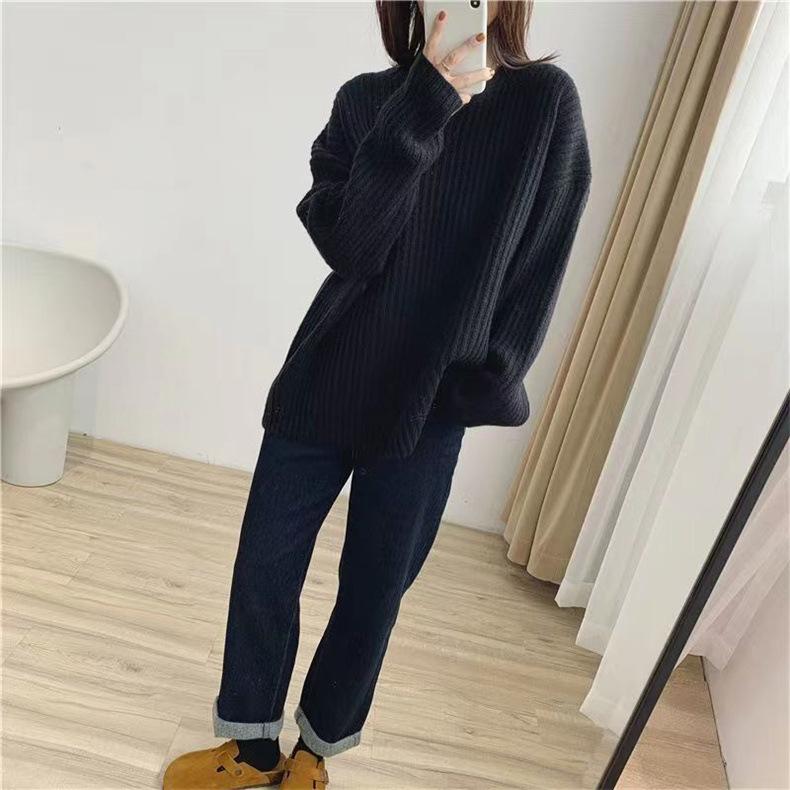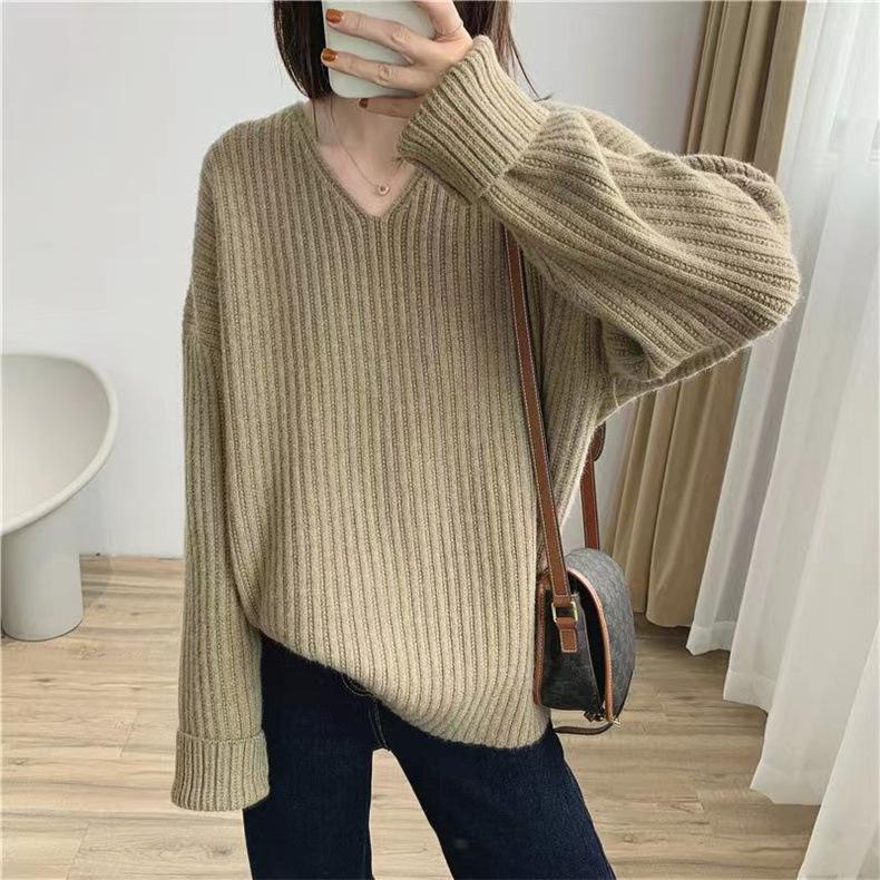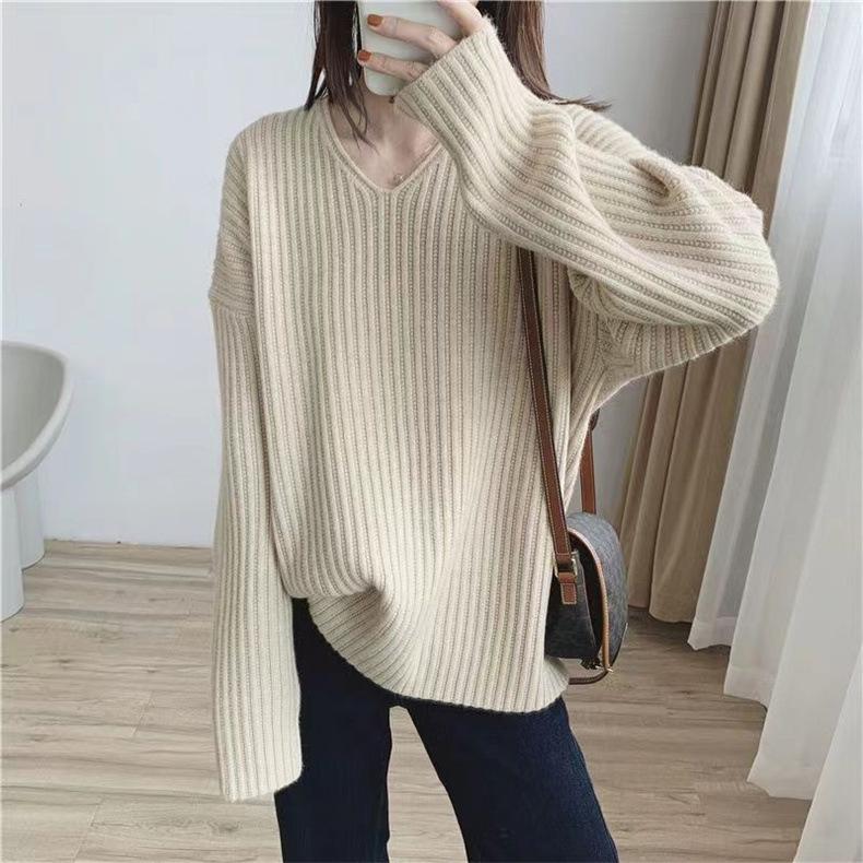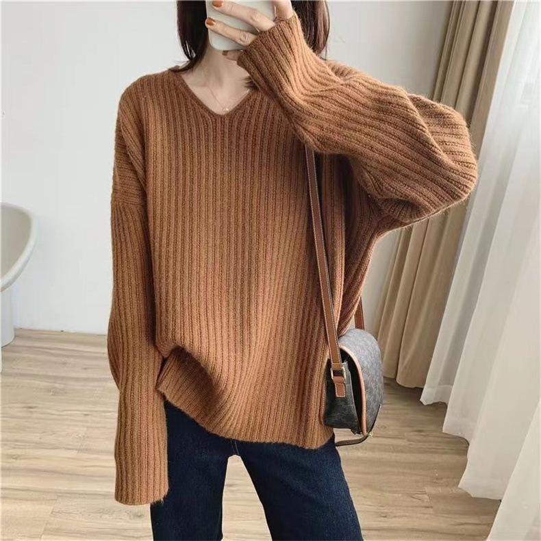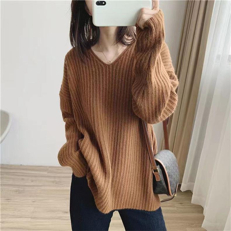 Suéter tipo cárdigan de cuello redondo estilo perezoso coreano nuevo de otoño e invierno para mujer, tops casuales sueltos y suaves que no dañan la piel.