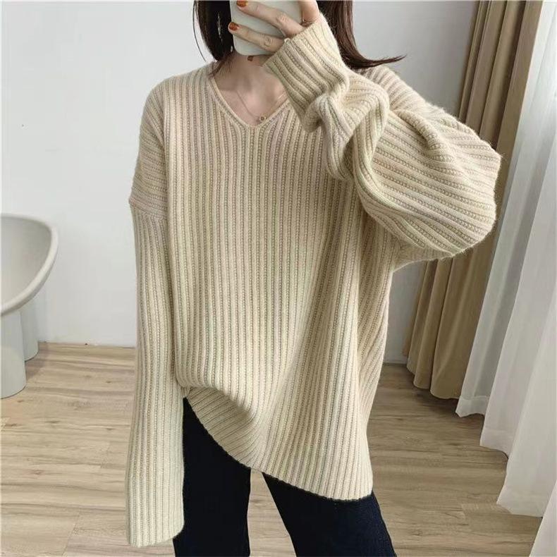 Vestido tipo suéter con cuello en V para mujer en otoño e invierno, talla grande, estilo holgado, ropa interior larga, chaleco tipo jersey, vestido tipo chaleco de punto suave y pegajoso.