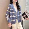 Cárdigan de punto con botones de cuerno, top de otoño e invierno 2024, nueva versión coreana suave y suelta, abrigo de lana con cuello en V para mujer