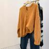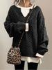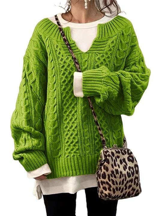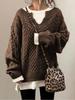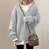 Suéteres Nuevos de Otoño e Invierno Europeos y Americanos Amazon Cuello en V Trenzado Color Puro Tops de Punto Suéter Holgado de Punto para Mujer Fabricante