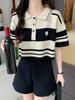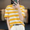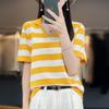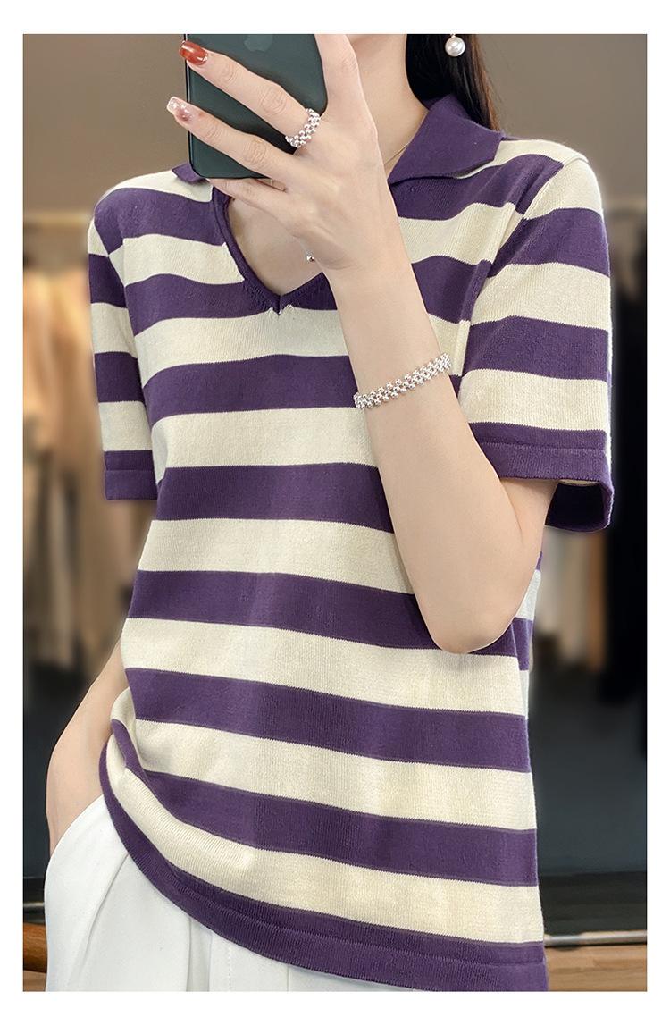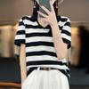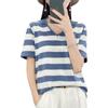 Algodón chiffon POLO cuello camiseta de rayas manga corta camisa de mujer cuello media manga verano estilo coreano camiseta holgada top de mujer