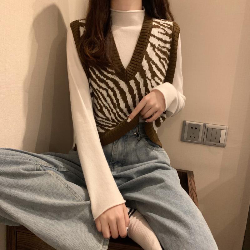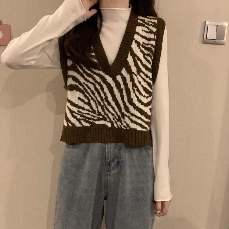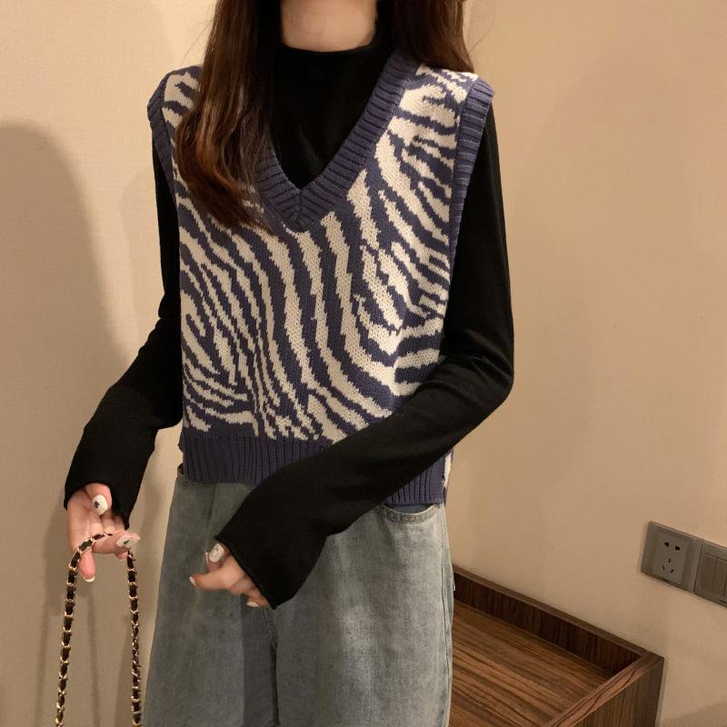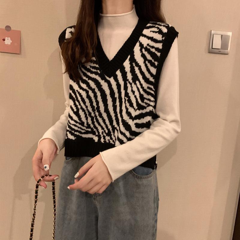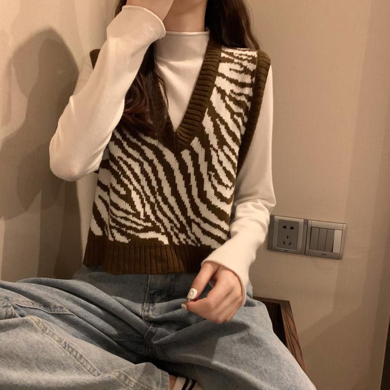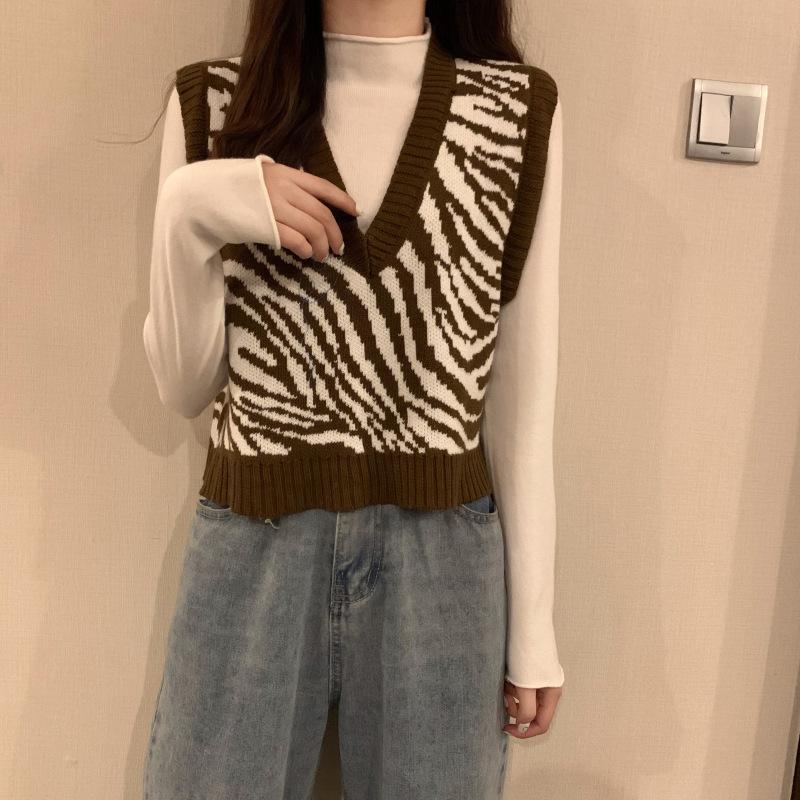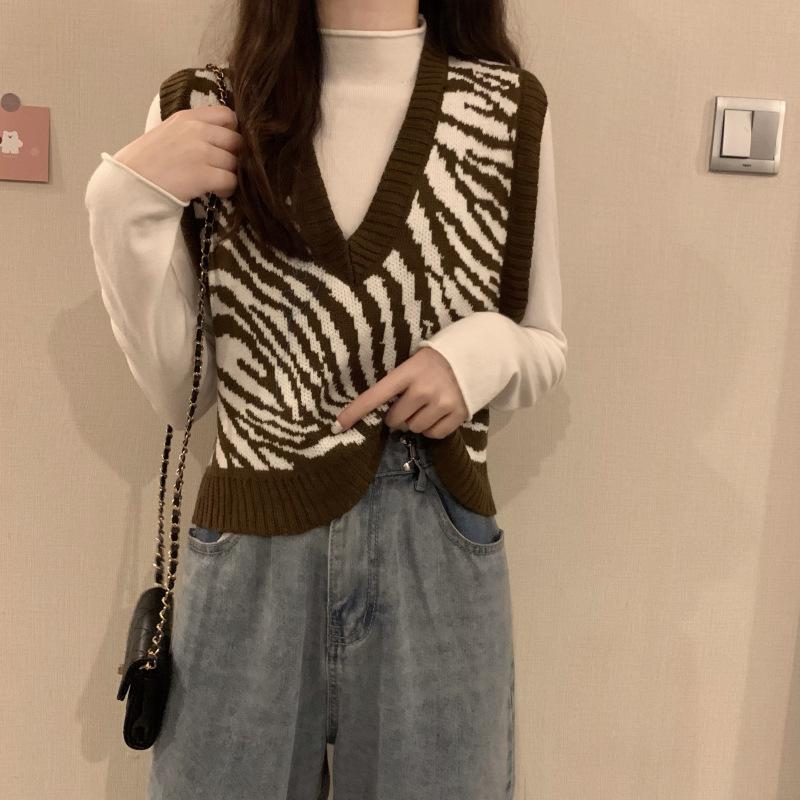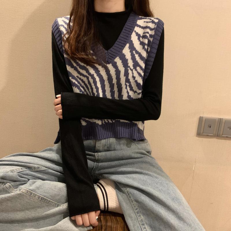 Chaleco Tejido Rayado Estilo Coreano Nuevo 2023 Chaleco Más Fácil de Combinar Cálido Adelgazante Top Base para Ropa Exterior Dropshipping