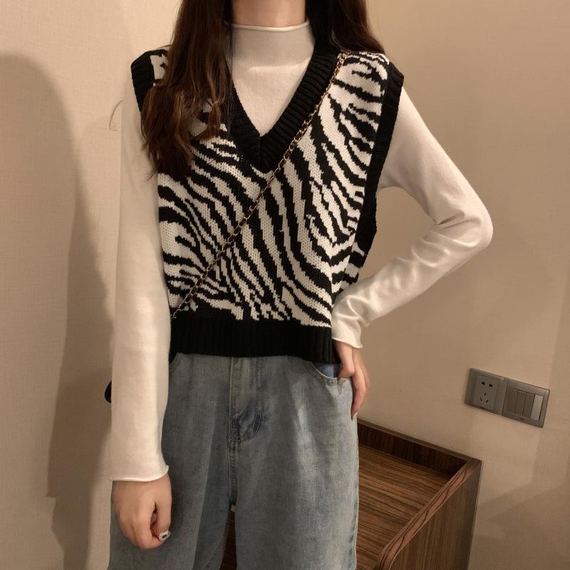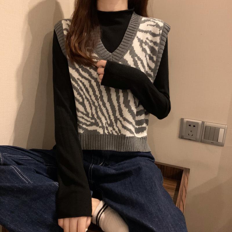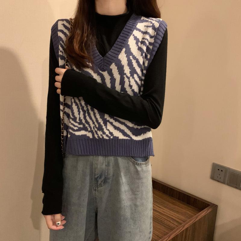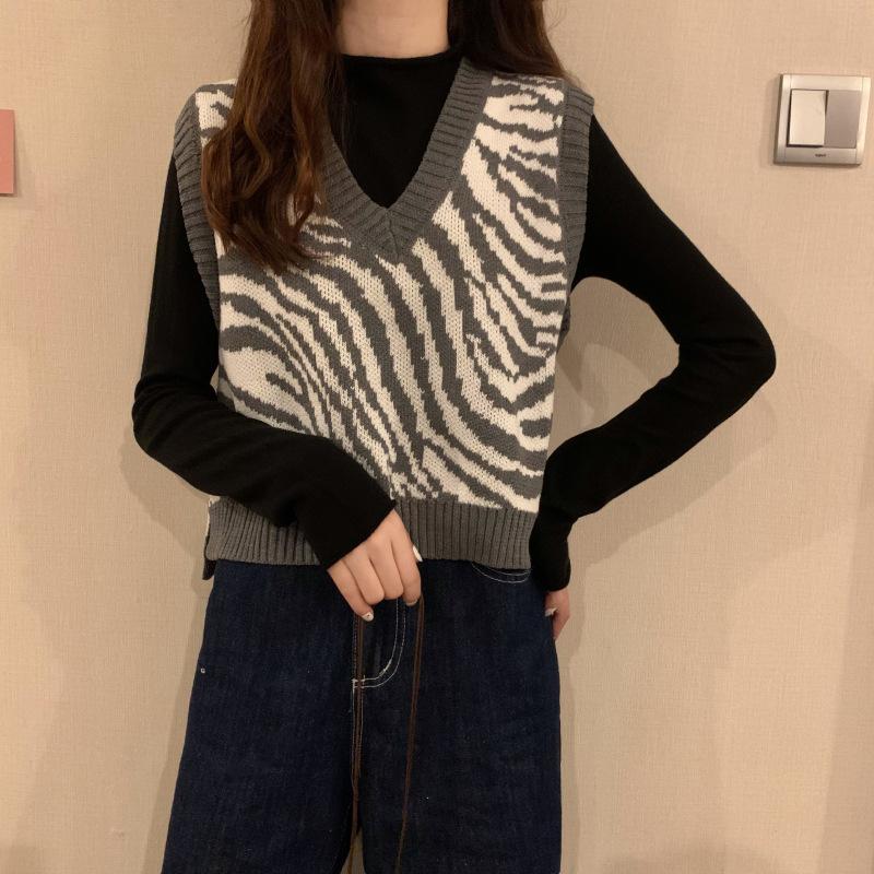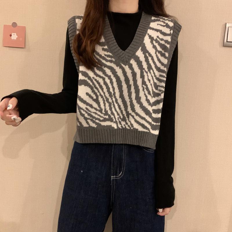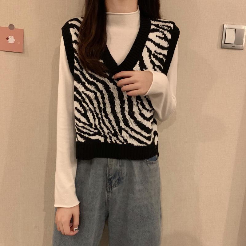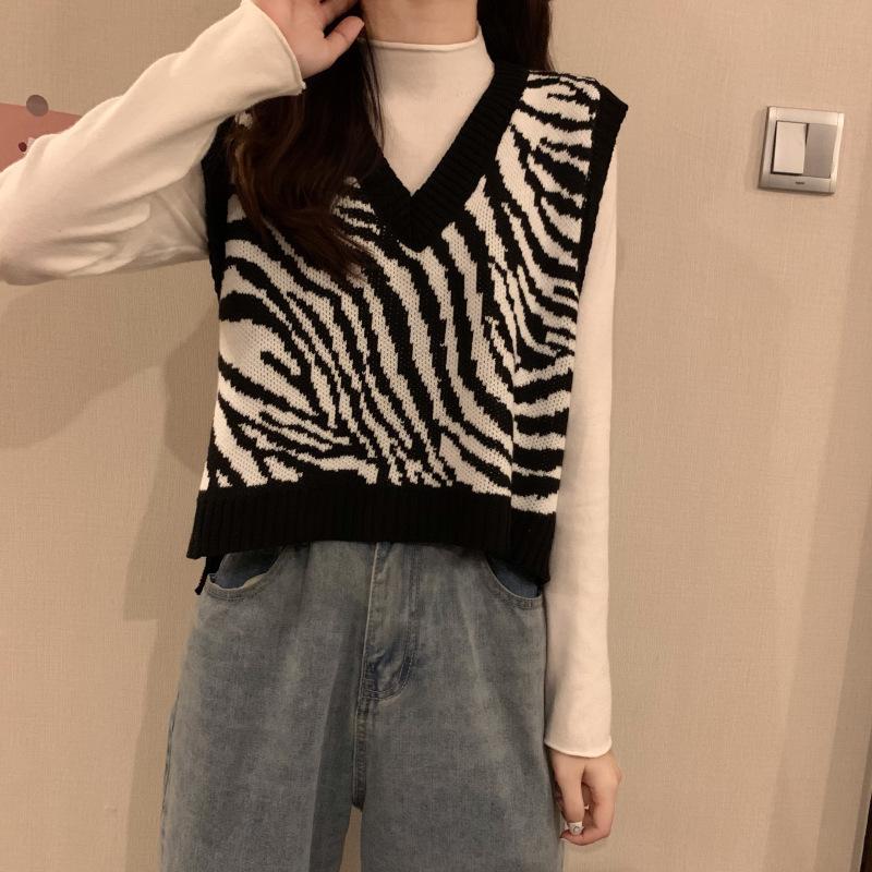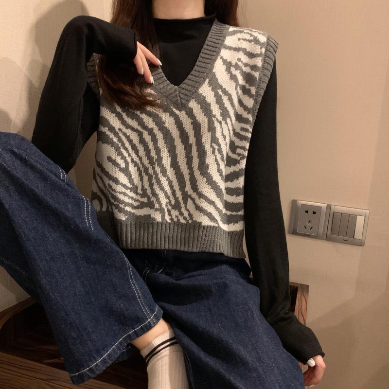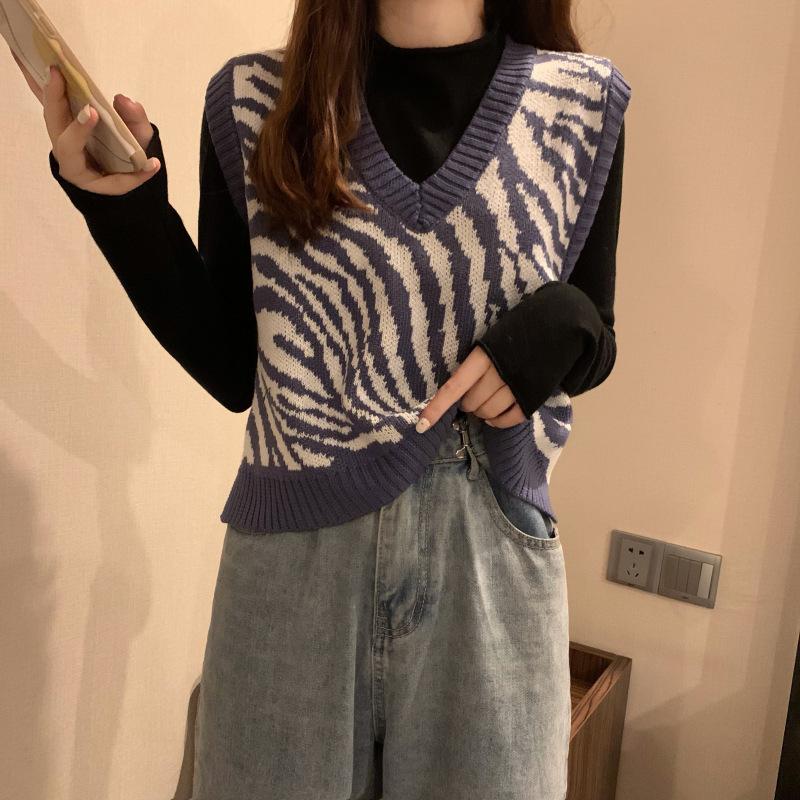 Chaleco Tejido Rayado Estilo Coreano Nuevo 2023 Chaleco Más Fácil de Combinar Cálido Adelgazante Top Base para Ropa Exterior Dropshipping