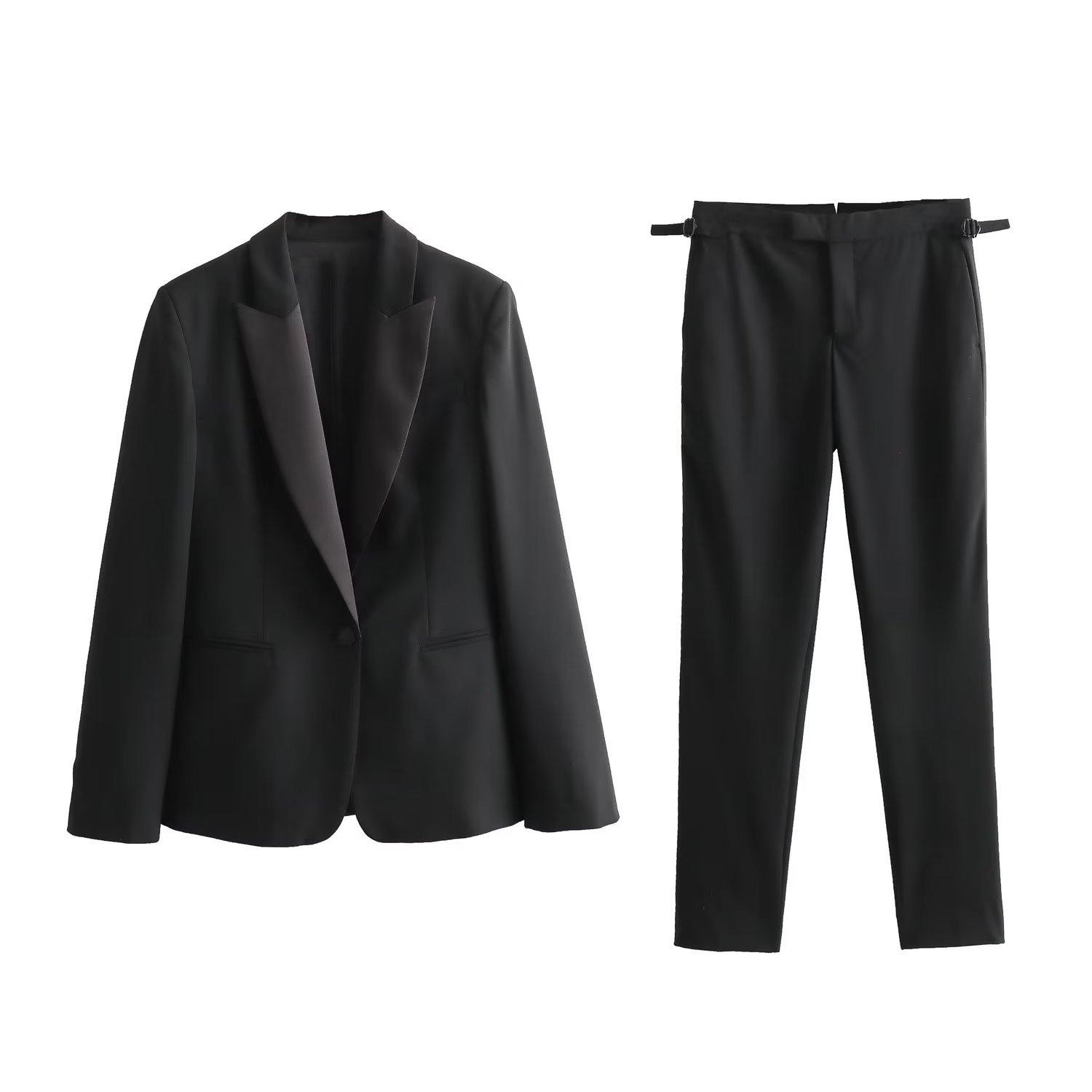 Ropa de mujer transfronteriza europea y americana al por mayor moda traje ajustado chaqueta + cintura cosida traje de pantalón recto