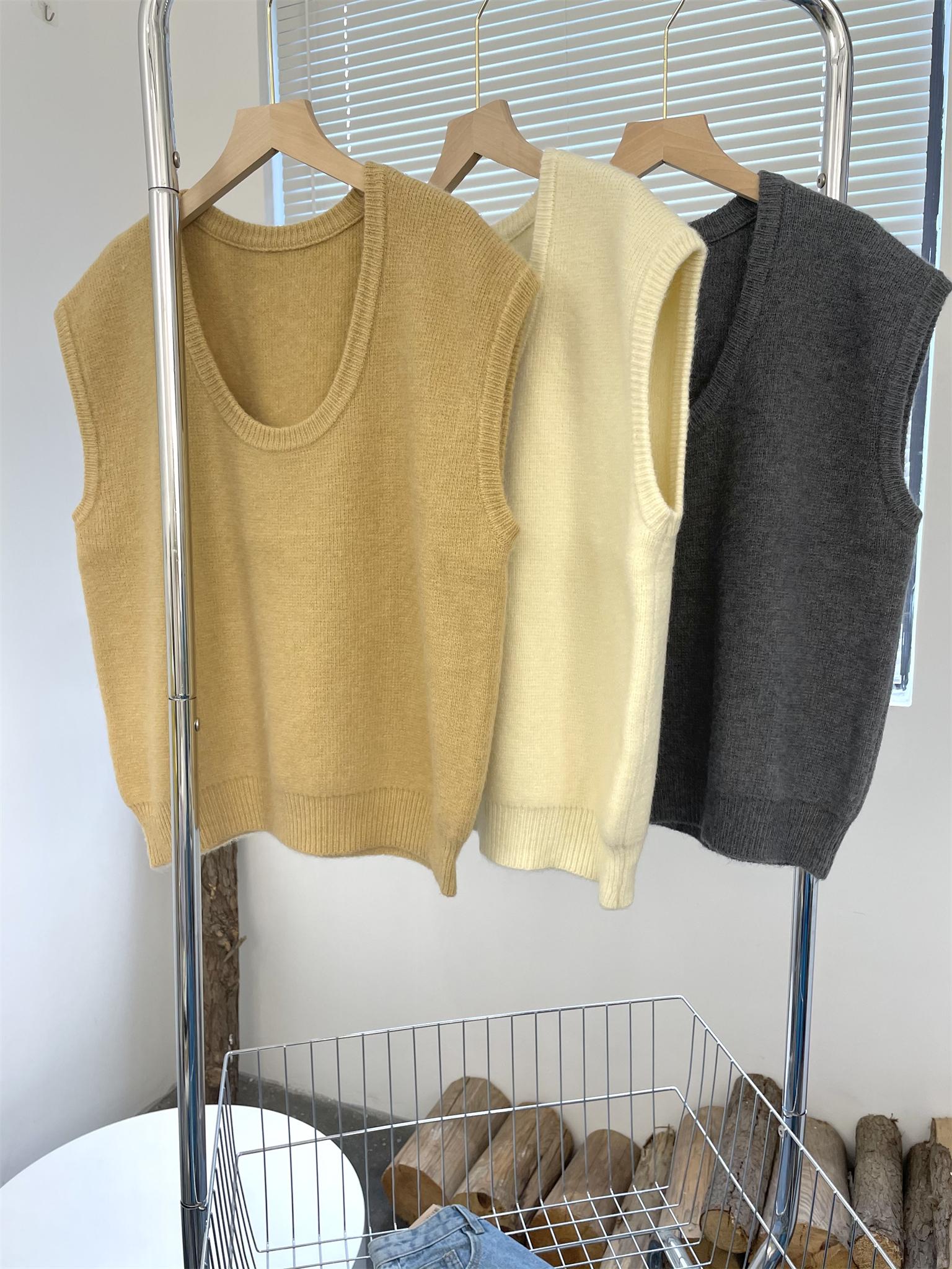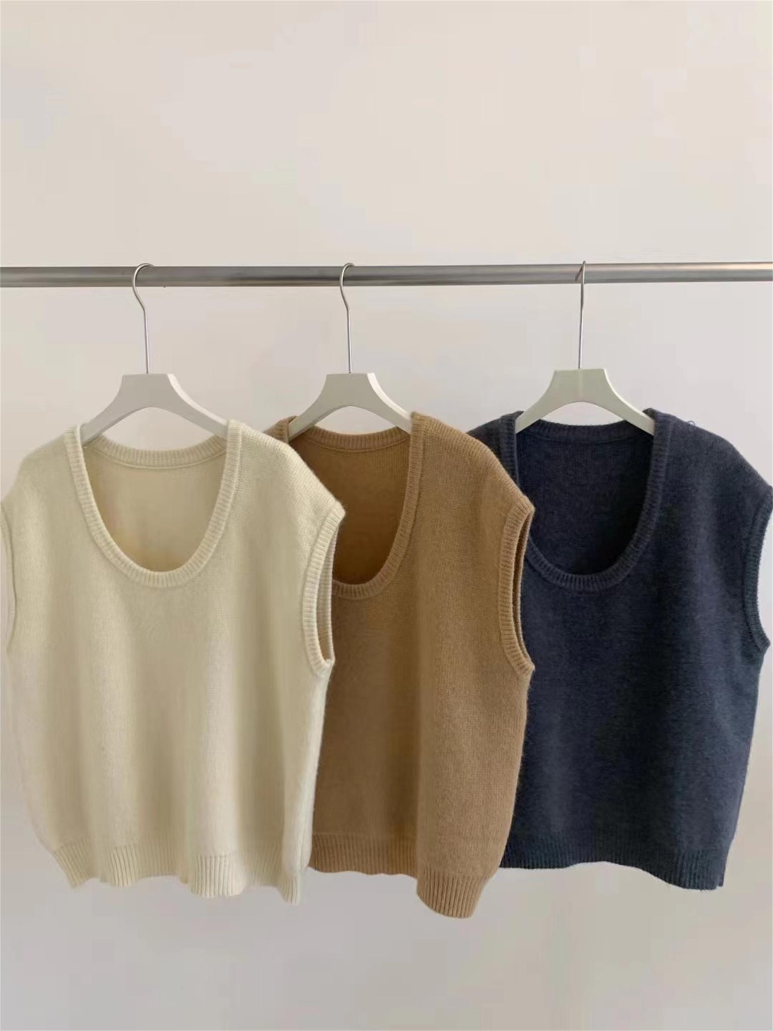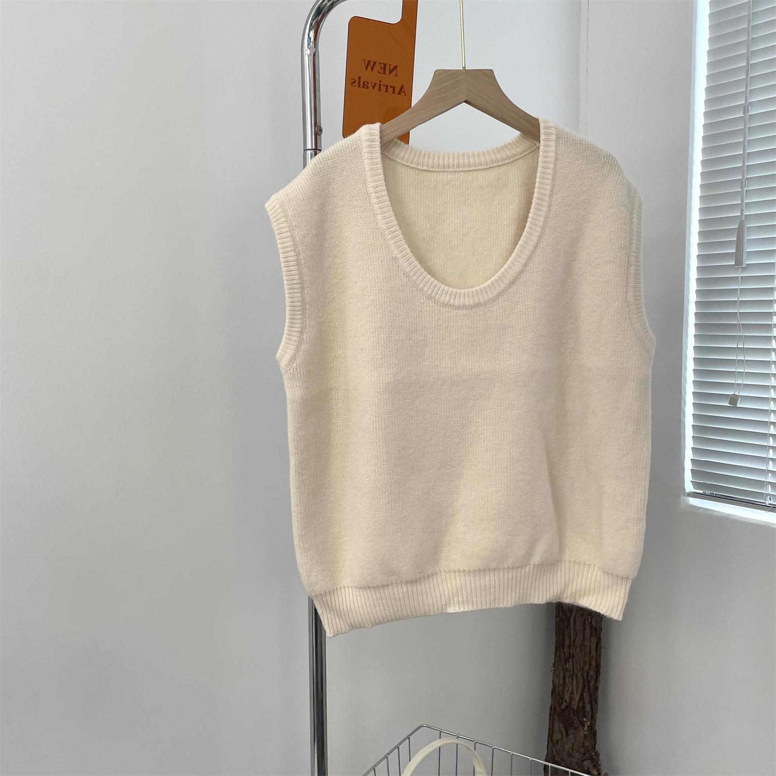 Chaleco de mujer de estilo universitario, estilo diario, primavera y otoño, top de lana de punto sin mangas, holgado y regular.