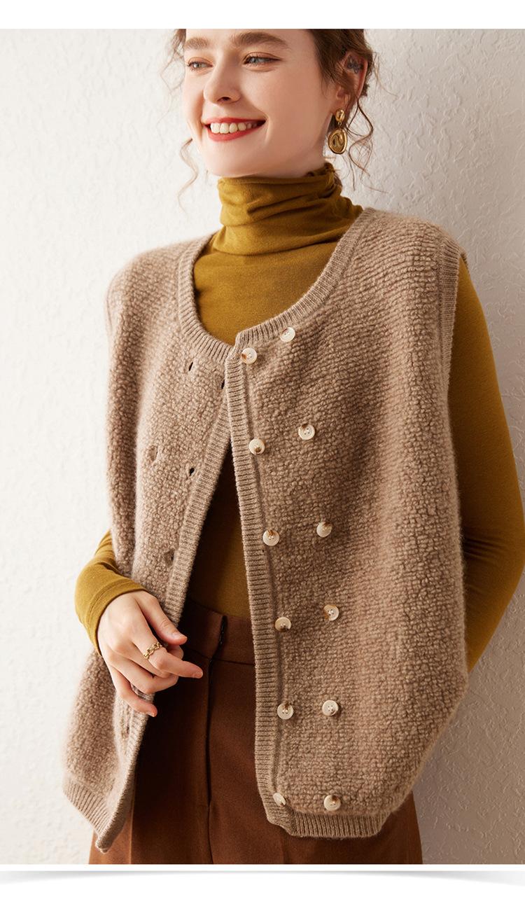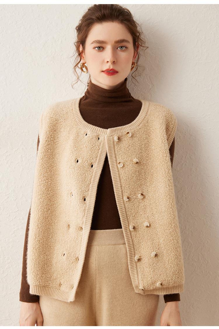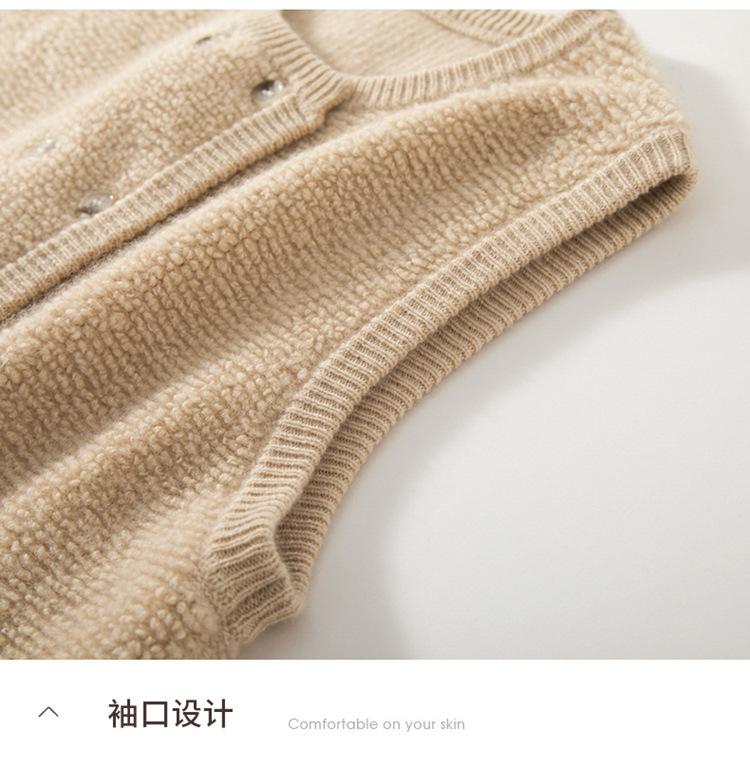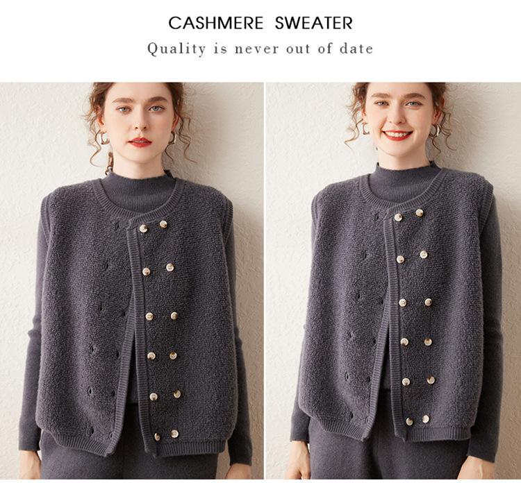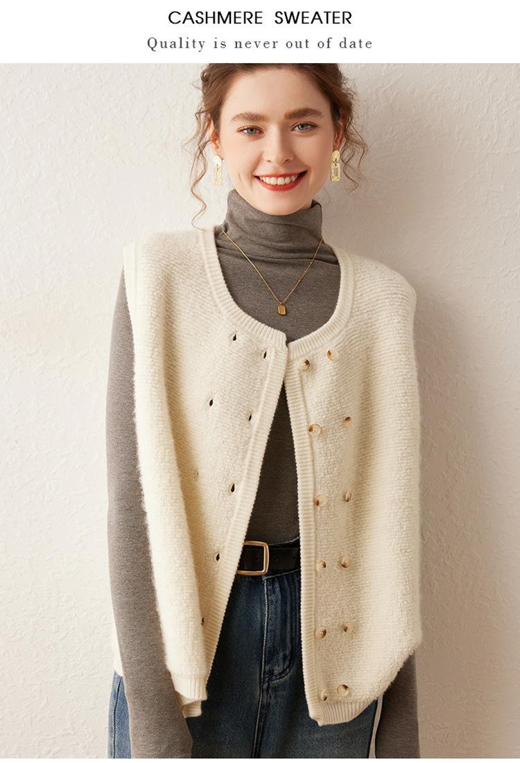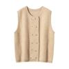 Chaleco de cachemira de cuello redondo para mujer, cárdigan sin mangas con cuello redondo, de lana de cachemira pura y gruesa.