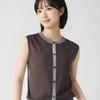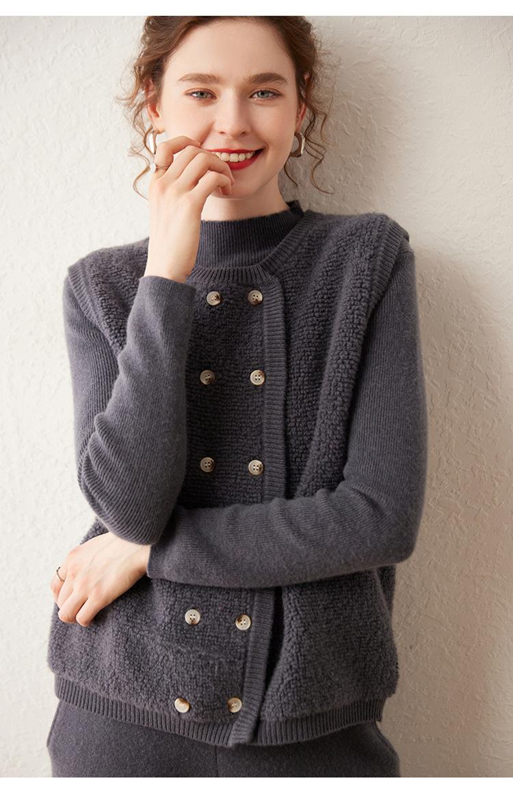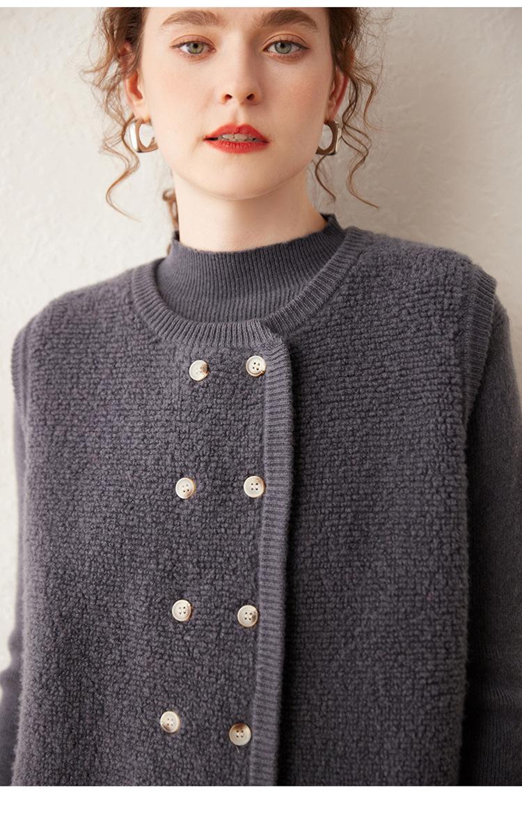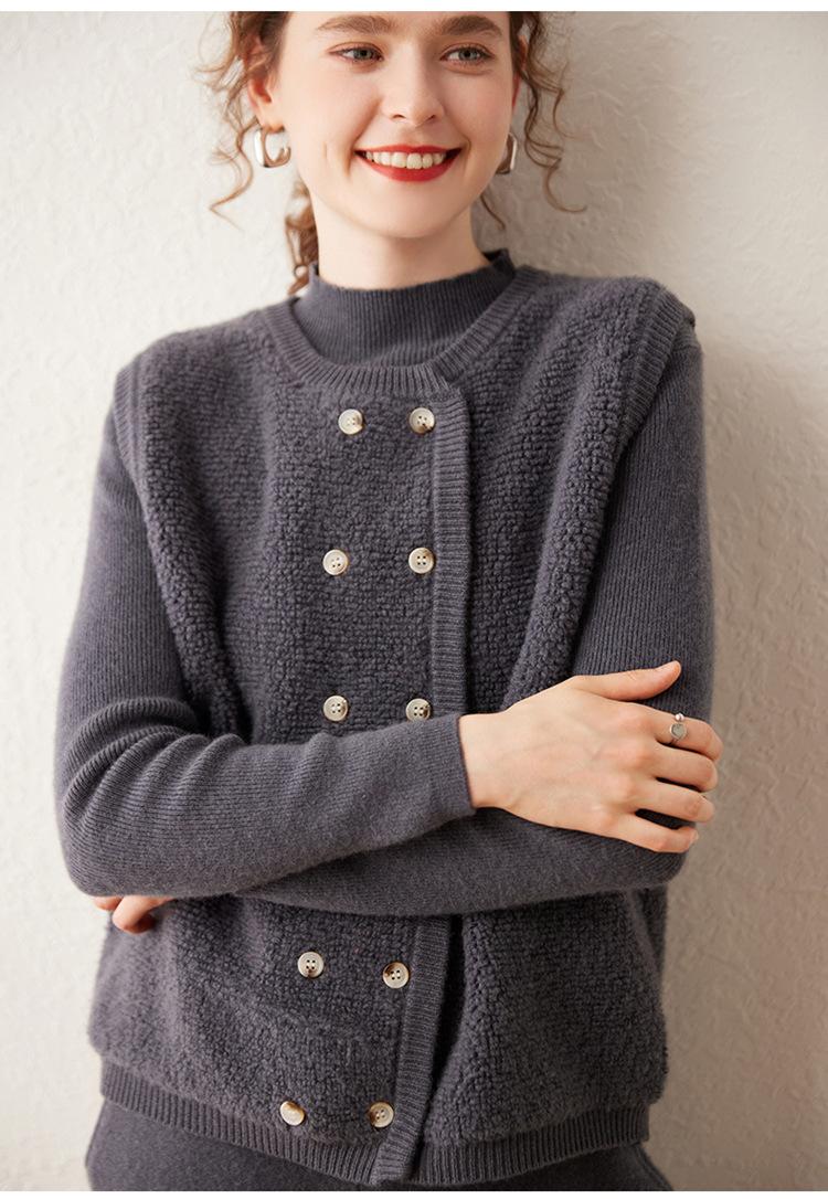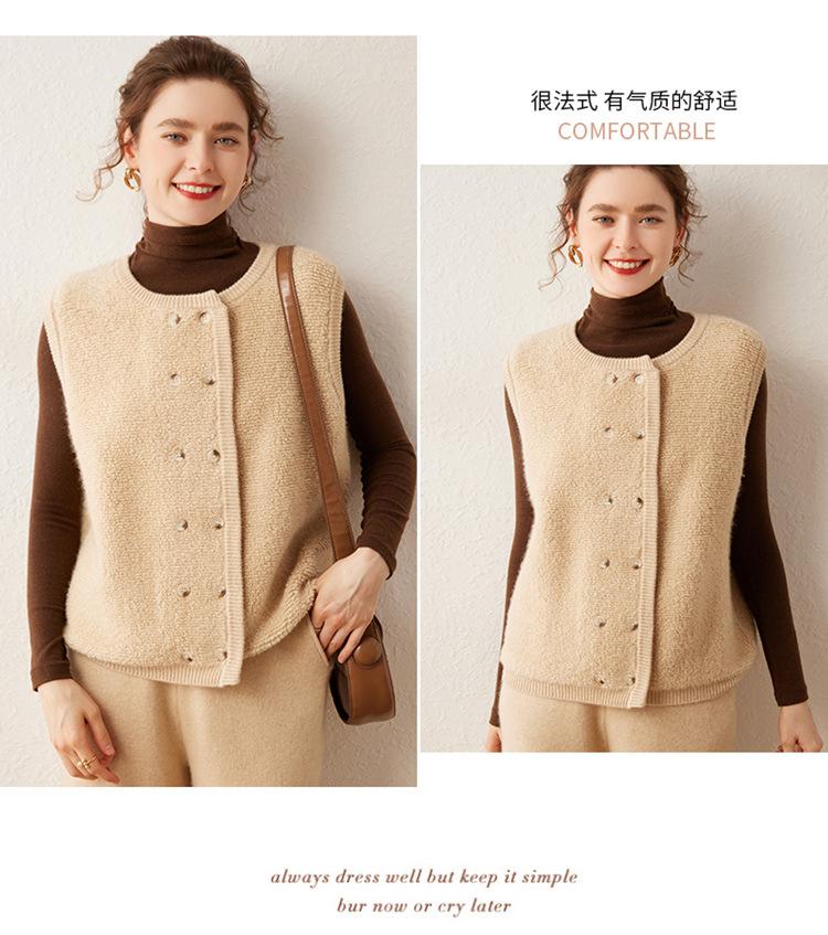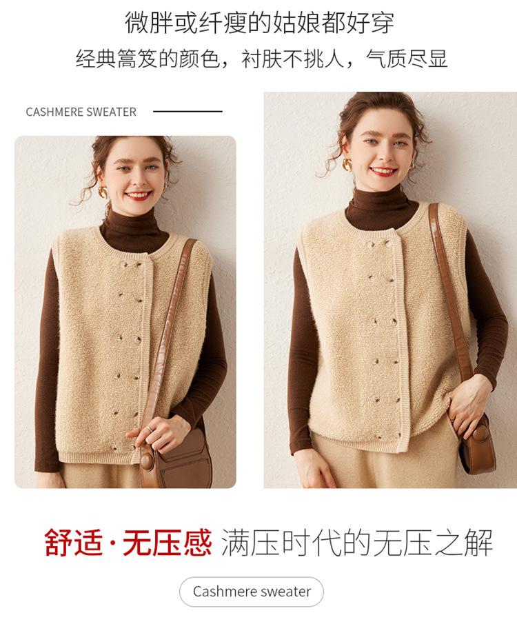 Chaleco de cachemira de cuello redondo para mujer, cárdigan sin mangas con cuello redondo, de lana de cachemira pura y gruesa.