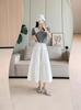 Falda de pastel blanca, cintura alta, aspecto ajustado, falda que combina con todo, cintura suelta, estilo coreano, suave, dulce, pequeña, de longitud media.