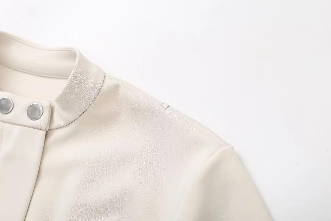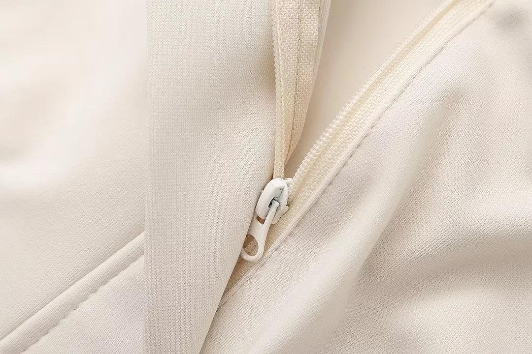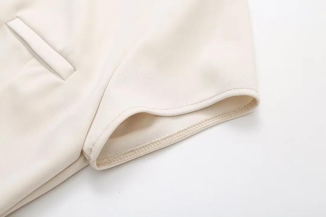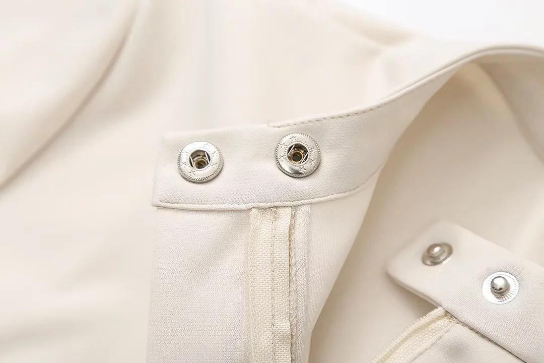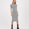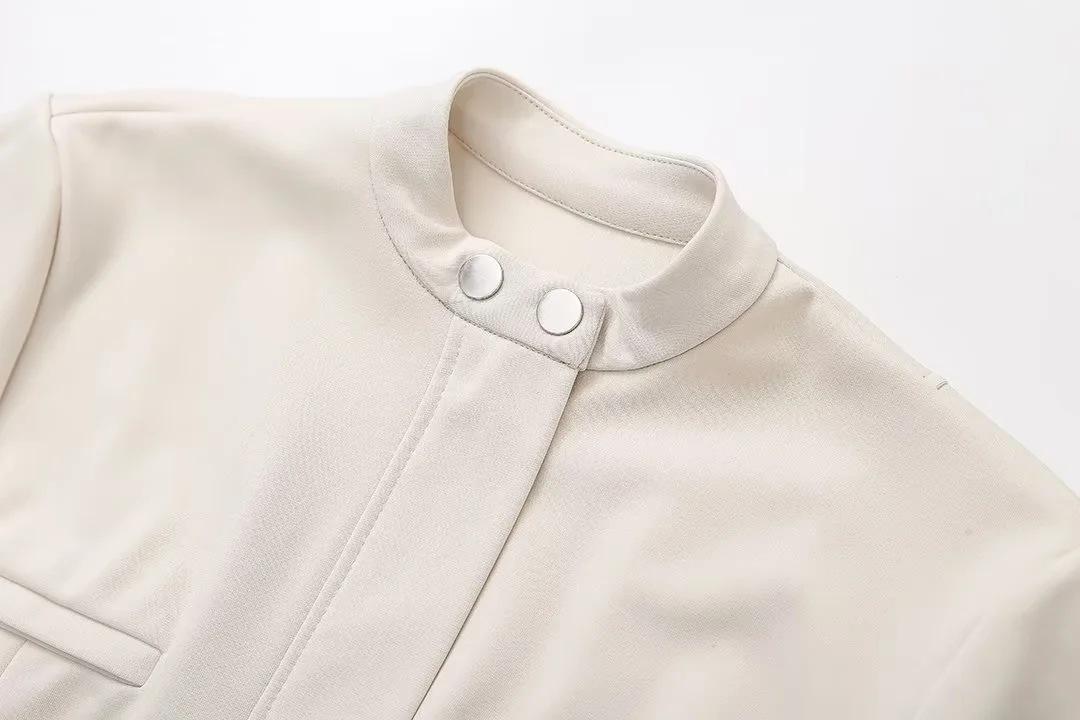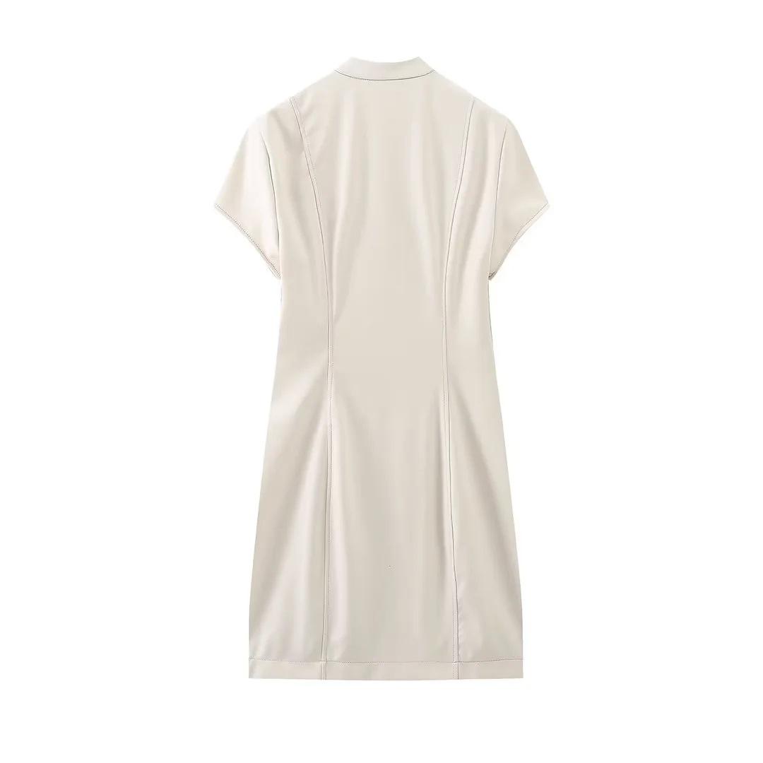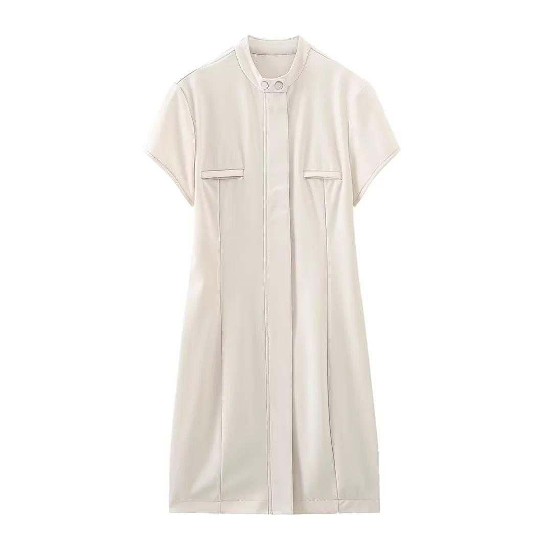 Vestido corto sencillo de moda, ajustado, de cintura alta, versátil, con cuello alto, manga corta y colores puros, estilo europeo y americano, 2024.