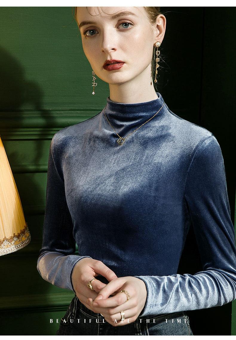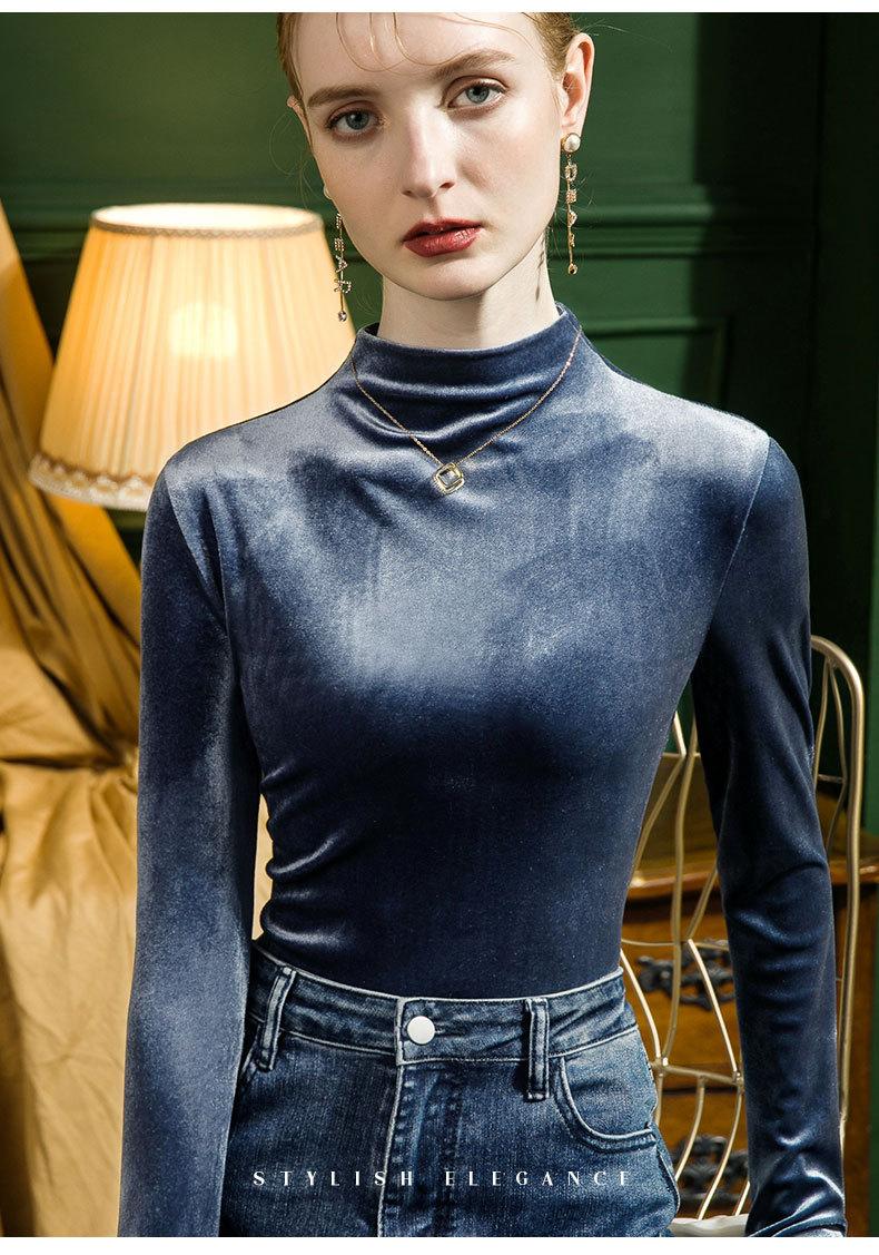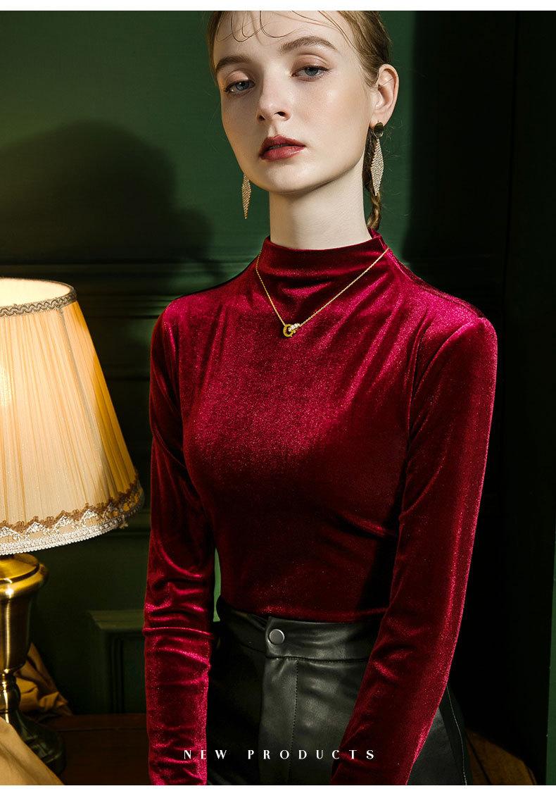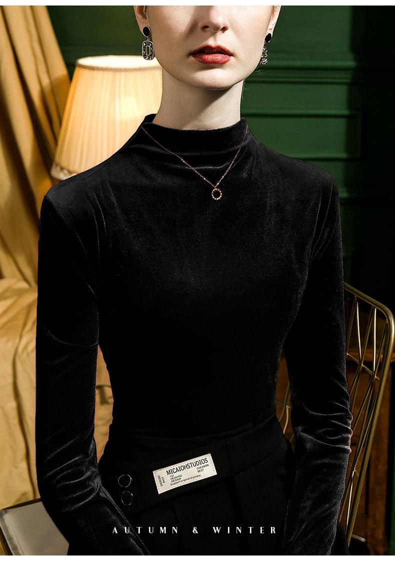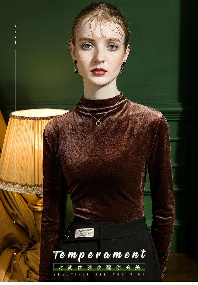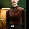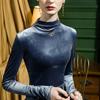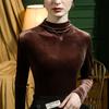 Camisa básica de terciopelo con cuello alto para mujer, corte entallado, otoño e invierno 2022, camiseta de manga larga de terciopelo dorado, top de invierno, estilo coreano