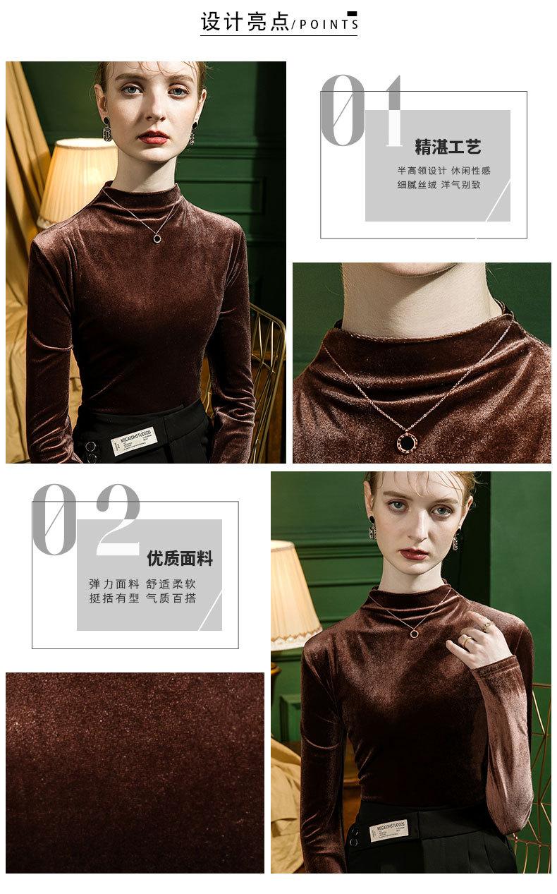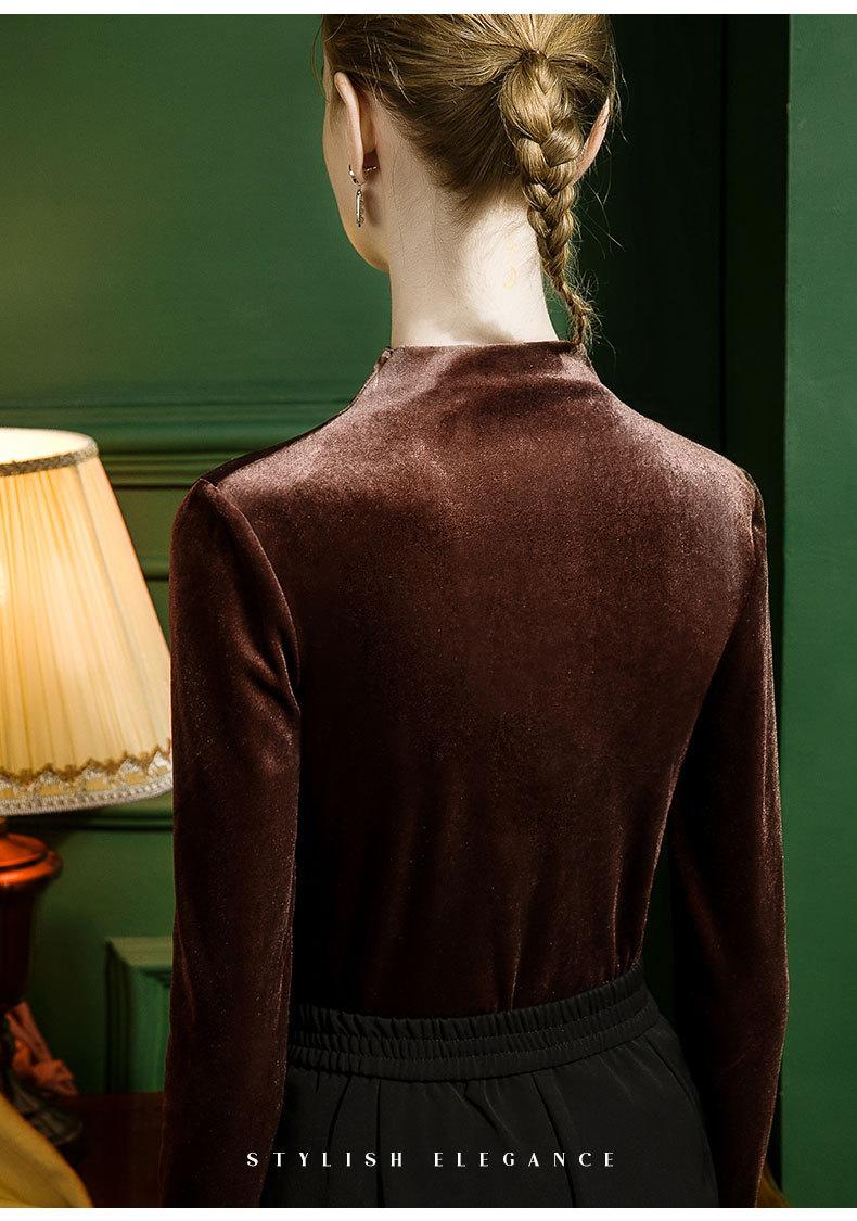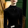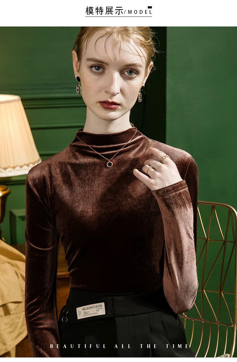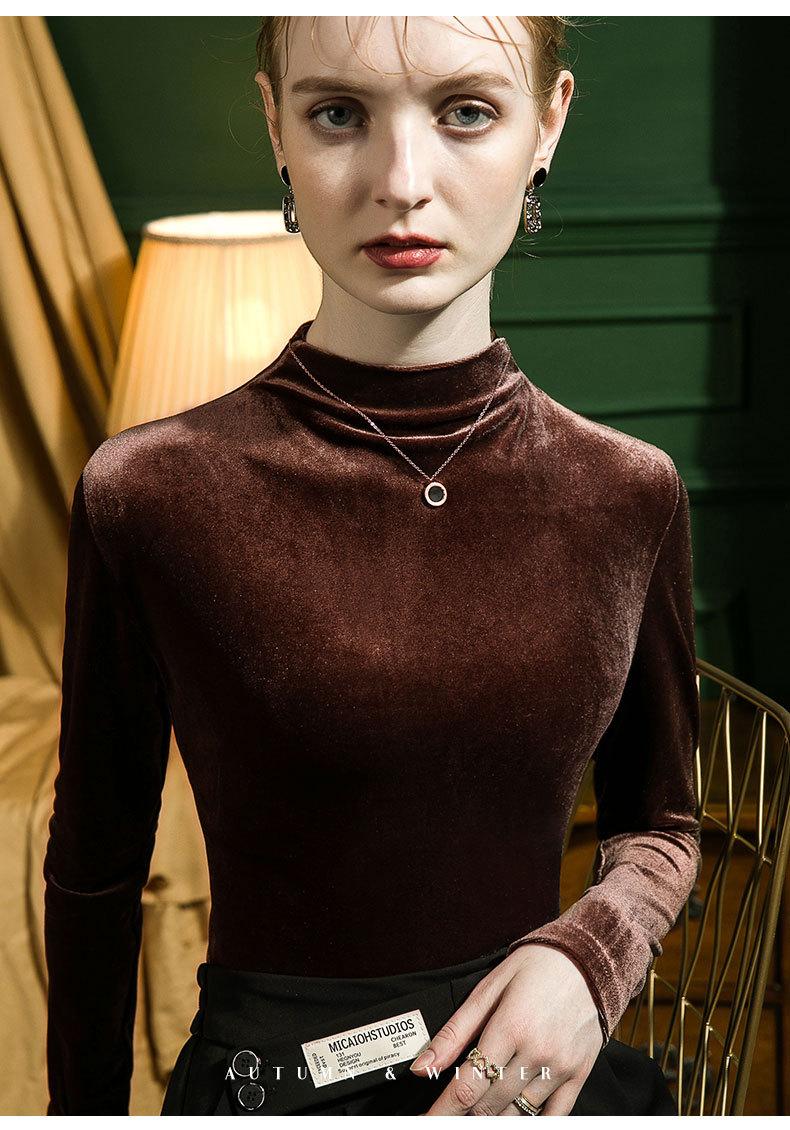 Camisa básica de terciopelo con cuello alto para mujer, corte entallado, otoño e invierno 2022, camiseta de manga larga de terciopelo dorado, top de invierno, estilo coreano