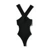 Verano Nuevo Moda Europea y Americana para Mujer Color Sólido Cuello Colgante Cruzado Mono Tejido Ajustado L1783