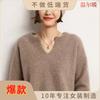 Cachemira Otoño e Invierno Nuevo Suéter Holgado para Mujer Cuello en V Color Sólido Corto Top de Punto Perezoso