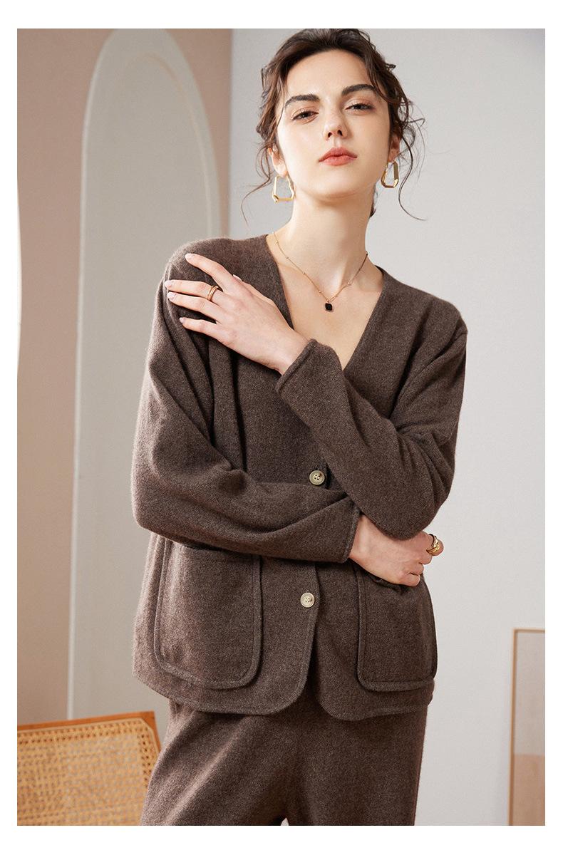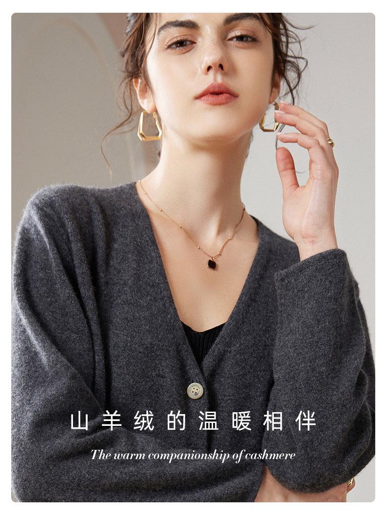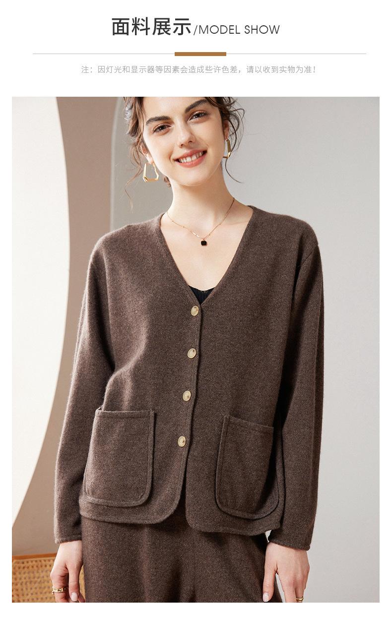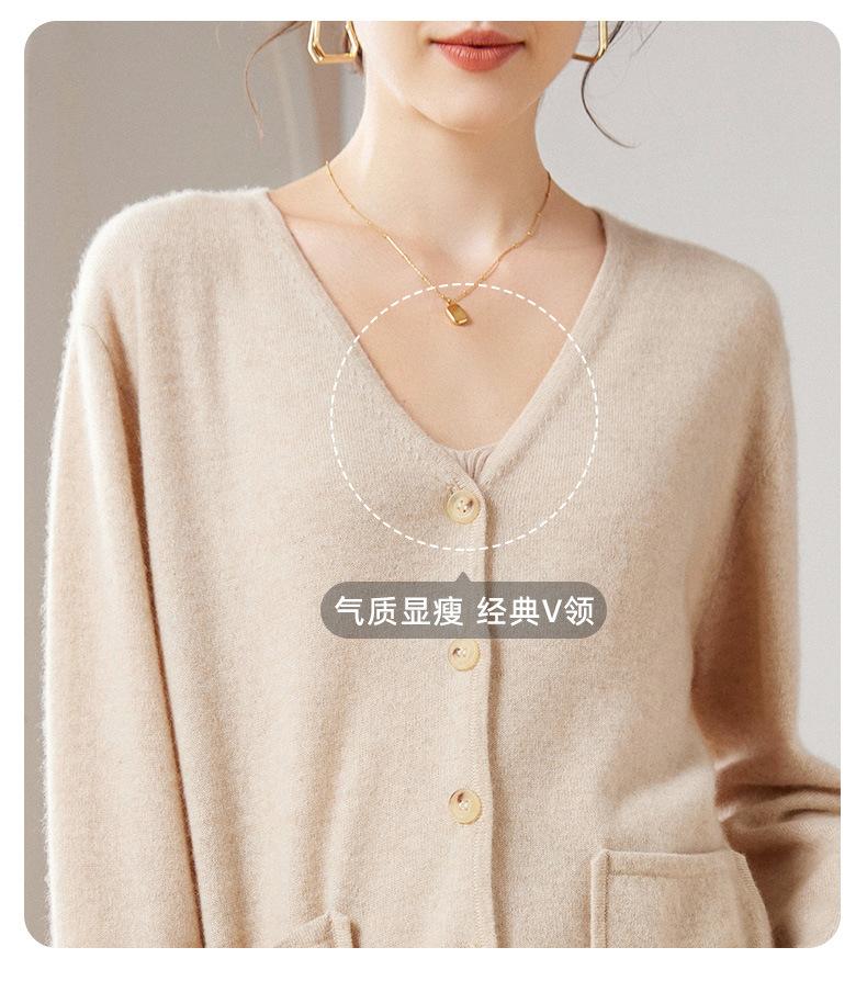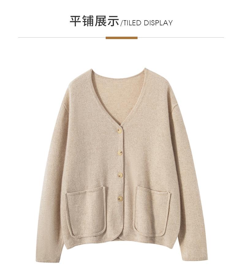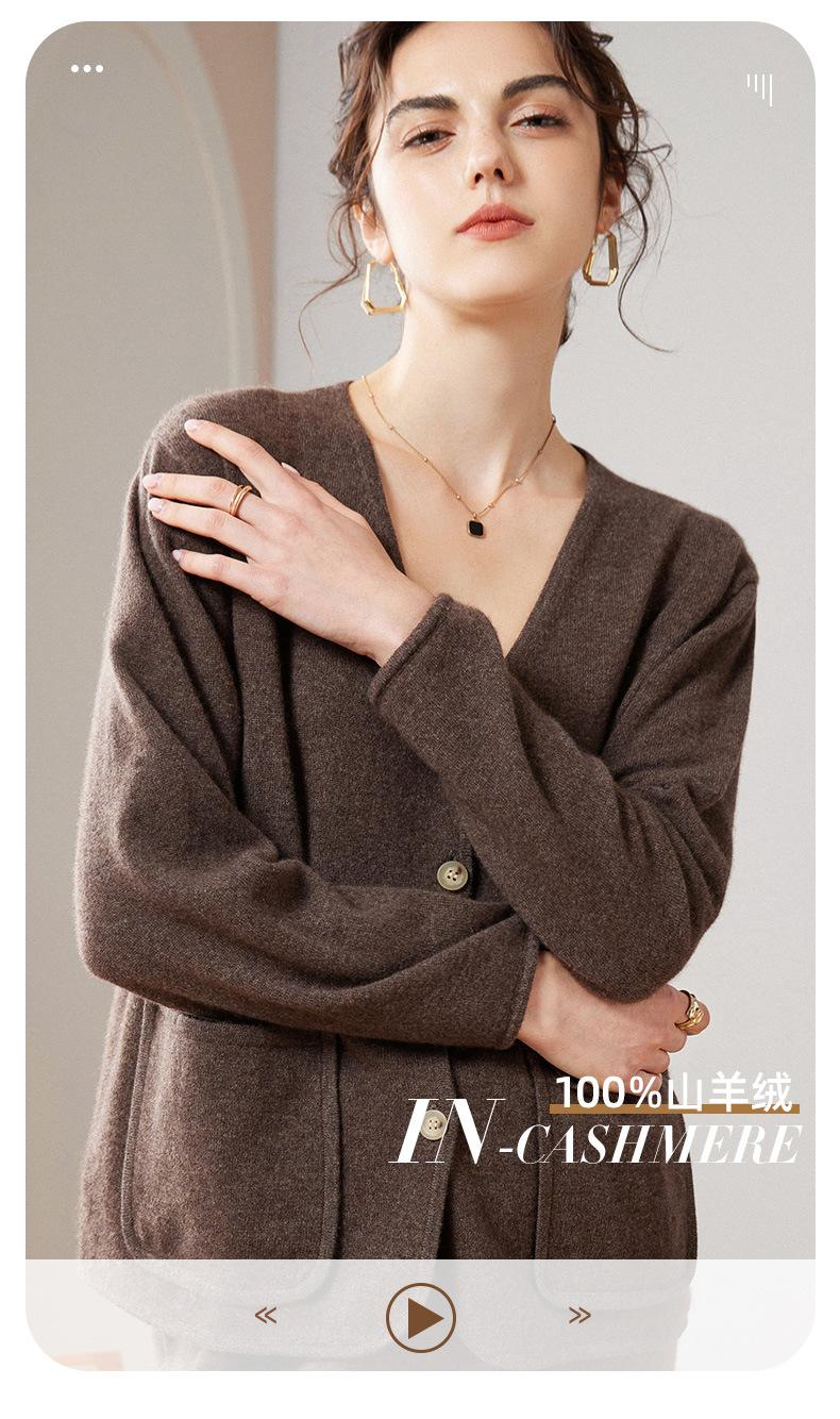 24 Nuevo Cárdigan de Punto de Manga Larga con Cuello en V para Mujer Otoño e Invierno Nuevo 100% Cachemira Tejido Exterior Top Chaqueta Corta