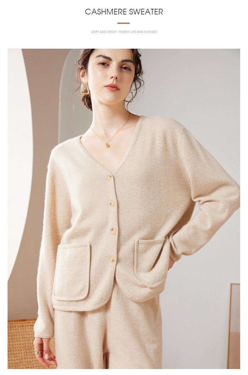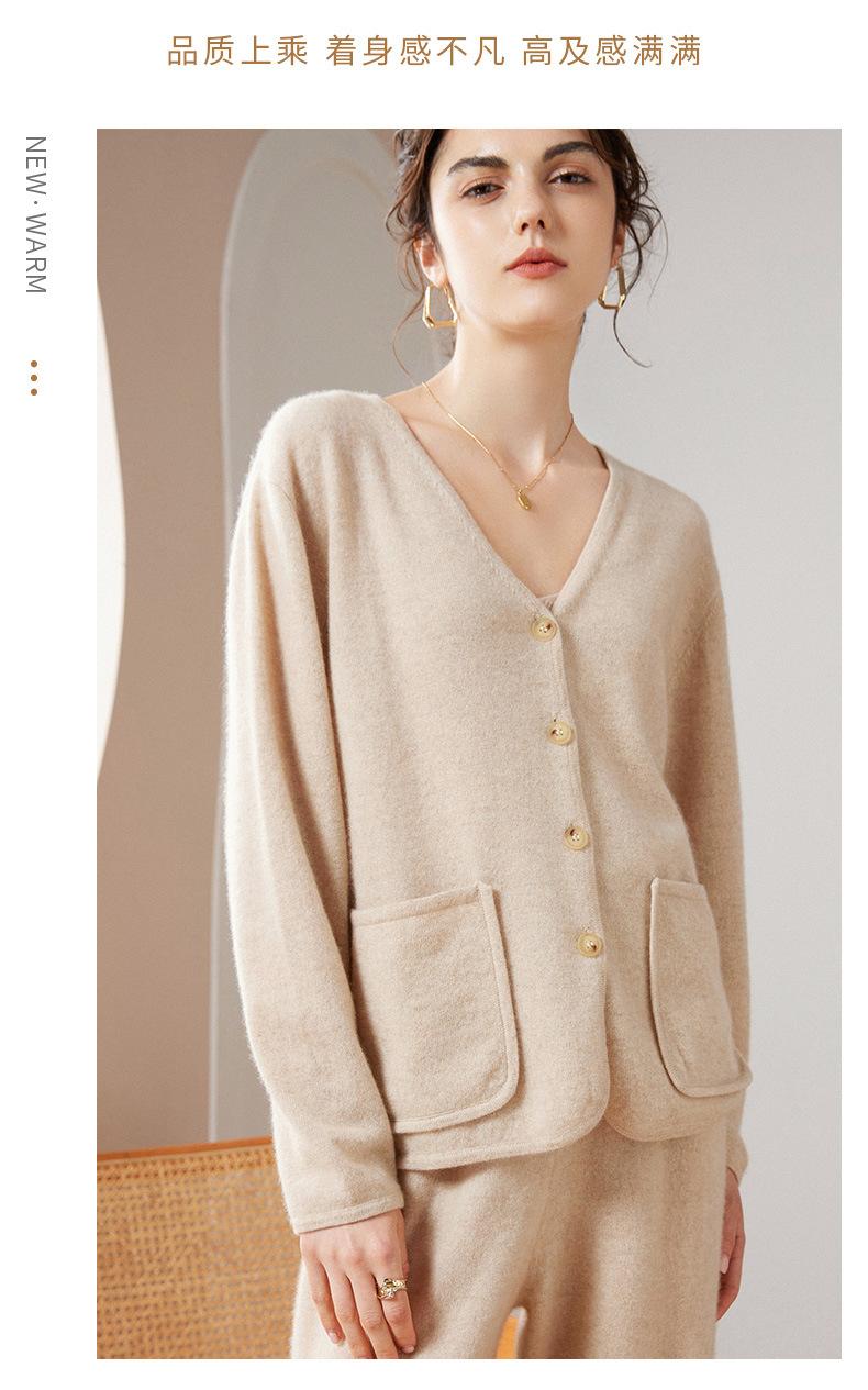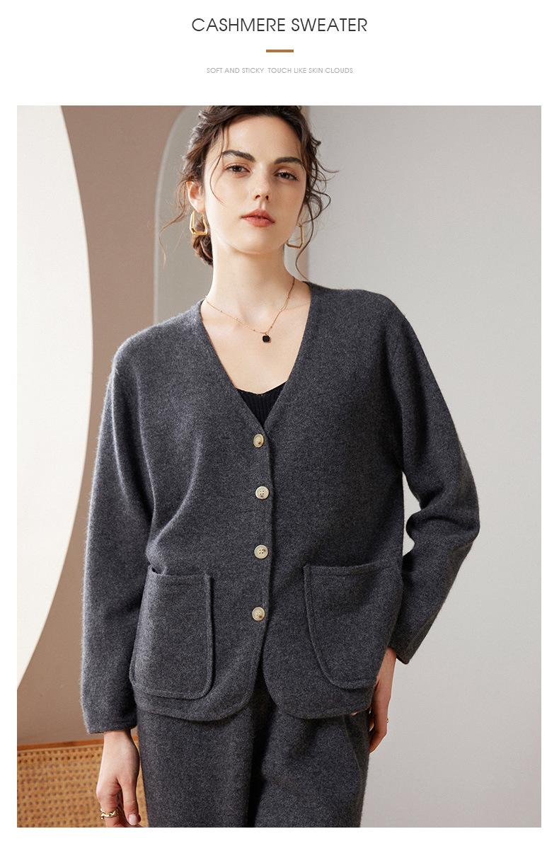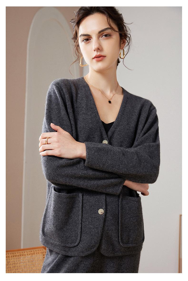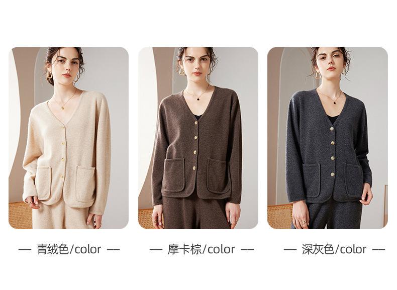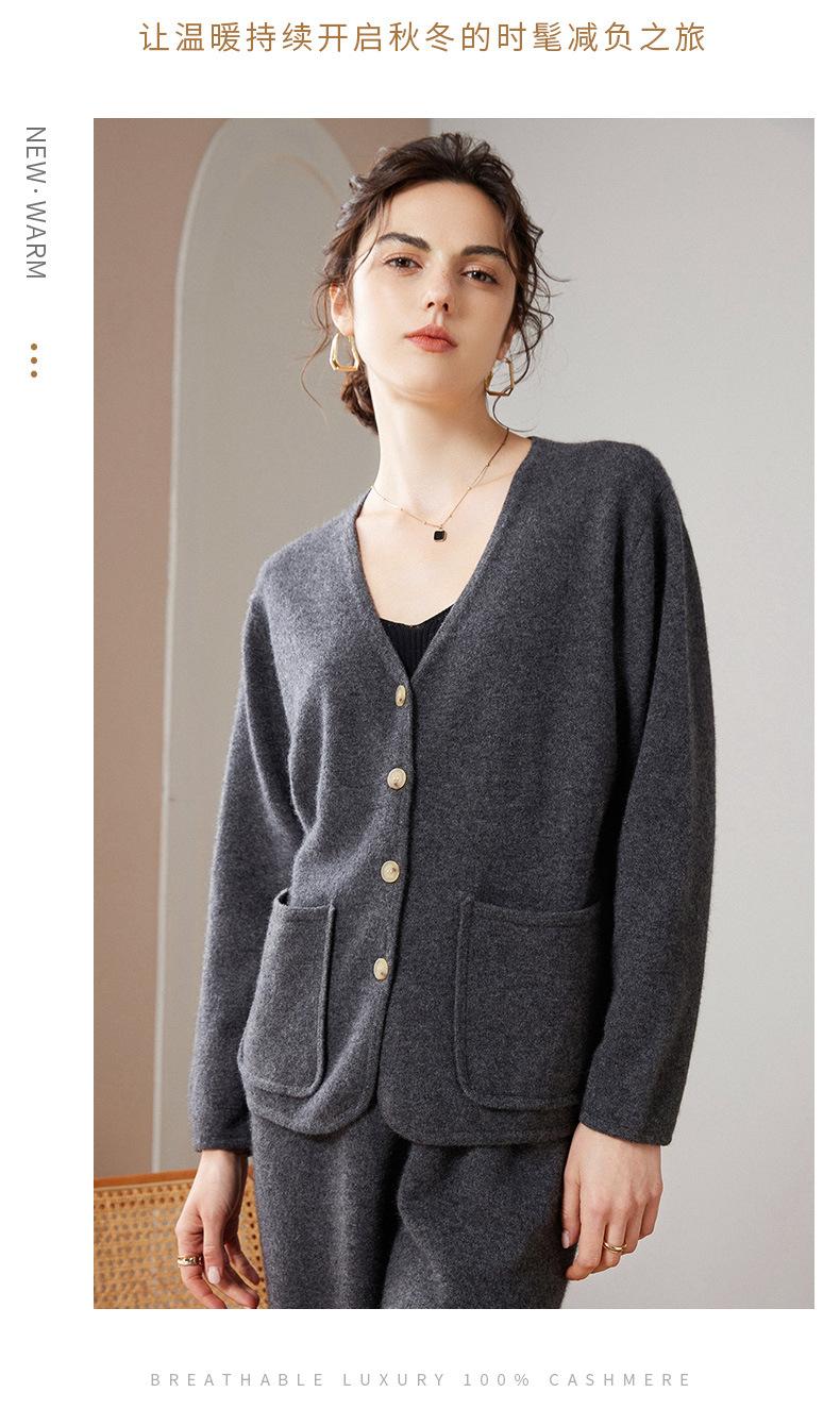 24 Nuevo Cárdigan de Punto de Manga Larga con Cuello en V para Mujer Otoño e Invierno Nuevo 100% Cachemira Tejido Exterior Top Chaqueta Corta