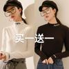 Camiseta Interior de Cuello Alto para Mujer, Top Interior Ajustado, Ropa 2025 Otoño e Invierno, Estilo Coreano, Estudiante, Nueva Camiseta de Terciopelo de Manga Larga