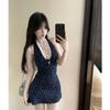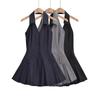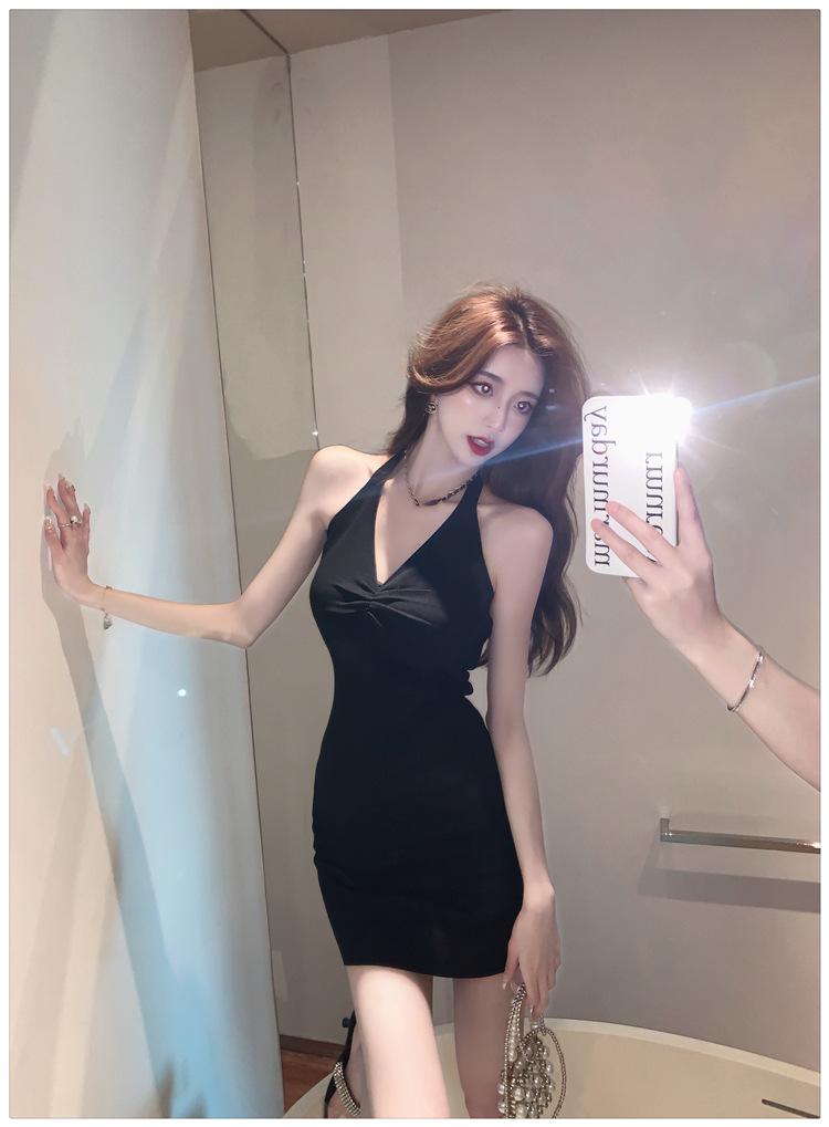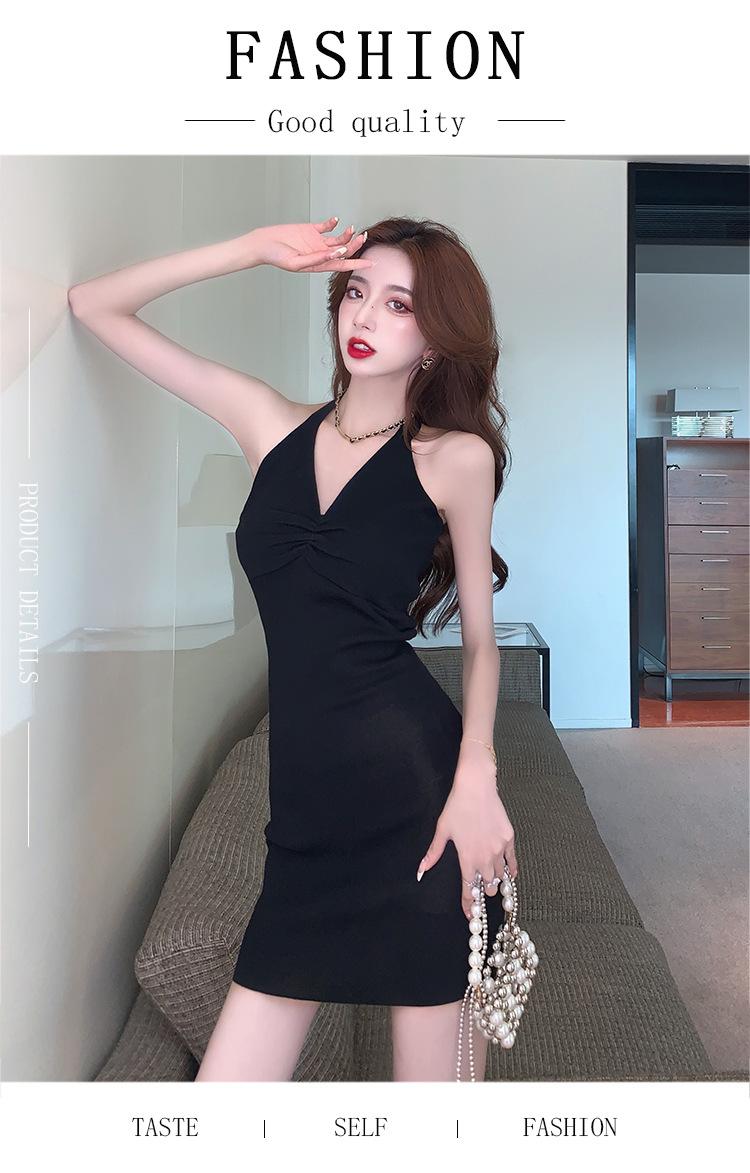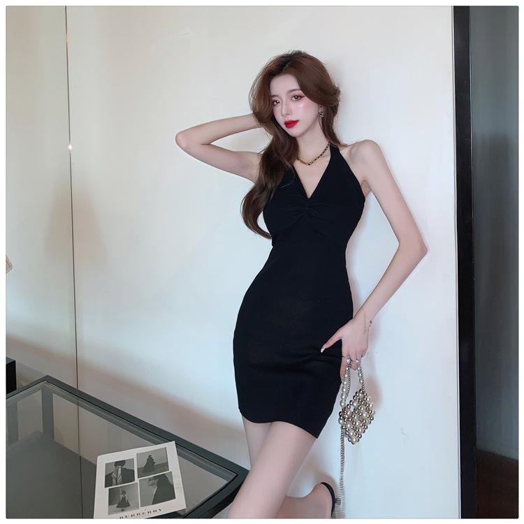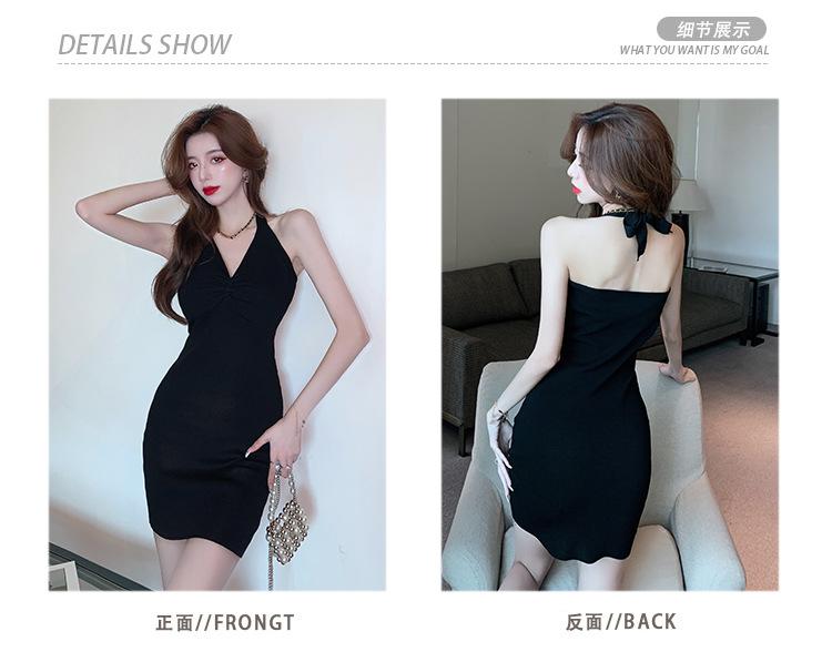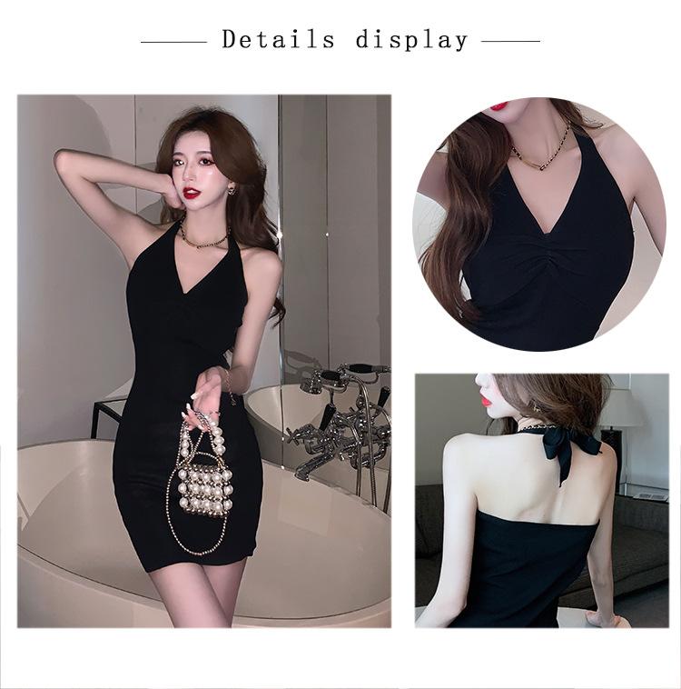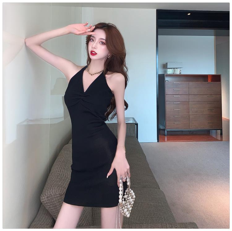 Vestido de verano para mujer con escote en V y cuello halter, nuevo y ajustado, negro, pequeño, sexy, con falda corta sin espalda